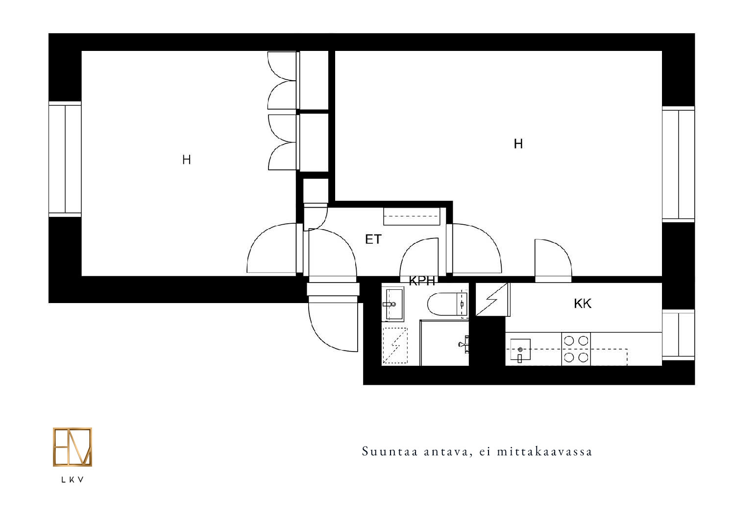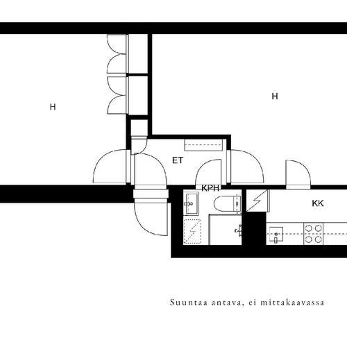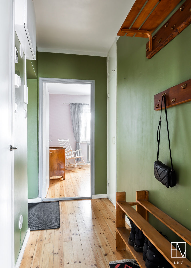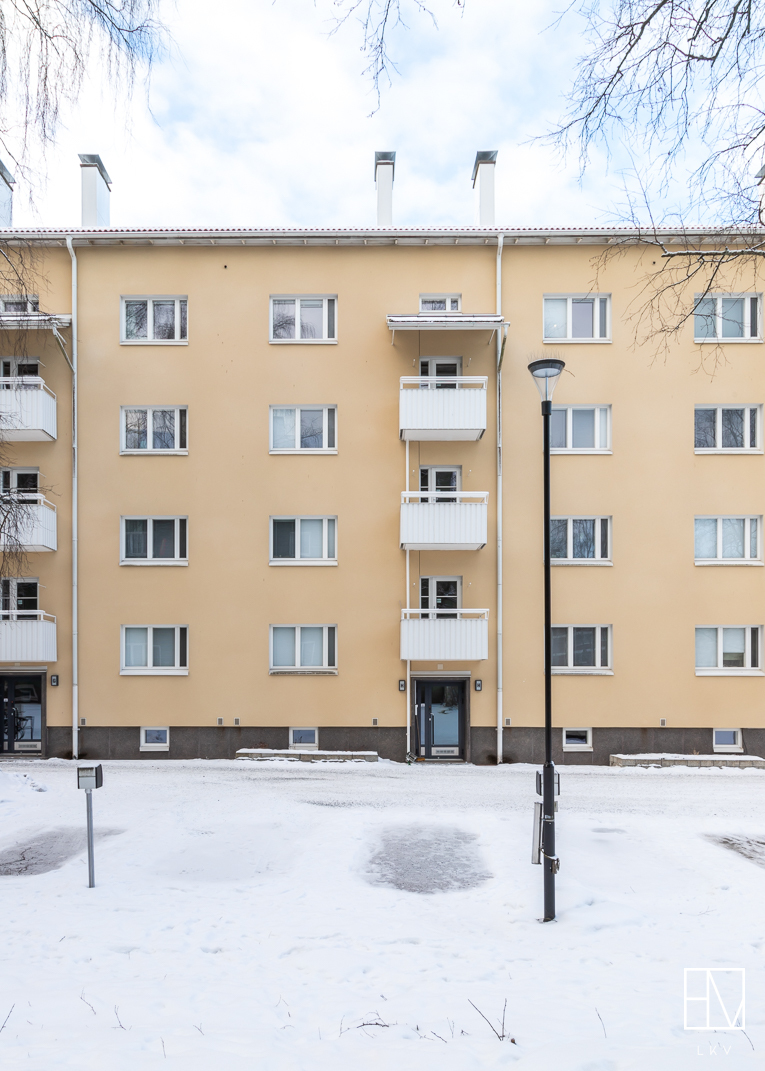 Asunnon kauniit yksityiskohdat, kuten lautalattia henkivät vanhan talon romantiikkaa. Valoisan ja läpitalon kaksion neliöt ovat käytetty tehokkaasti ja se soveltuu mainiosti niin sinkulle kuin pariskunnallekin. Hissittömän talon ylimmän 4. kerroksen huoneistossa on isot huoneet, joten etätyöpisteen saa helposti toteutettua esimerkiksi olohuoneen yhteyteen. Keittiö on erillinen, mutta käytännöllisesti olohuoneen yhteydessä. Tämän lisäksi asunnossa on hiljattain putkiremontin yhteydessä saneerattu kylpyhuone, jossa on paikka pyykinpesukoneelle sekä lattialämmitys. Säilytystilaa on hyvin, sillä huoneistossa on kaappitilaa ja tämän lisäksi asunnolle kuuluu vintti- sekä kellarikomero.