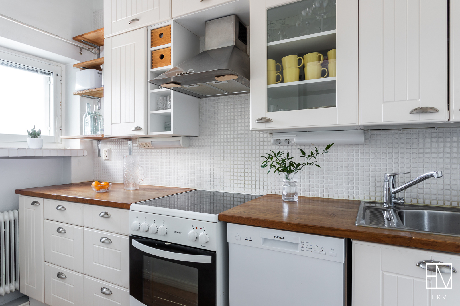 Varusteet: sälekaihtimet/rullaverhot, naulakko, kiinteät valaisimet