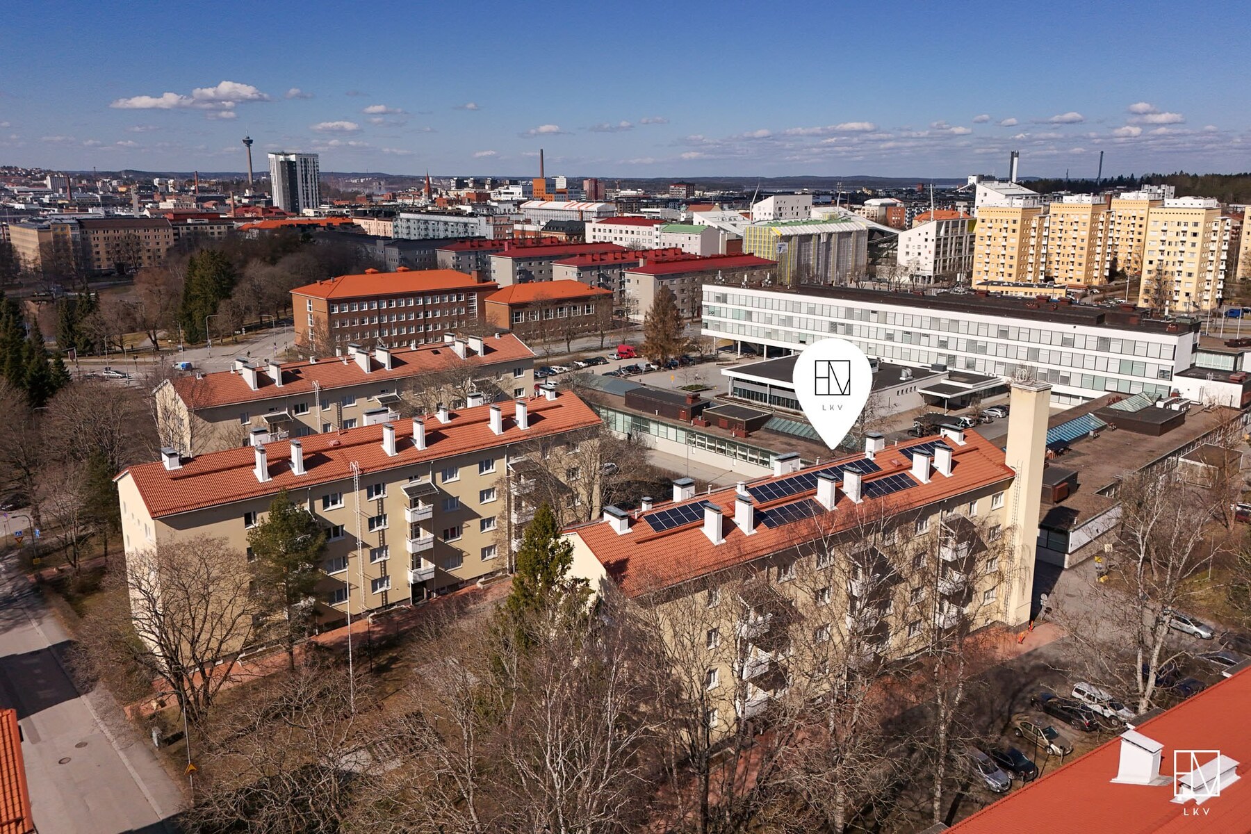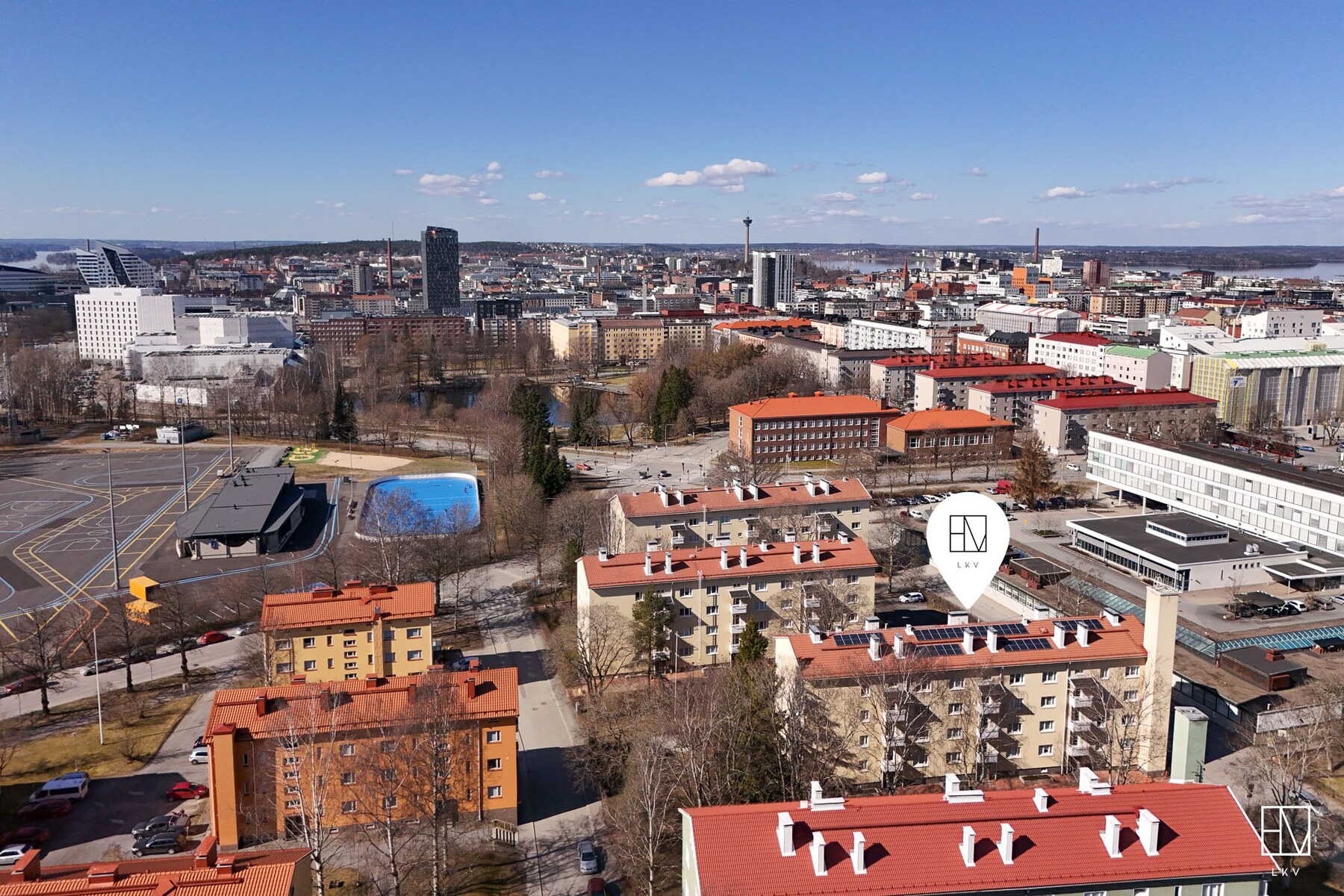 Kaupunkikotia etsivälle kohde on mitä loistavin, sillä yhtiö sijaitsee rauhallisella paikalla Kaskitiellä, mutta silti kaikki kaupungin ja Kalevan palvelut sijaitsevat läheisyydessä. Nokia Arena, rautatieasema ja Tammelan upea stadion palveluineen ovat kaikki noin kilometrin säteellä. Kalevan viihtyisät puistoalueet, alueen useat kuntosalit sekä Kaupin urheilupuisto täyttävät aktiivisen ihmisen tarpeet enemmän kuin loistavasti. Alueelta on todella hyvät julkiset kulkuyhteydet, sillä raitiotie ja TKL:n linjat liikennöivät välittömästä läheisyydestä. Sijoitusasuntoa etsivälle kyseessä helposti vuokrattava kohde, sillä Tampereen yliopistolle matka taittuu noin viidessä minuutissa.
