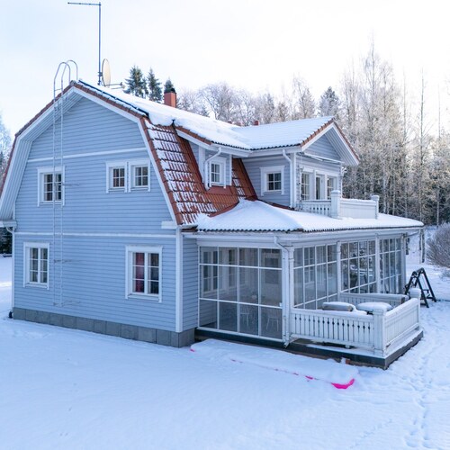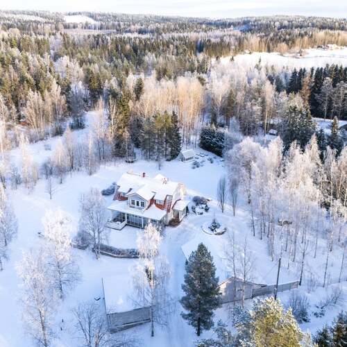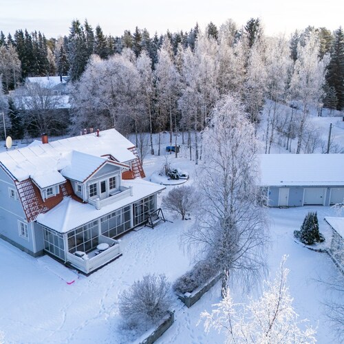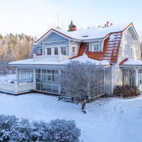 Nyt toiveisiinne on vastattu, sillä Kämmenniemestä on tarjolla omakotitalo, joka täyttää edellä mainitut kriteerit. Vuonna 2004 valmistunut talo sijaitsee omalla 8730 m² tontilla. Tilaa on isommankin perheen tarpeisiin, sillä asuinneliöitä on lähes kaksisataa.