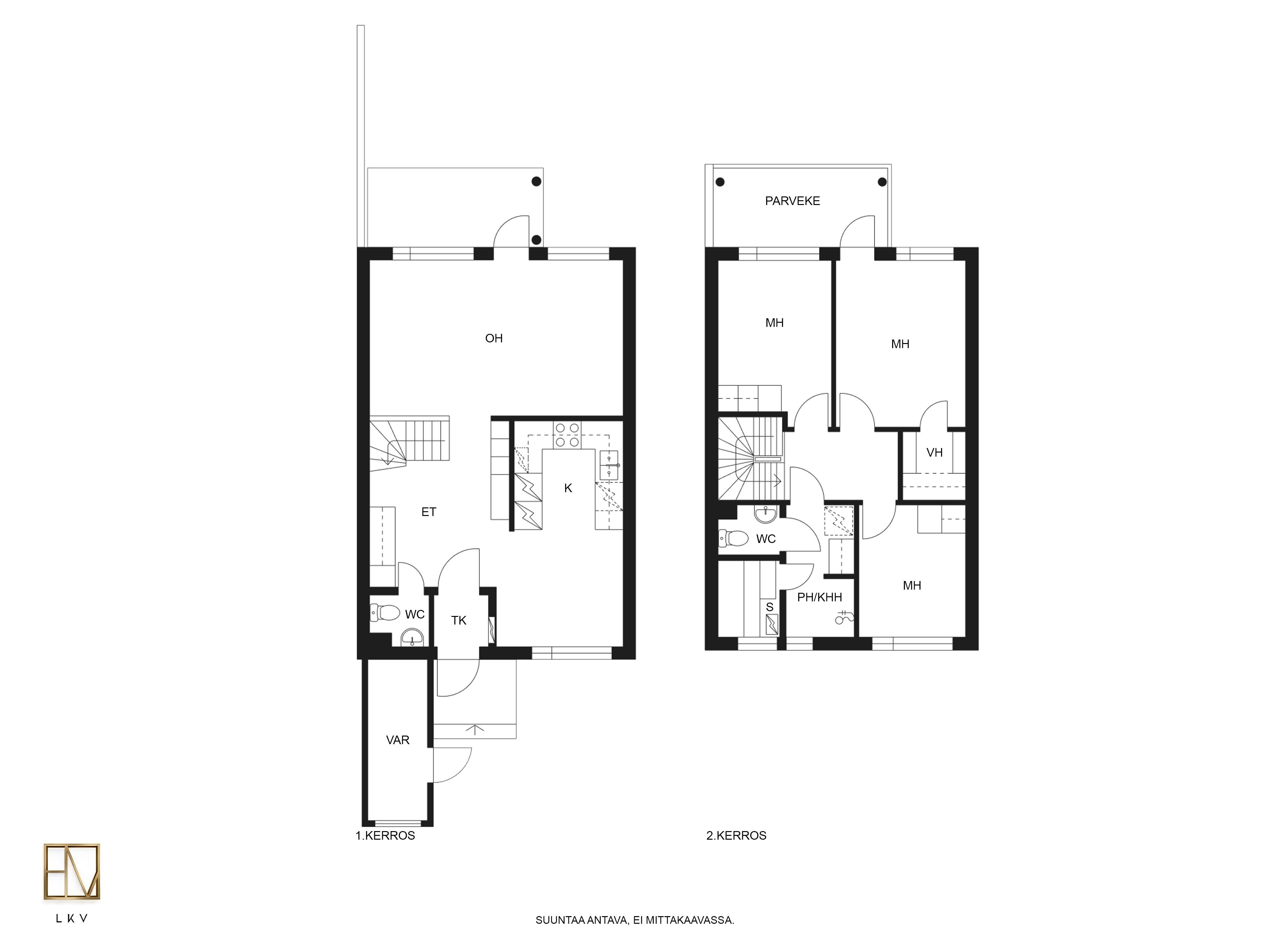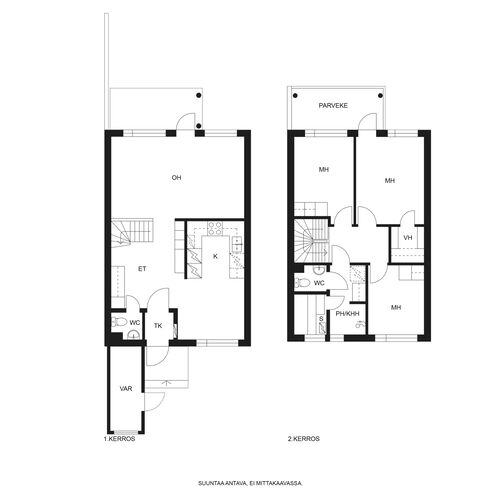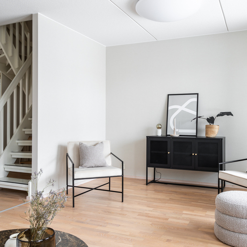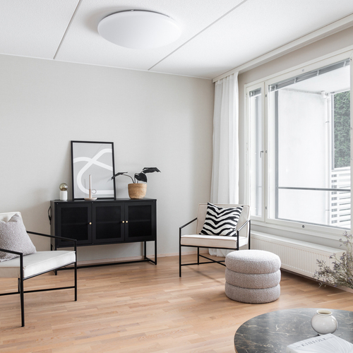 Kahteen tasoon toteutettu pohjaratkaisu on fiksu ja luo puitteet niin lapsiperheelle kuin pariskunnalle. Eteisaulasta avautuu näkymät sekä olohuoneeseen että keittiöön. Keittiö on sisäpihan puolella ja ikkunasta on näkymät yhtiön sisäpihalle. Tilavaan keittiöön mahtuu hyvin isompikin ruokapöytä ja säilytystilaa on mukavasti. Olohuoneesta on kulku omalle terassille. Aidattu terassipiha on helppohoitoinen ja turvallinen pienten lasten tai lemmikkien kanssa. Ilmansuunta on ihanteellisesti länteen, joten saat nauttia auringosta koko päivän!