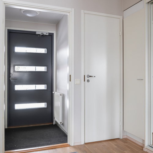 Tuulikaappi: Seinät maalattu, lattia muovimatto.
