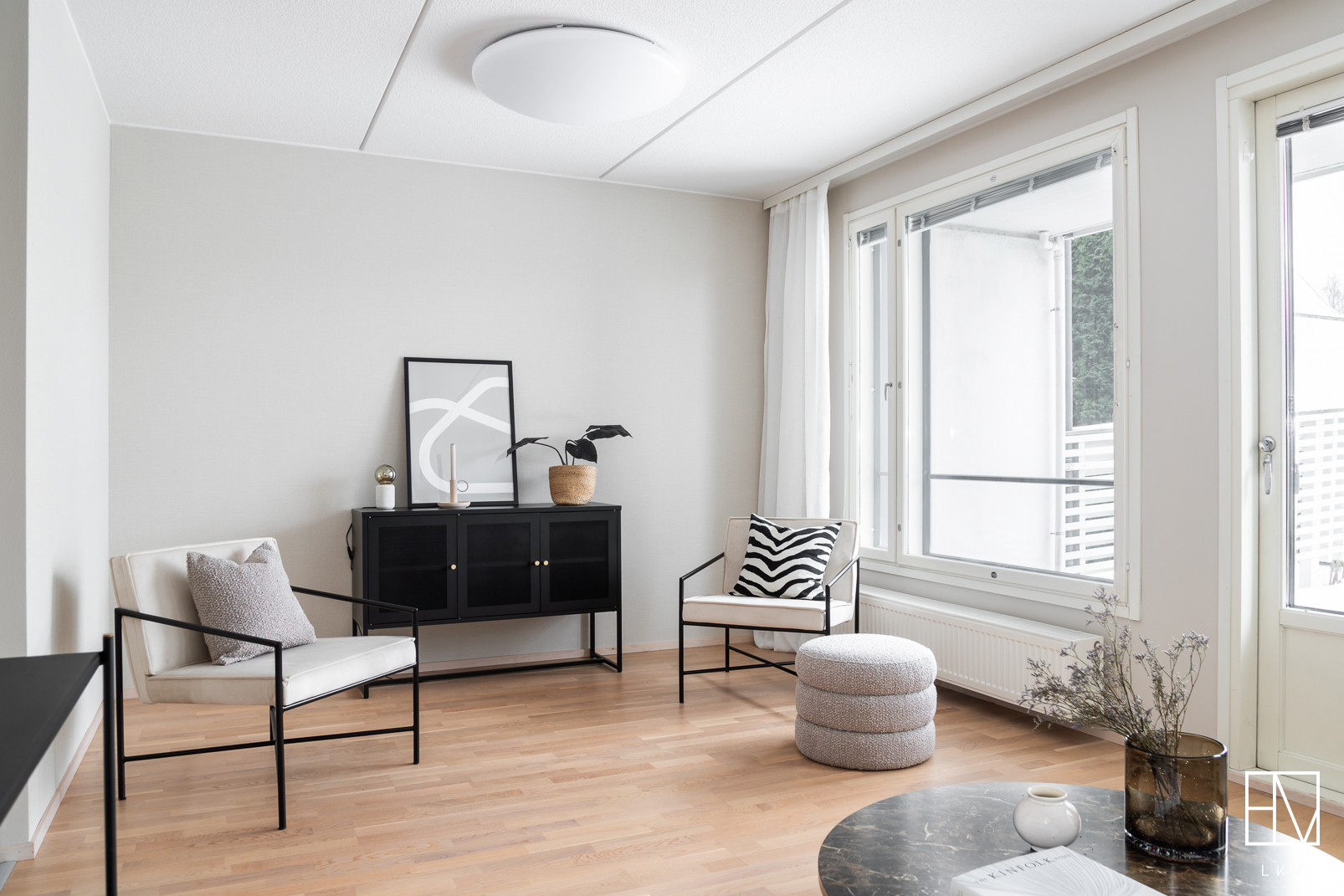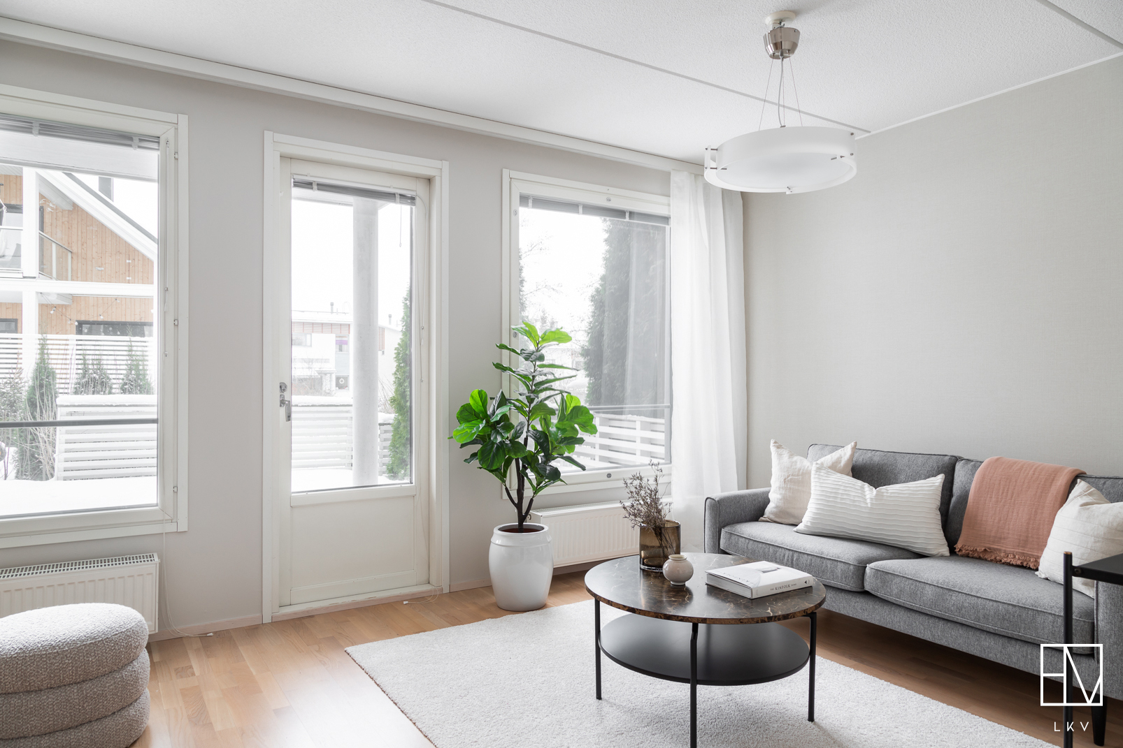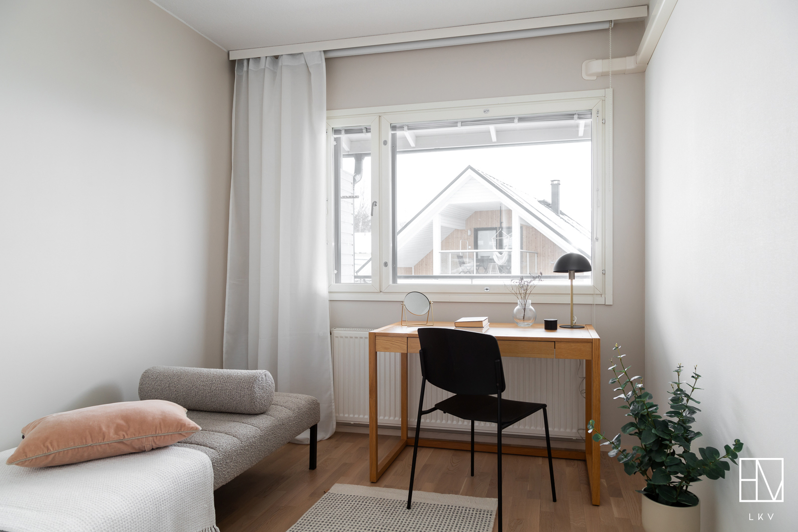 Varusteet: kaapistot, sälekaihtimet/rullaverhot, kiinteät valaisimet, ilmalämpöpumppu