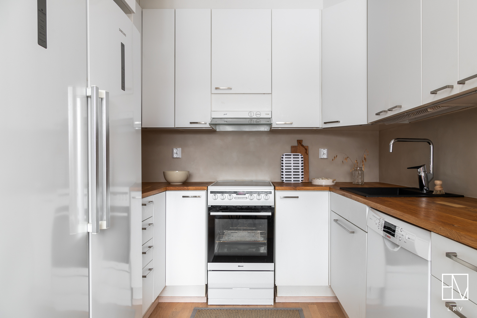 - Keittiön taustaseinän käsittely Decofloorilla.