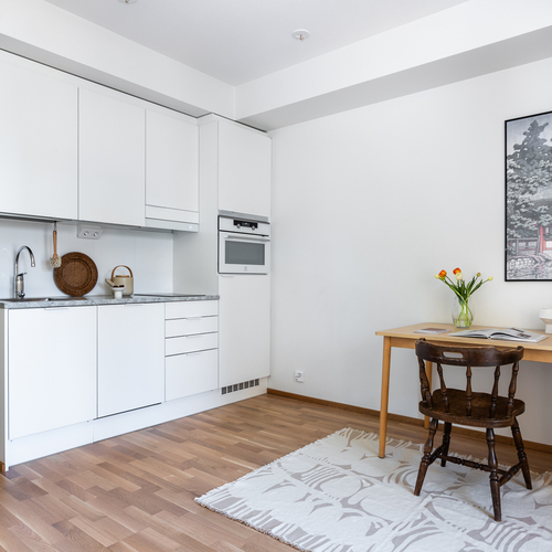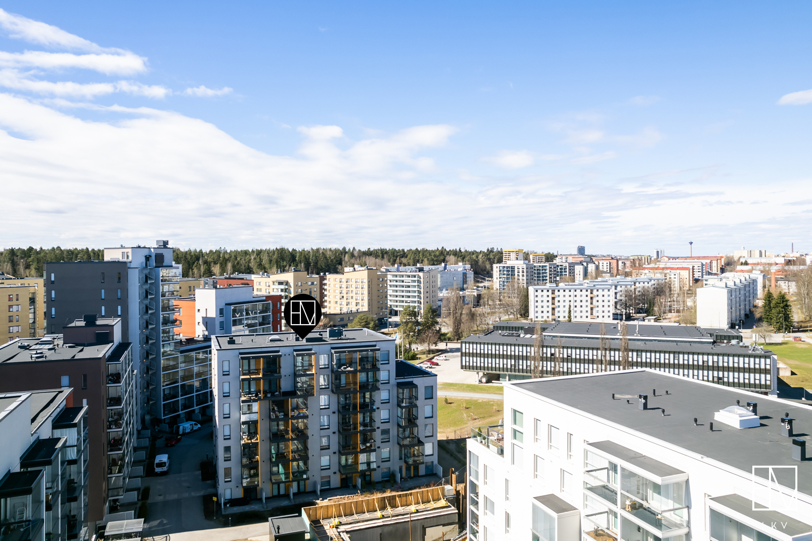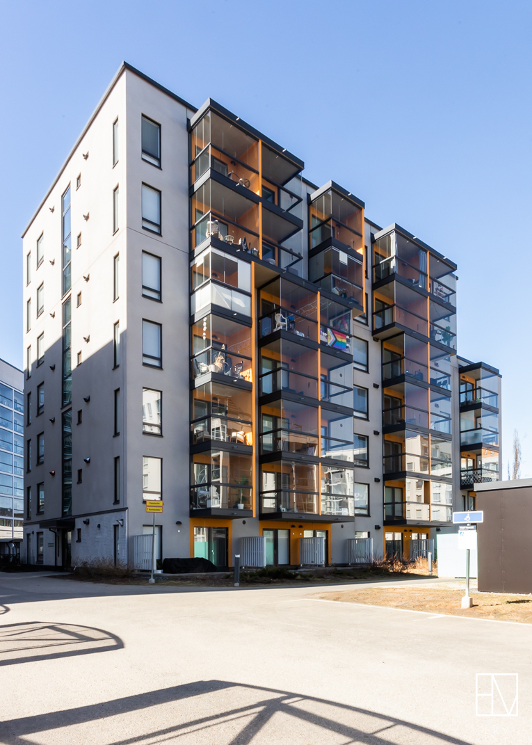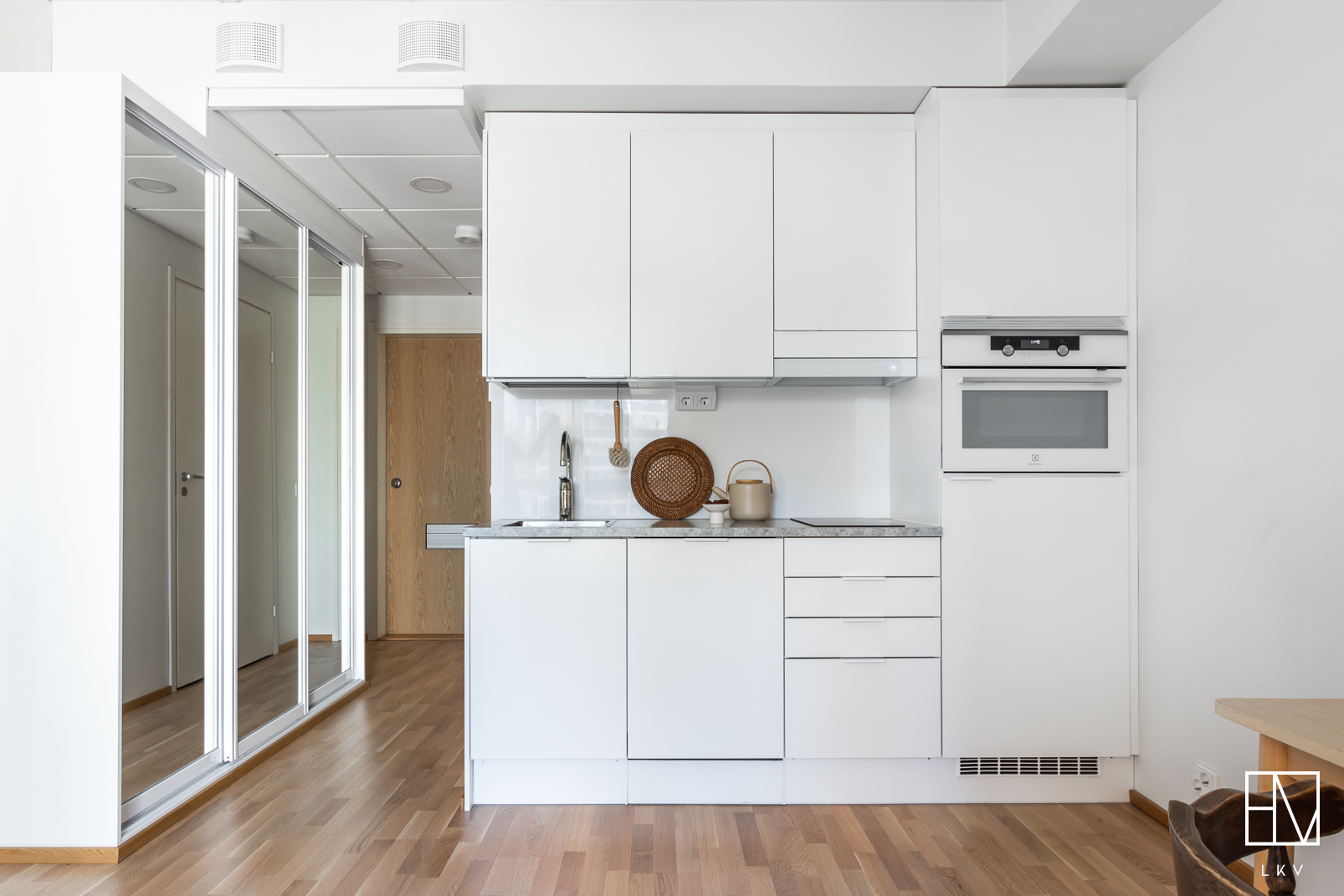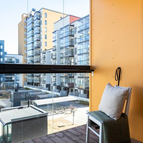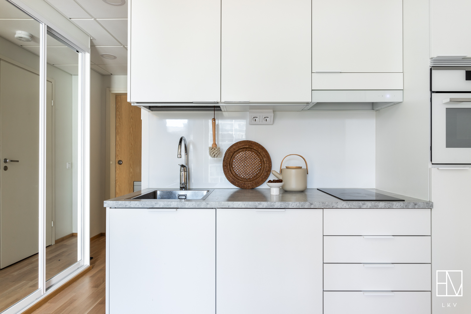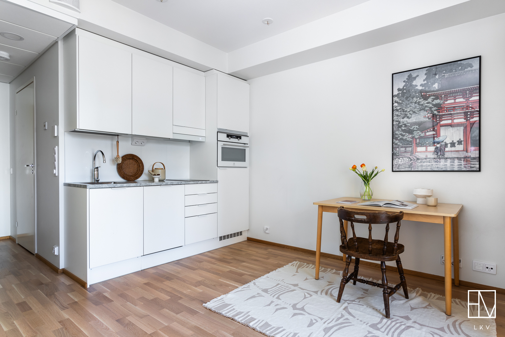 Tämä 22 m² pikkukoti on todellinen tilan suunnittelun taideteos, jossa pieneen neliömäärään on saatu mahtumaan kaikki tarpeellinen. Asunto tuntuukin neliöitään suuremmalta, sillä turhat hukkaneliöt loistaa poissaolollaan. Huoneisto sijaitsee 3. kerroksessa ja huoneiston jatkeena on tilava lasitettu parveke, joka toimii lisähuoneena ympäri vuoden ja nostaa asuinmukavuutta. Huoneistossa on lisäksi tilava kylpyhuone, jossa on paikka pyykinpesukoneelle.