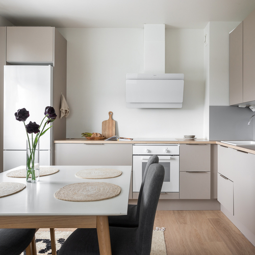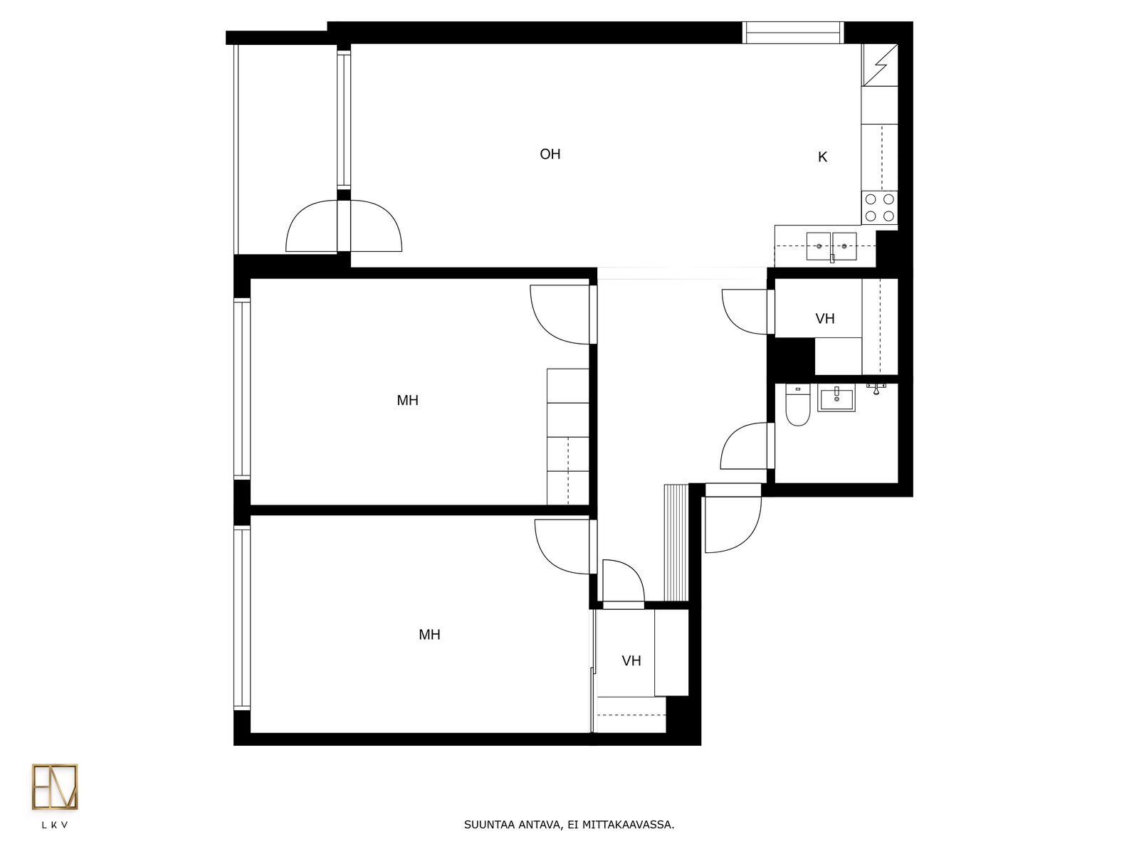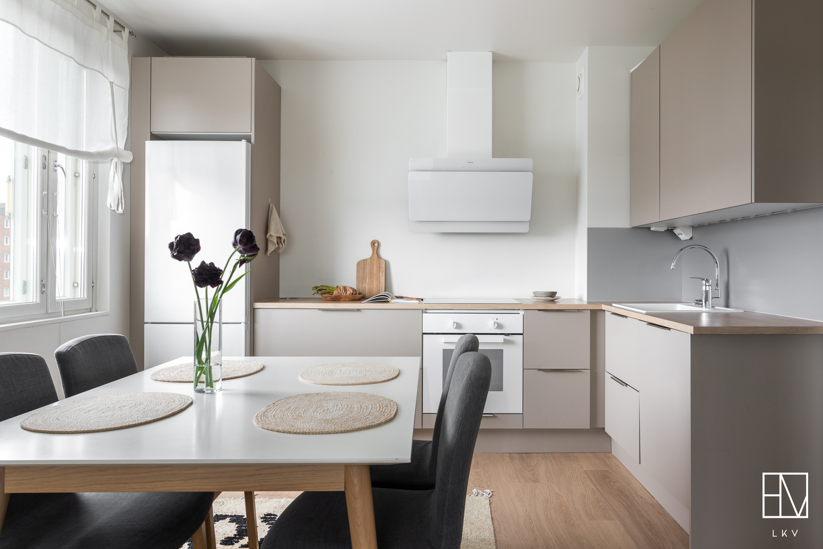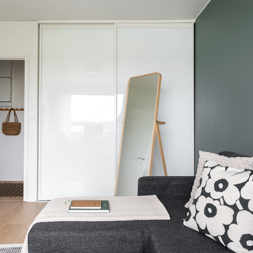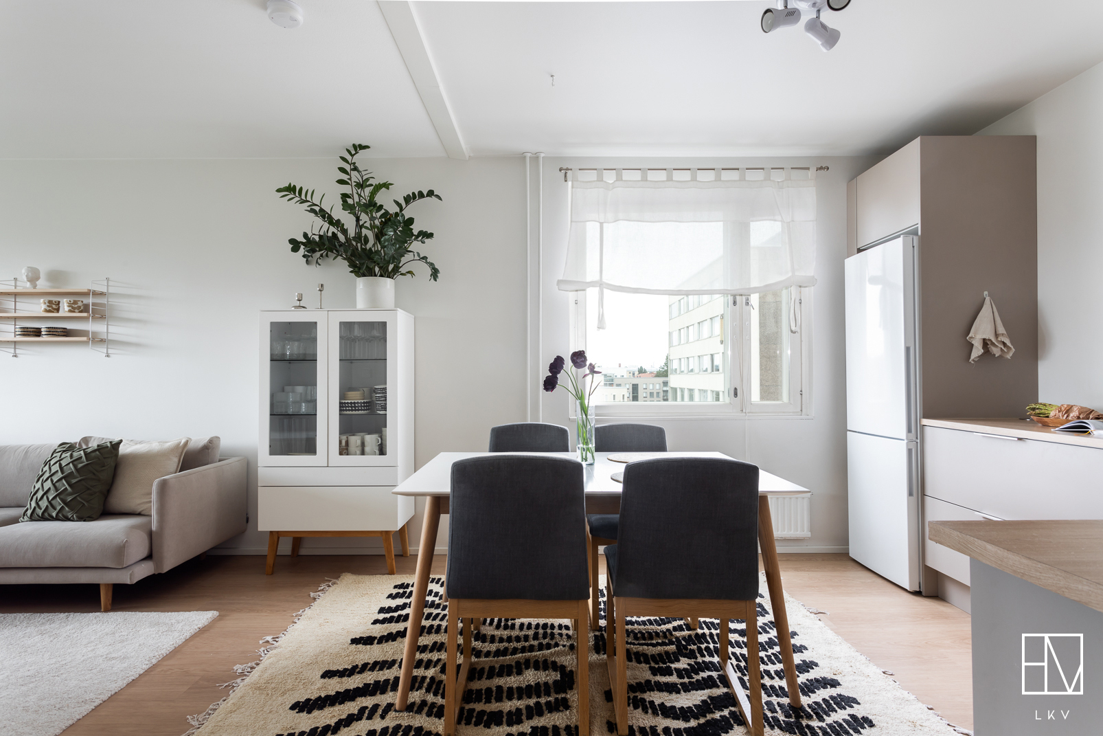 Avara ja toimiva pohjaratkaisu kahdella vaatehuoneella tekee asumisesta helppoa ja sujuvaa. Tilava olohuone yhdistyy luontevasti ruokailu- ja keittiötiloihin, mikä lisää kodin viihtyisyyttä.