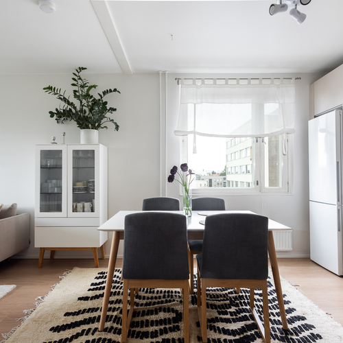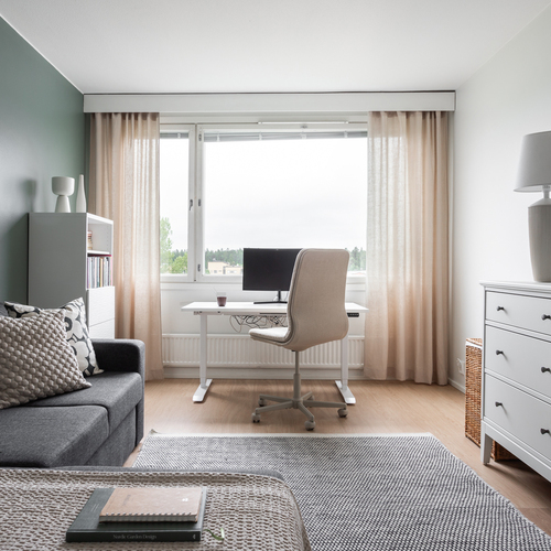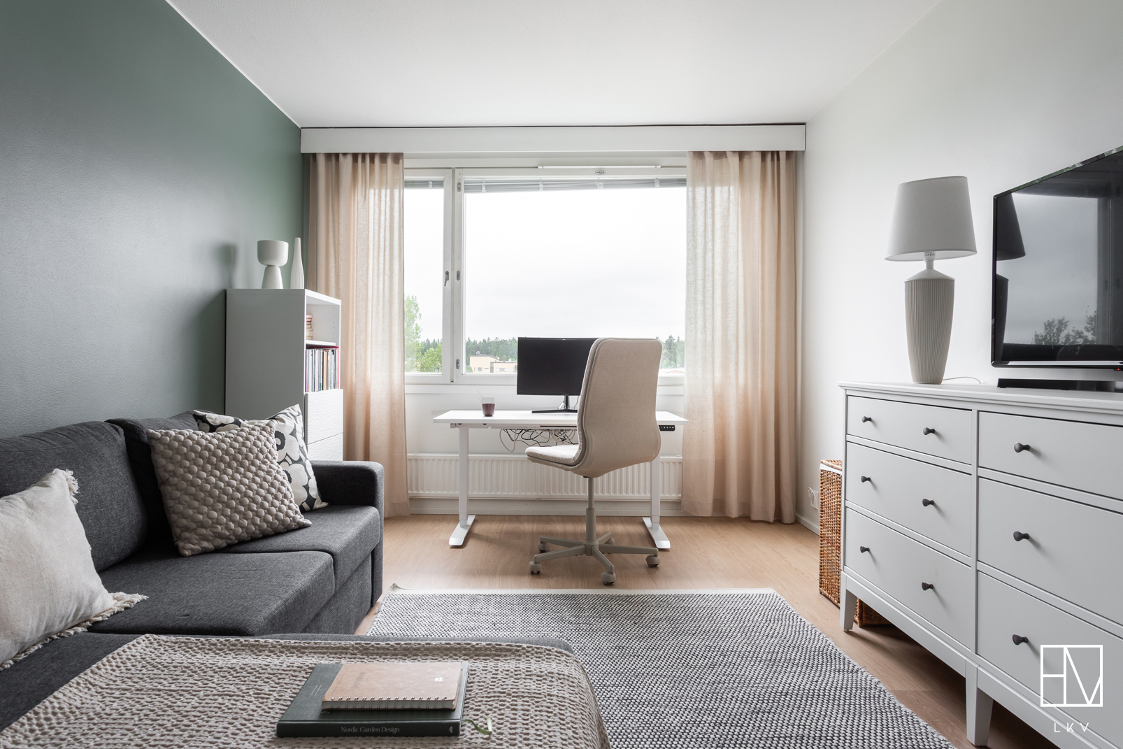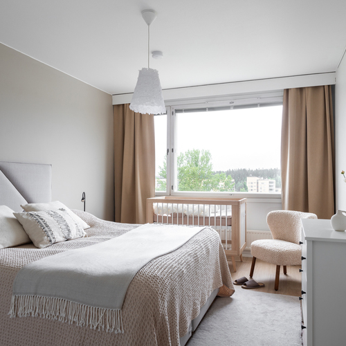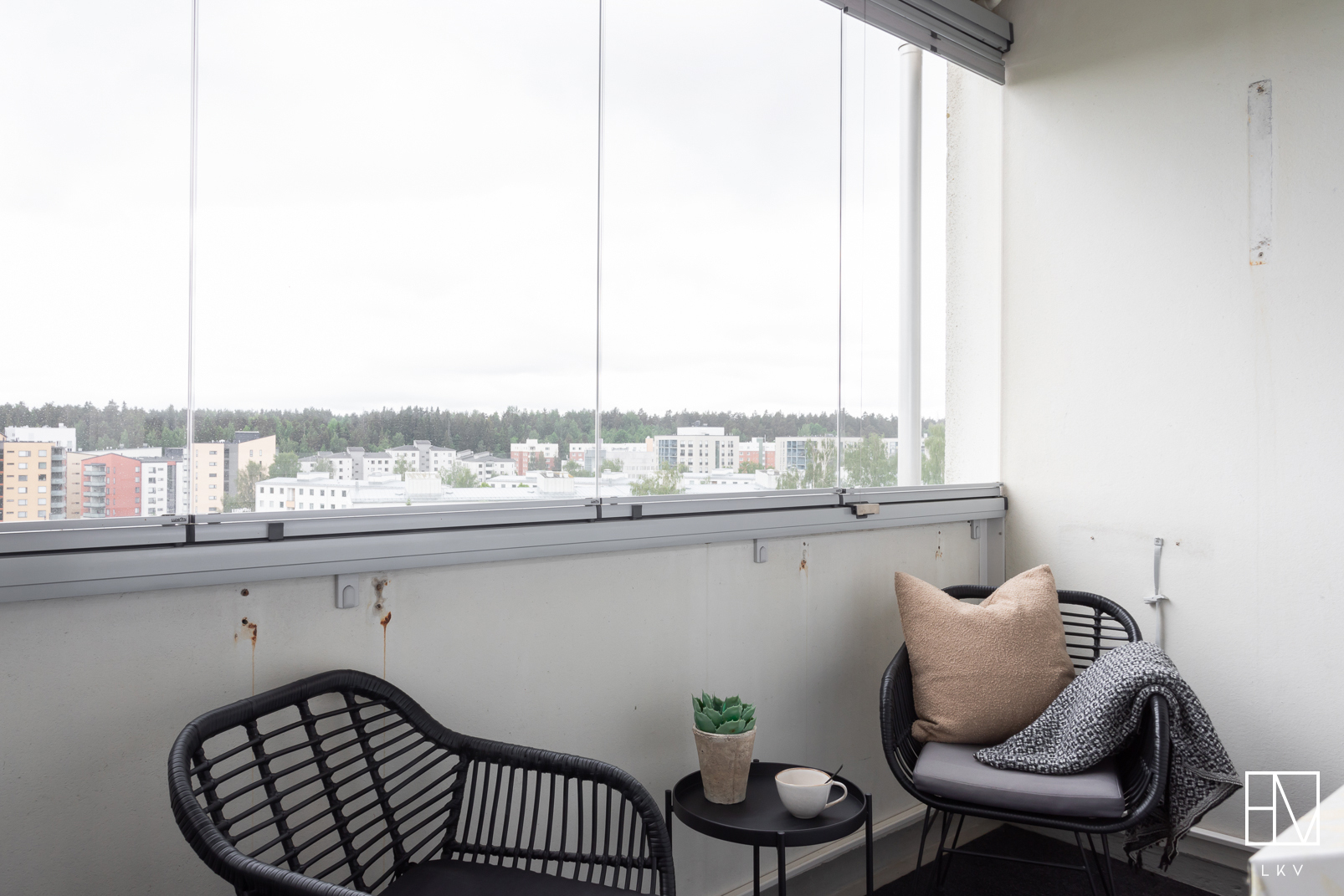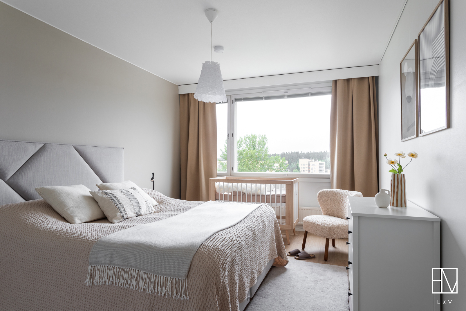 Tämä 7. kerroksen huoneisto hurmaa avaruudellaan ja upeilla näkymillään. Kodin harmoninen vaalea värimaailma luo rauhallisen tunnelman, ja erityisen huomionarvoisia ovat kaksi poikkeuksellisen suurta makuuhuonetta, jotka tarjoavat runsaasti tilaa niin arkeen kuin vapaa-aikaan.