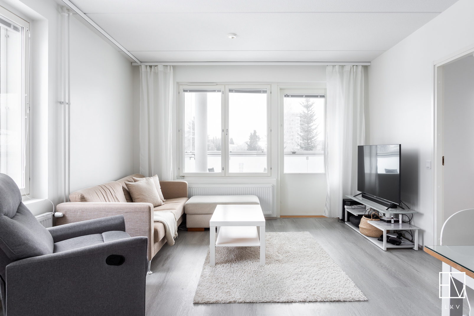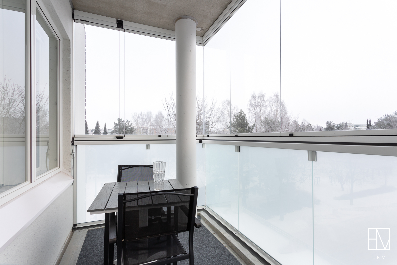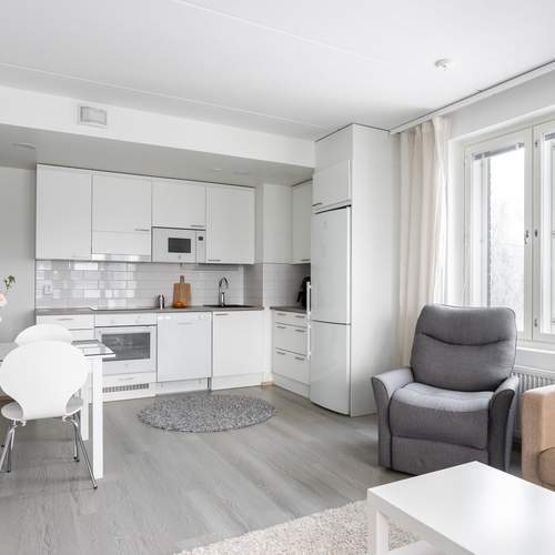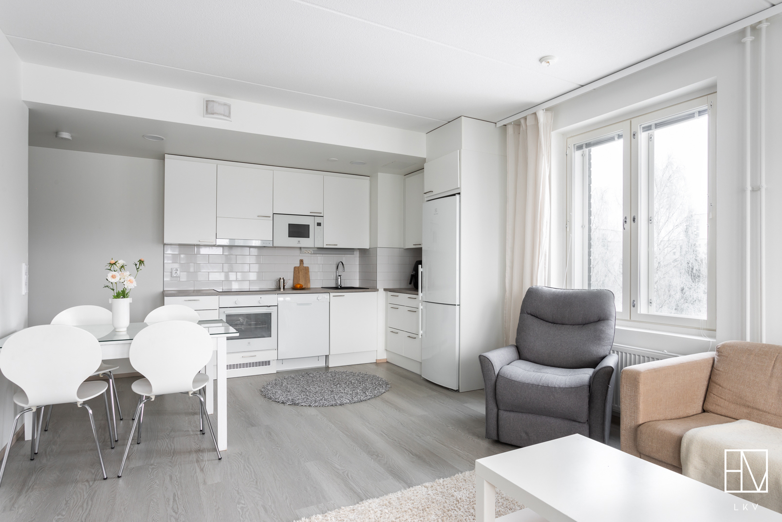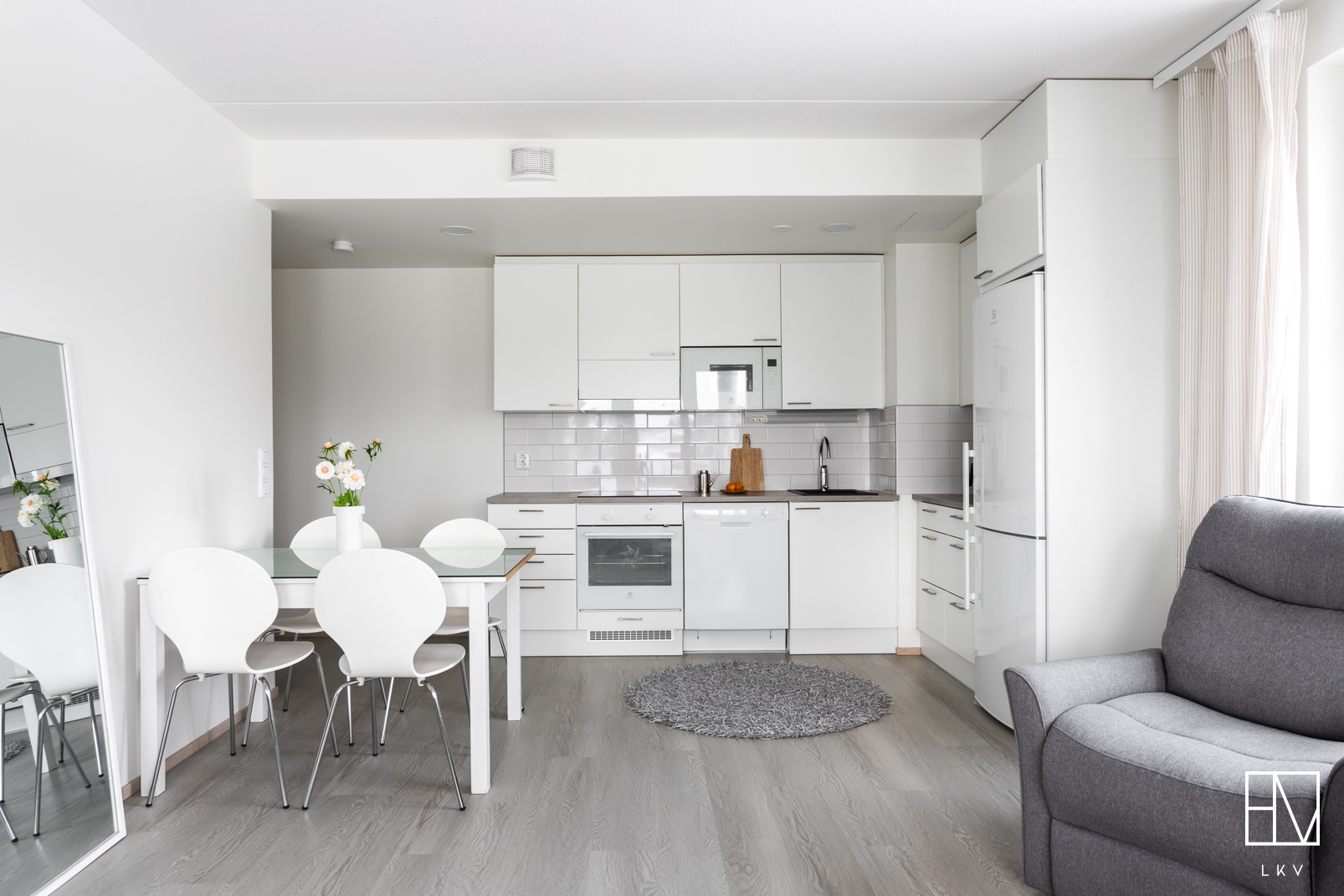 Asunnon pohjaratkaisu on toimiva ja selkeä. Vaaleansävyinen keittiö yhdistyy valoisaan olohuoneeseen, josta on käynti tilavalle lasitetulle parvekkeelle. Makuuhuone on reilun kokoinen ja tarjoaa hyvin säilytystilaa.