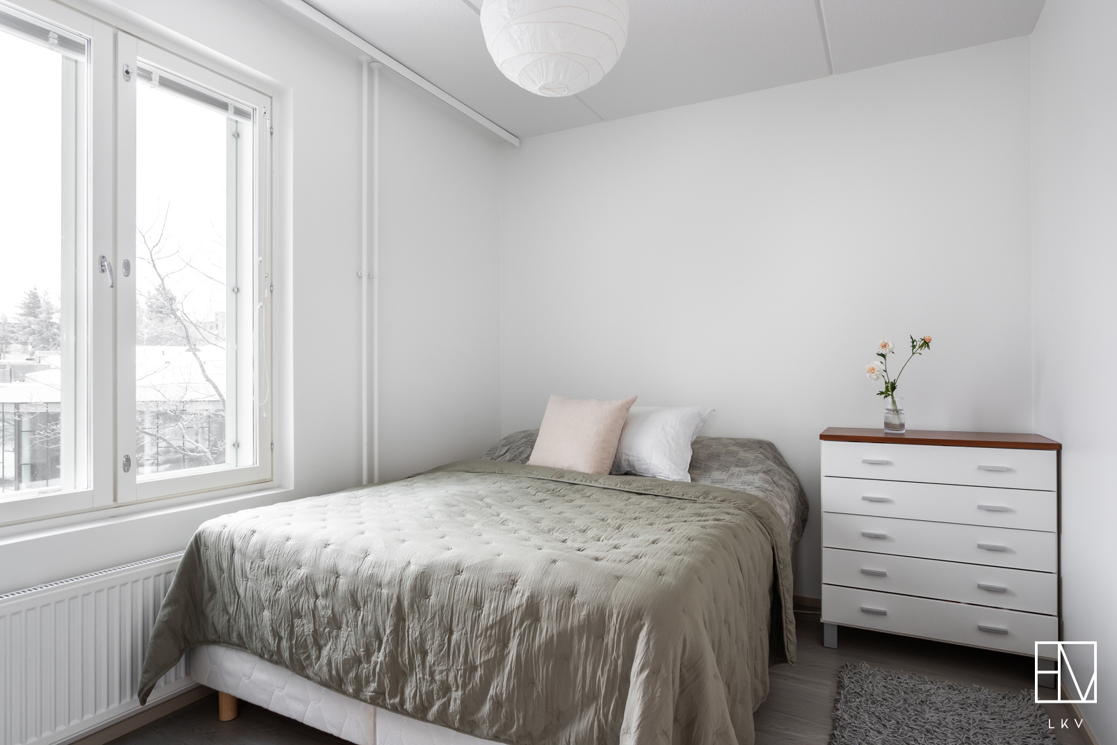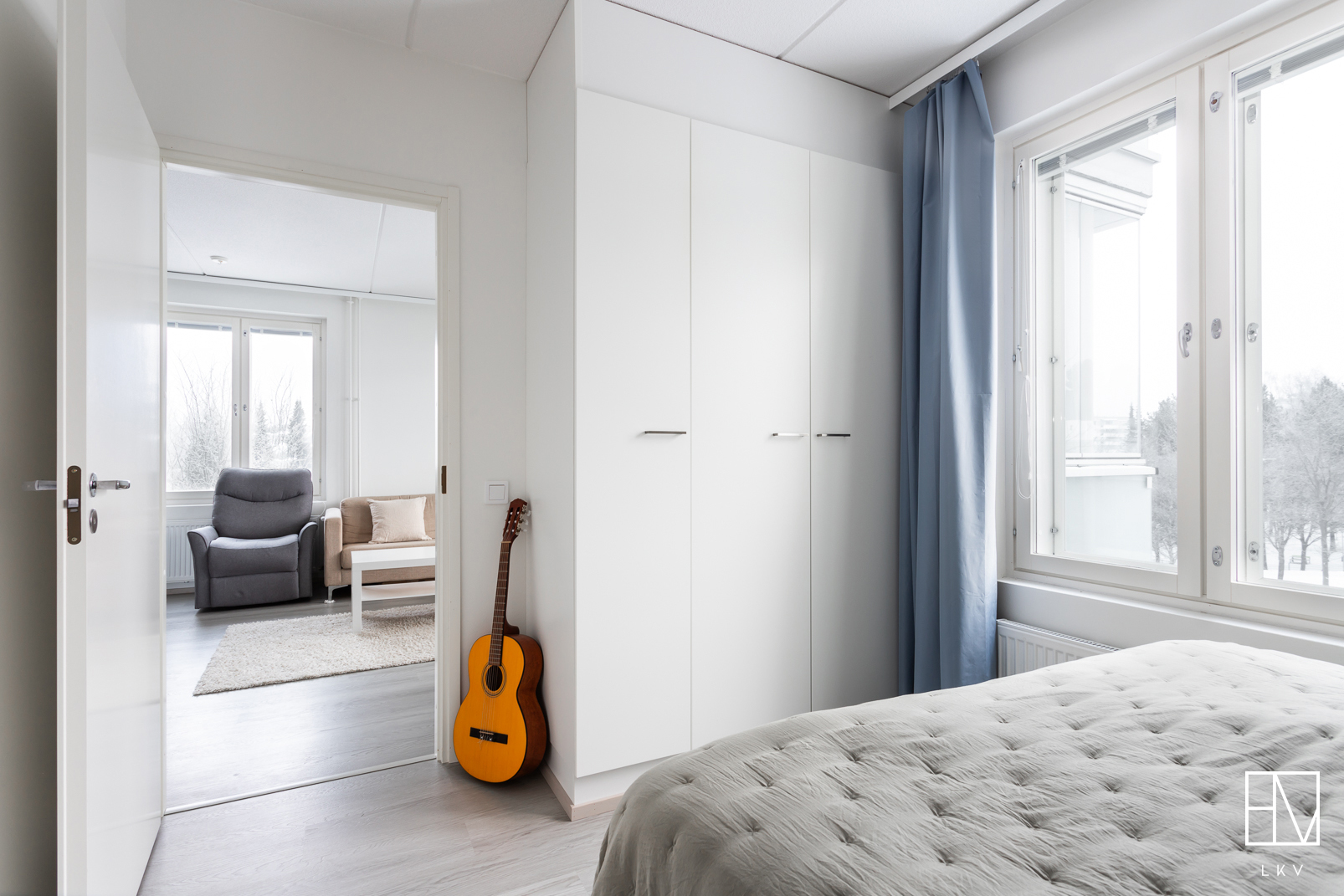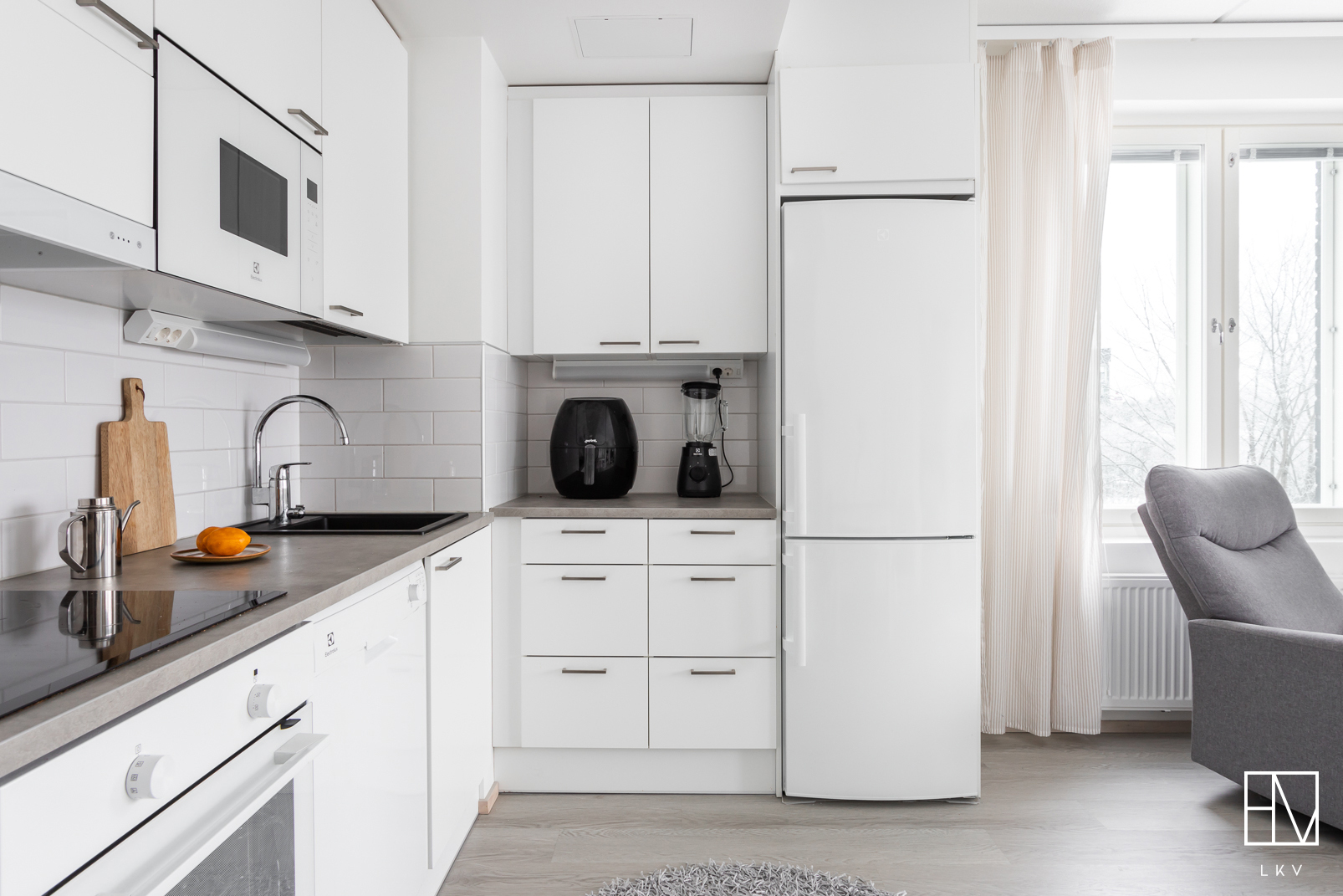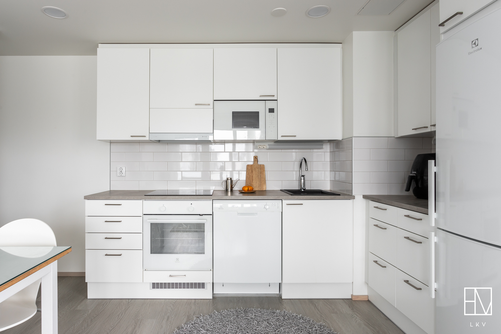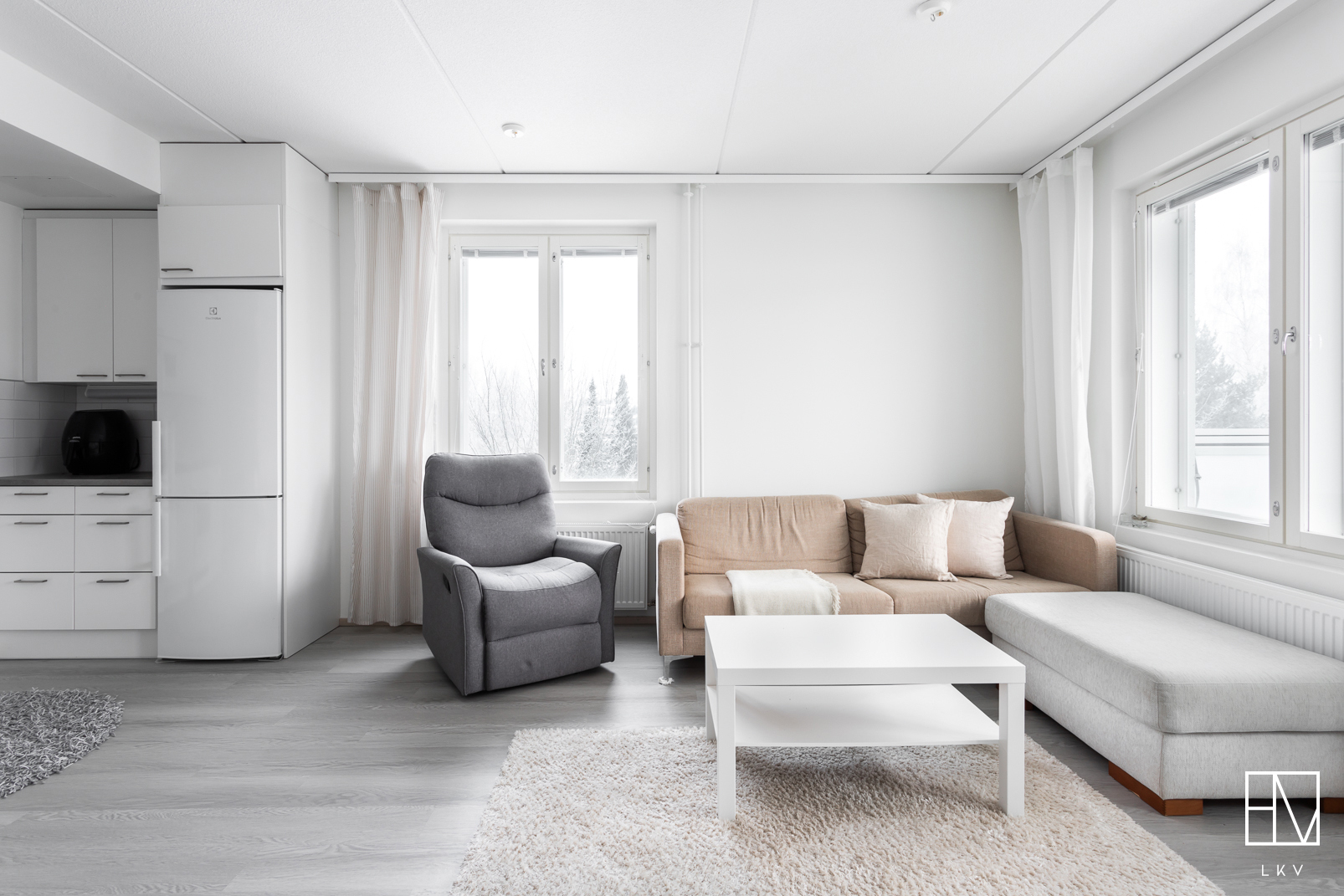 Asunnon pohjaratkaisu on toimiva ja selkeä. Vaaleansävyinen keittiö yhdistyy valoisaan olohuoneeseen, josta on käynti tilavalle lasitetulle parvekkeelle. Makuuhuone on reilun kokoinen ja tarjoaa hyvin säilytystilaa.