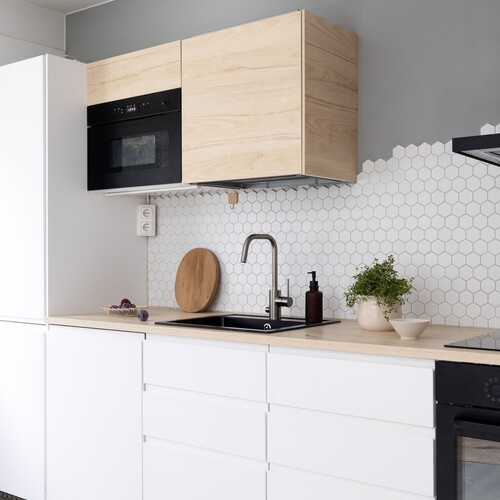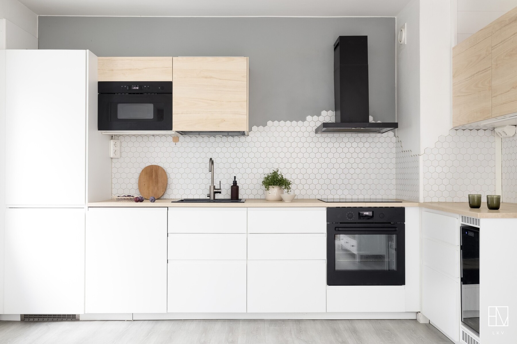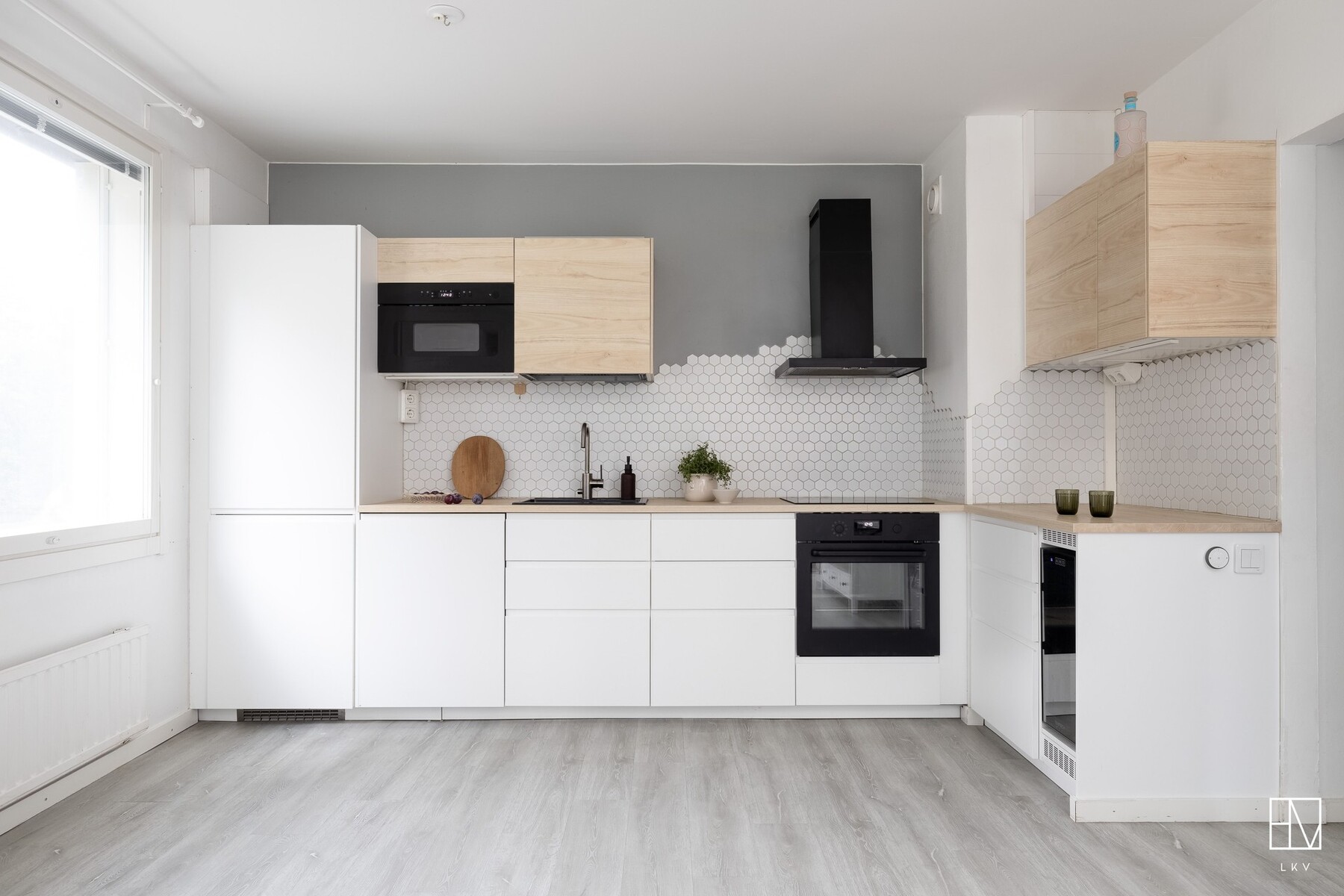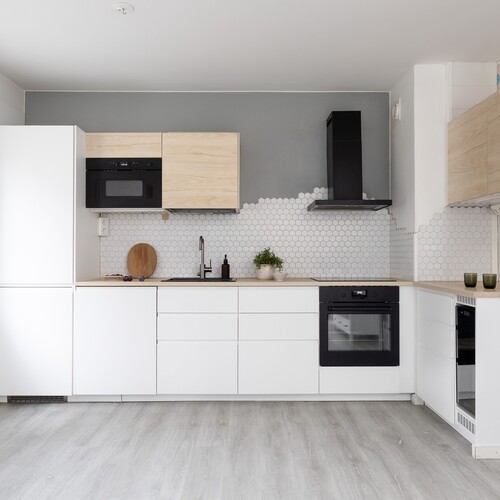 Varusteet: liesituuletin, mikroaaltouuni, astianpesukone