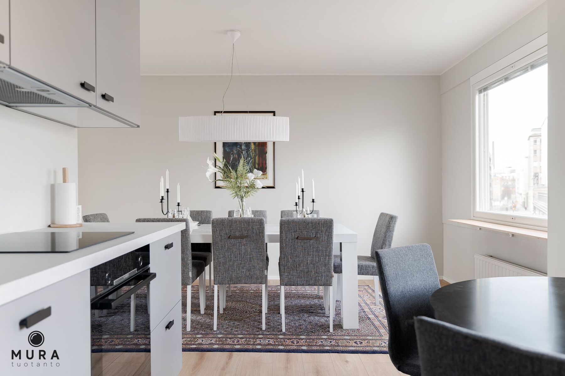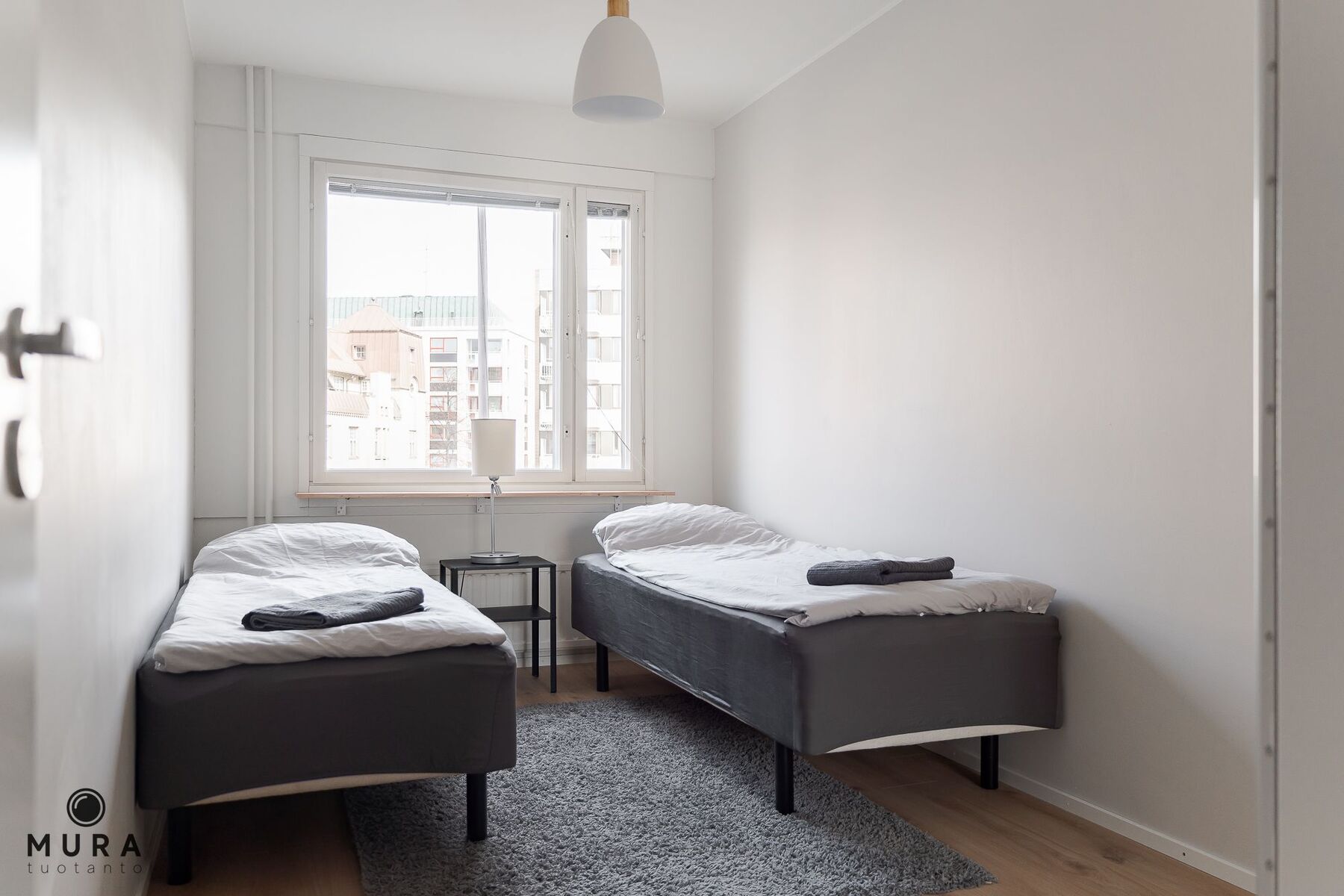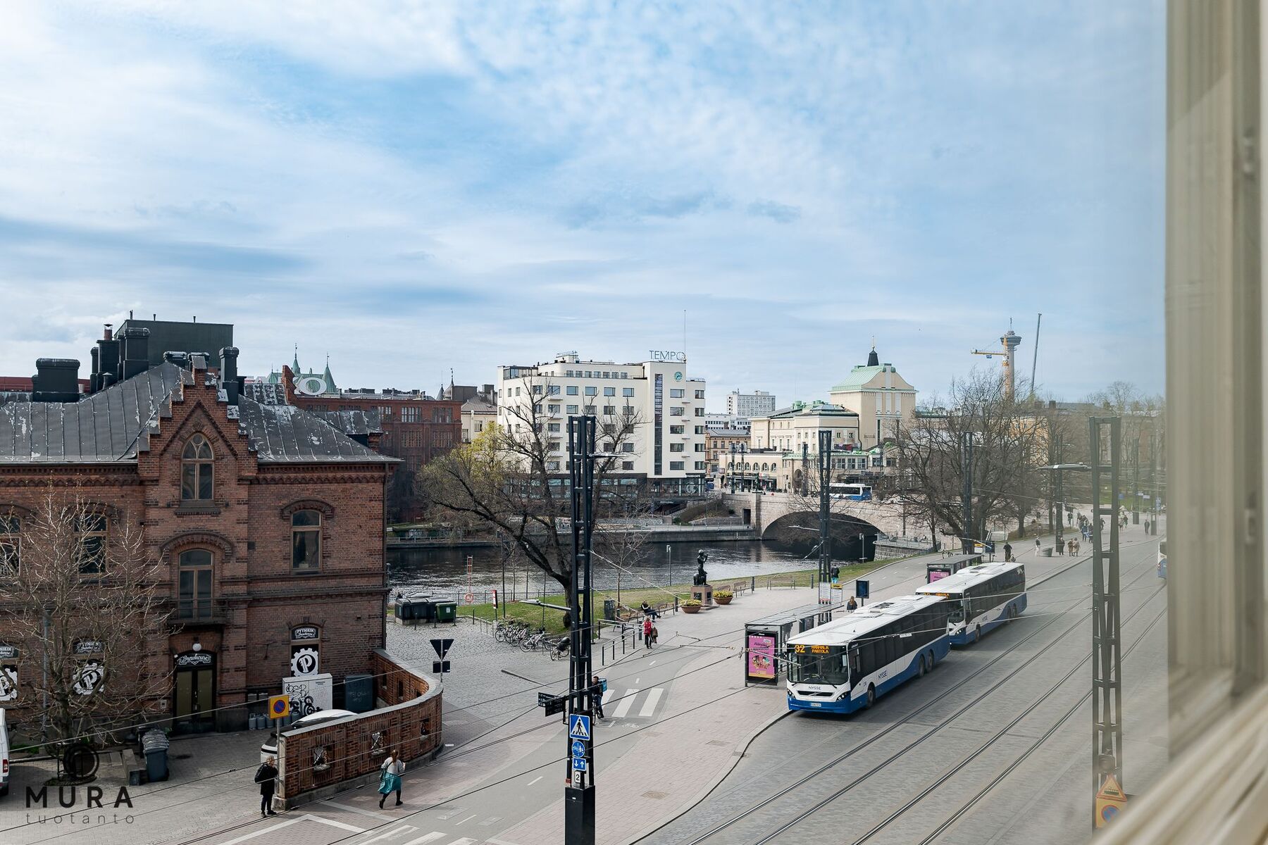 Upea, remontoitu huoneisto Tampereen ydinkeskustassa – Tammerkoskinäkymällä! Asunnosta on avarat kaupunkinäkymät kaikista ikkunoista.