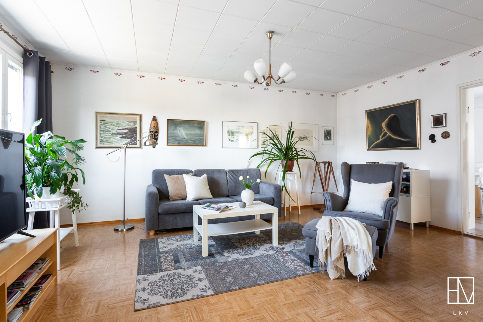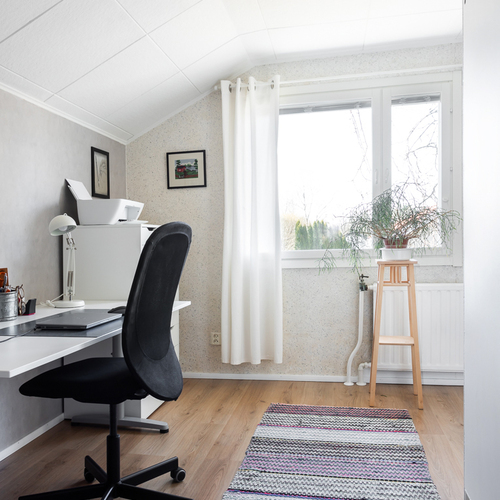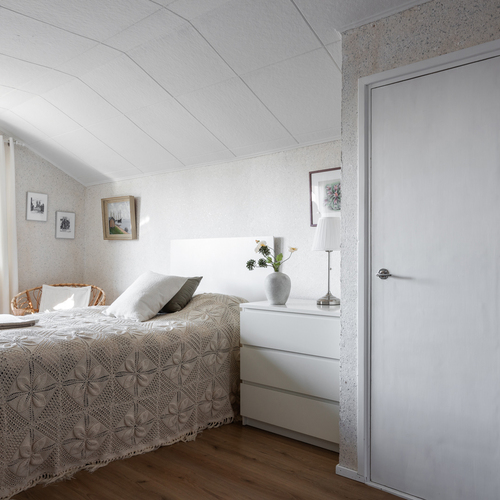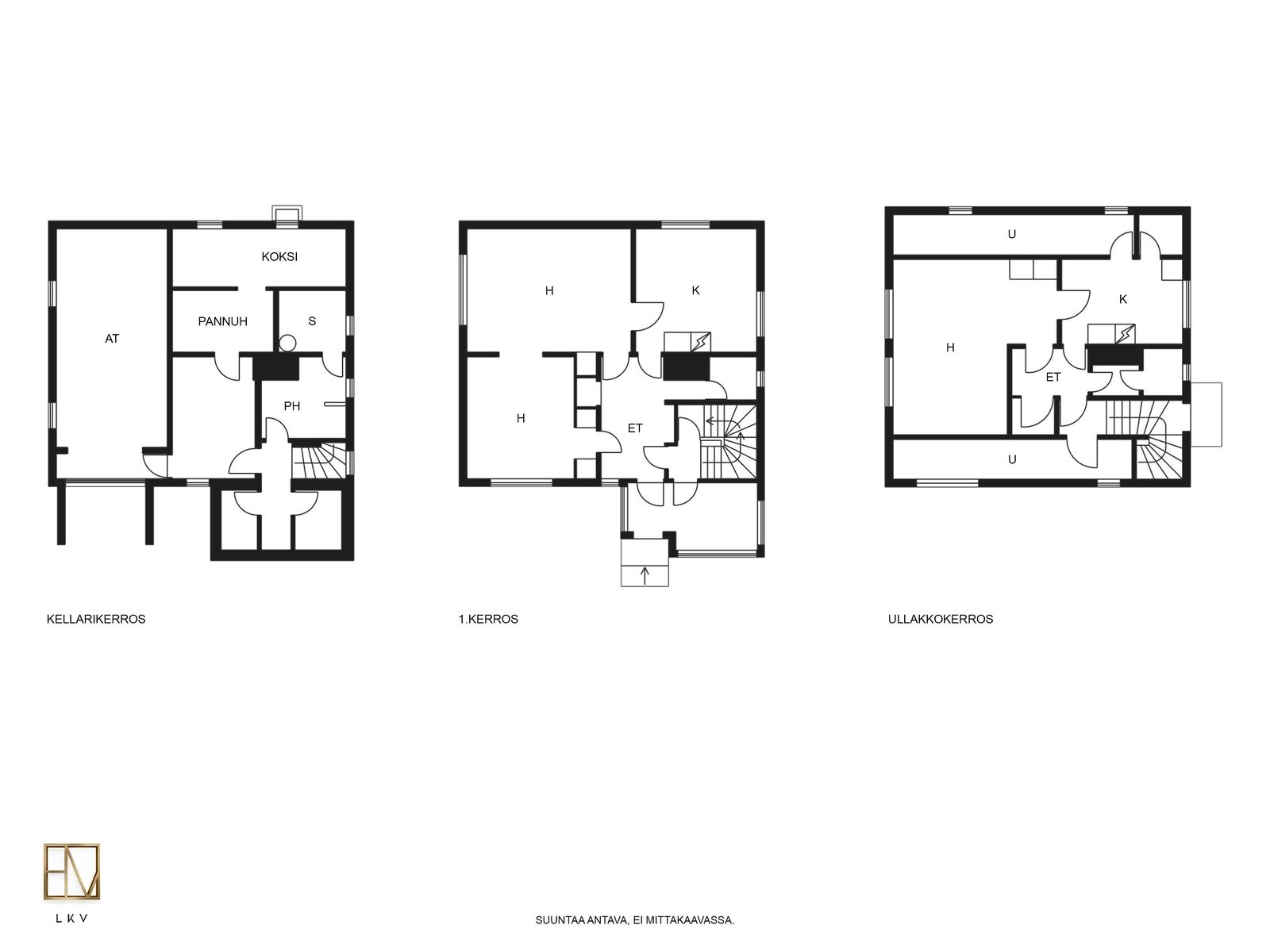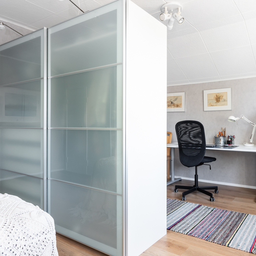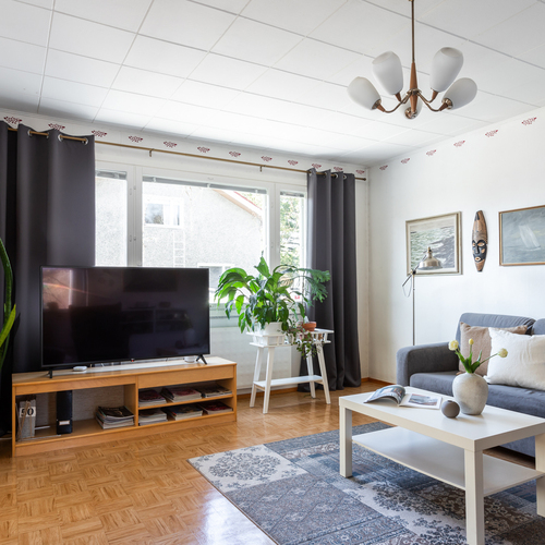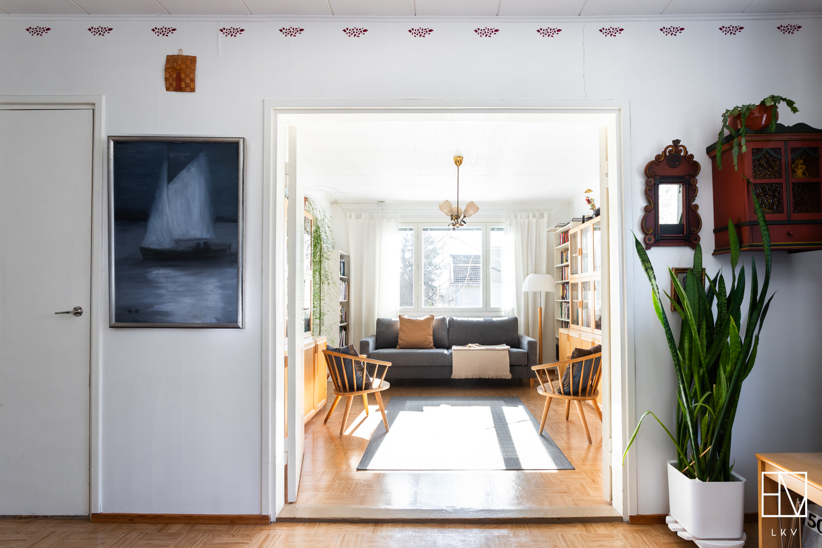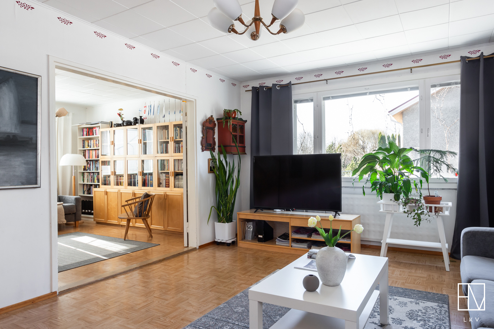 Kodissa on toimiva ja selkeä pohjaratkaisu. Keskikerroksessa sijaitsevat tyylikäs keittiö sekä kaksi huonetta. Yläkerrassa on kaksi makuuhuonetta, joista toinen on poikkeuksellisen tilava ja helposti jaettavissa kahdeksi erilliseksi makuuhuoneeksi tarpeen mukaan.
