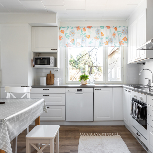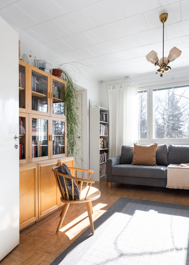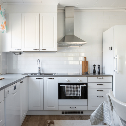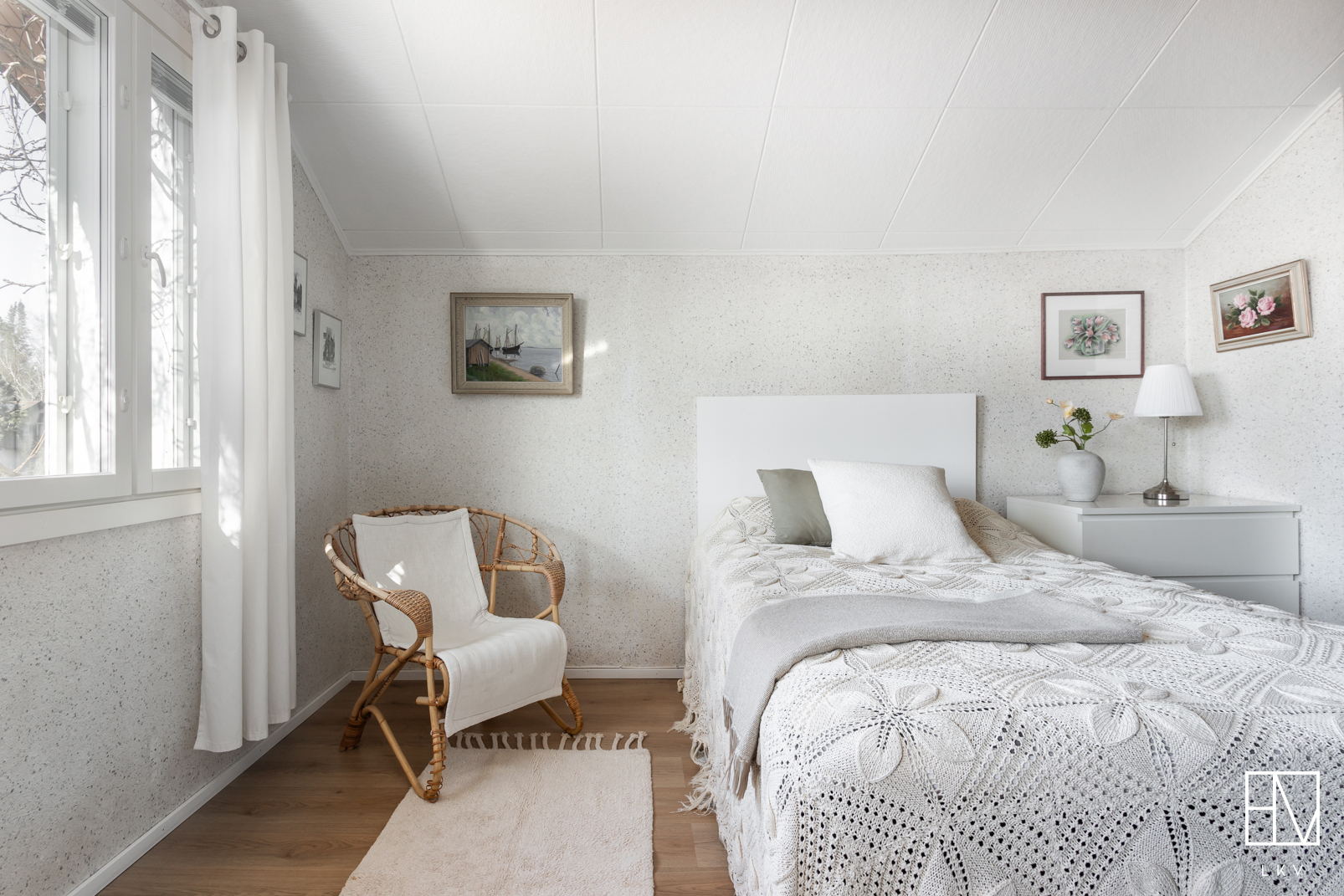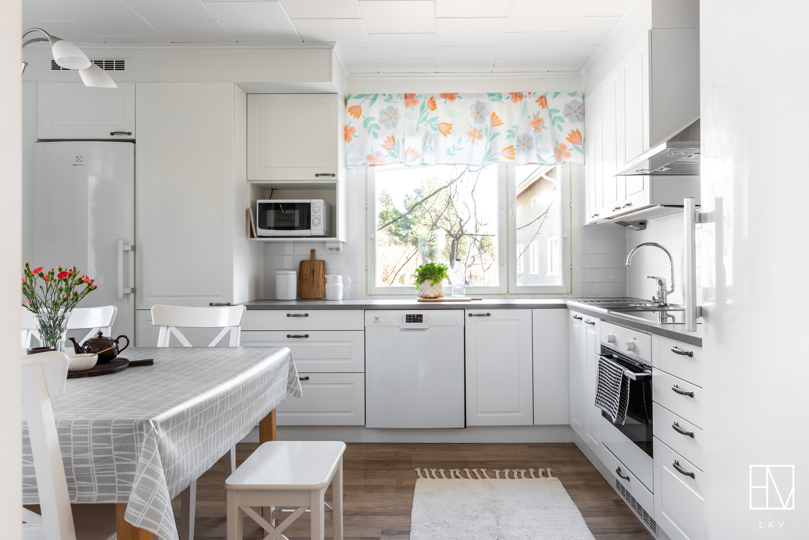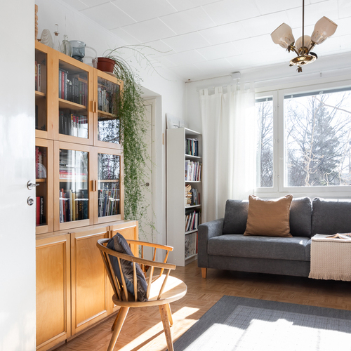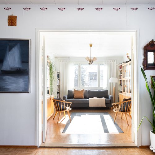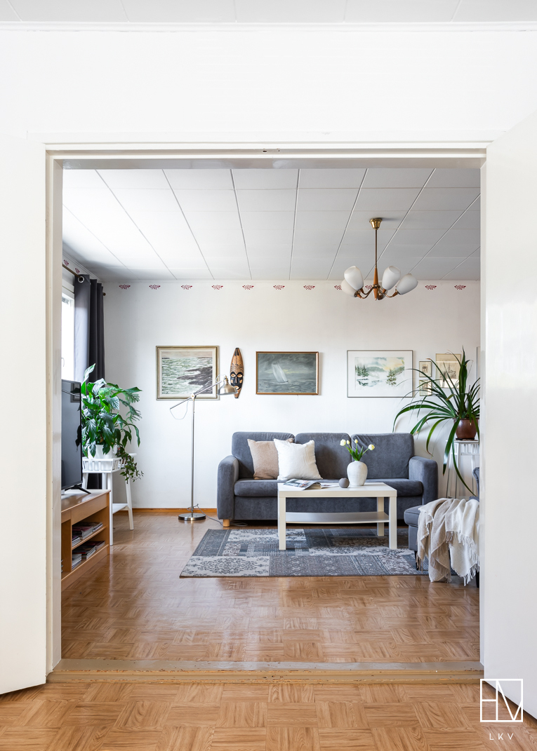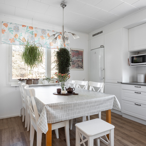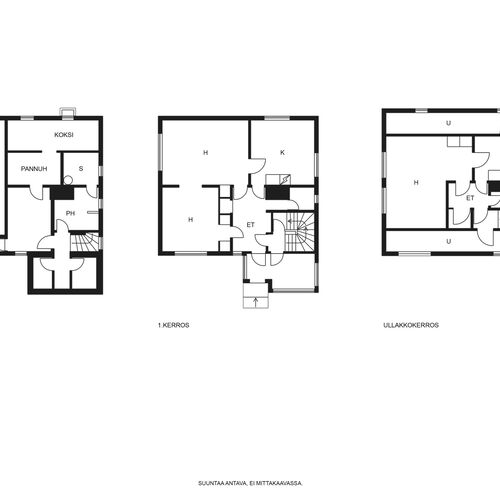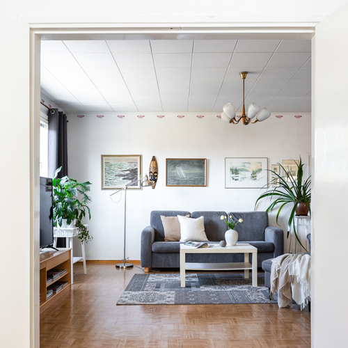 Kodissa on toimiva ja selkeä pohjaratkaisu. Keskikerroksessa sijaitsevat tyylikäs keittiö sekä kaksi huonetta. Yläkerrassa on kaksi makuuhuonetta, joista toinen on poikkeuksellisen tilava ja helposti jaettavissa kahdeksi erilliseksi makuuhuoneeksi tarpeen mukaan.