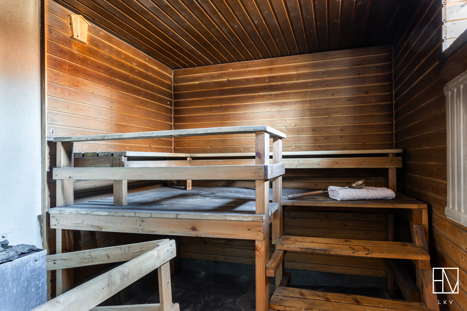 Kellarikerroksesta löytyvät monipuoliset säilytystilat, saunatilat sekä autotalli, joka toimii nykyisin varastokäytössä.