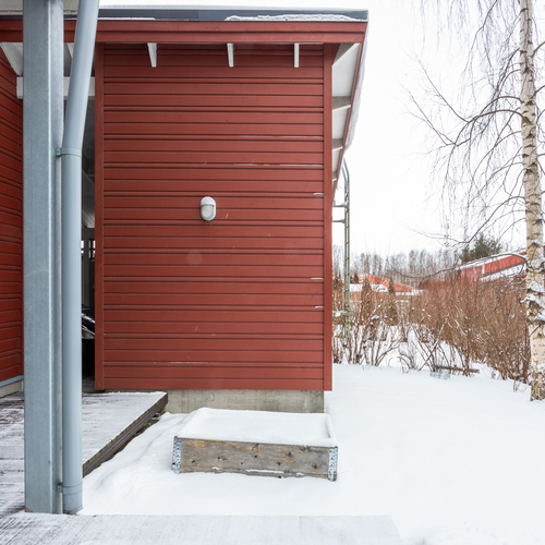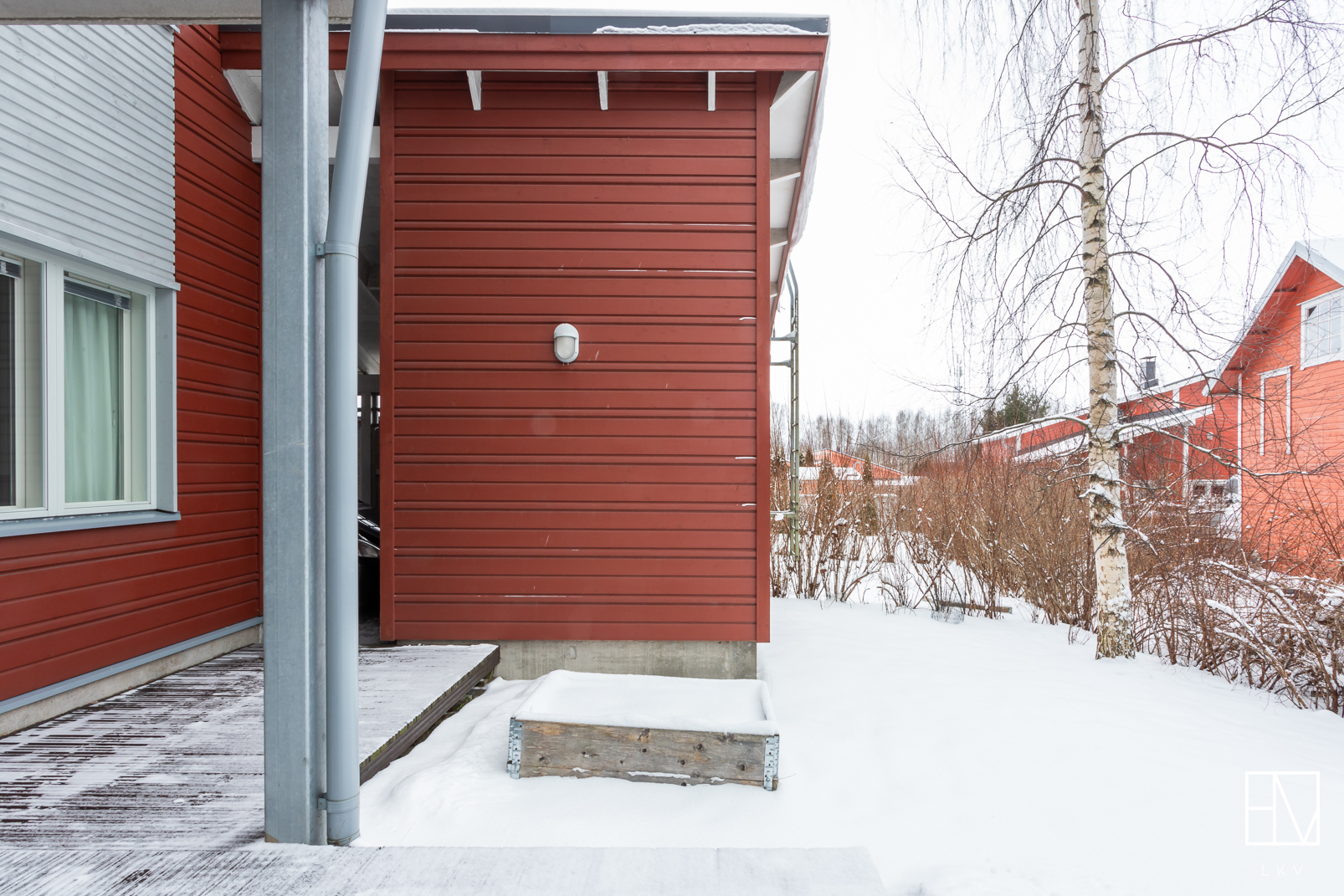 Sisäänkäynnin vieressä on oma autokatospaikka sekä pihapaikka, ja käytössä on myös erillinen ulkovarasto, joka on poikkeuksellisen korkea, yli 4 m toisessa päädyssä. Lisäksi väestönsuojassa polkupyörät ja autonrenkaat, taloyhtiön ruohonleikkuri, sekä muuta pihanhoitoon tarvittavaa kalustoa.