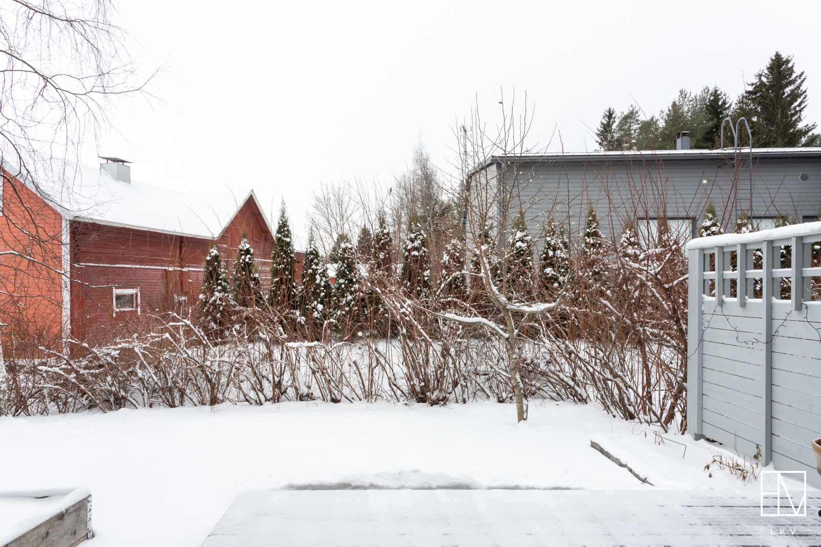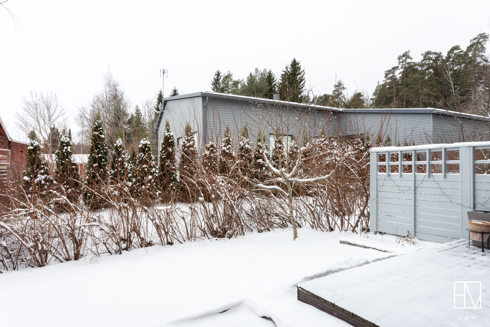 Takapiha on juuri sopivan kokoinen. Tilaa oleskeluun ja tekemiseen, mutta ei liikaa hoidettavaa.