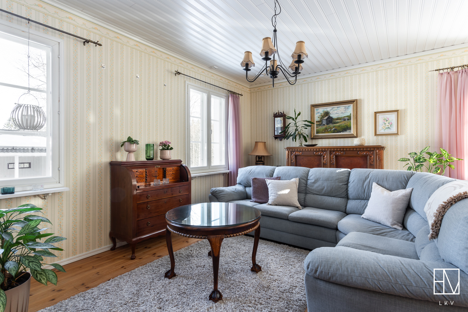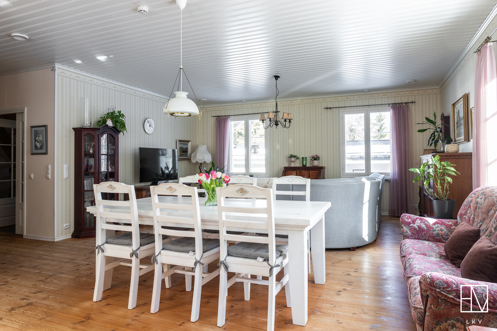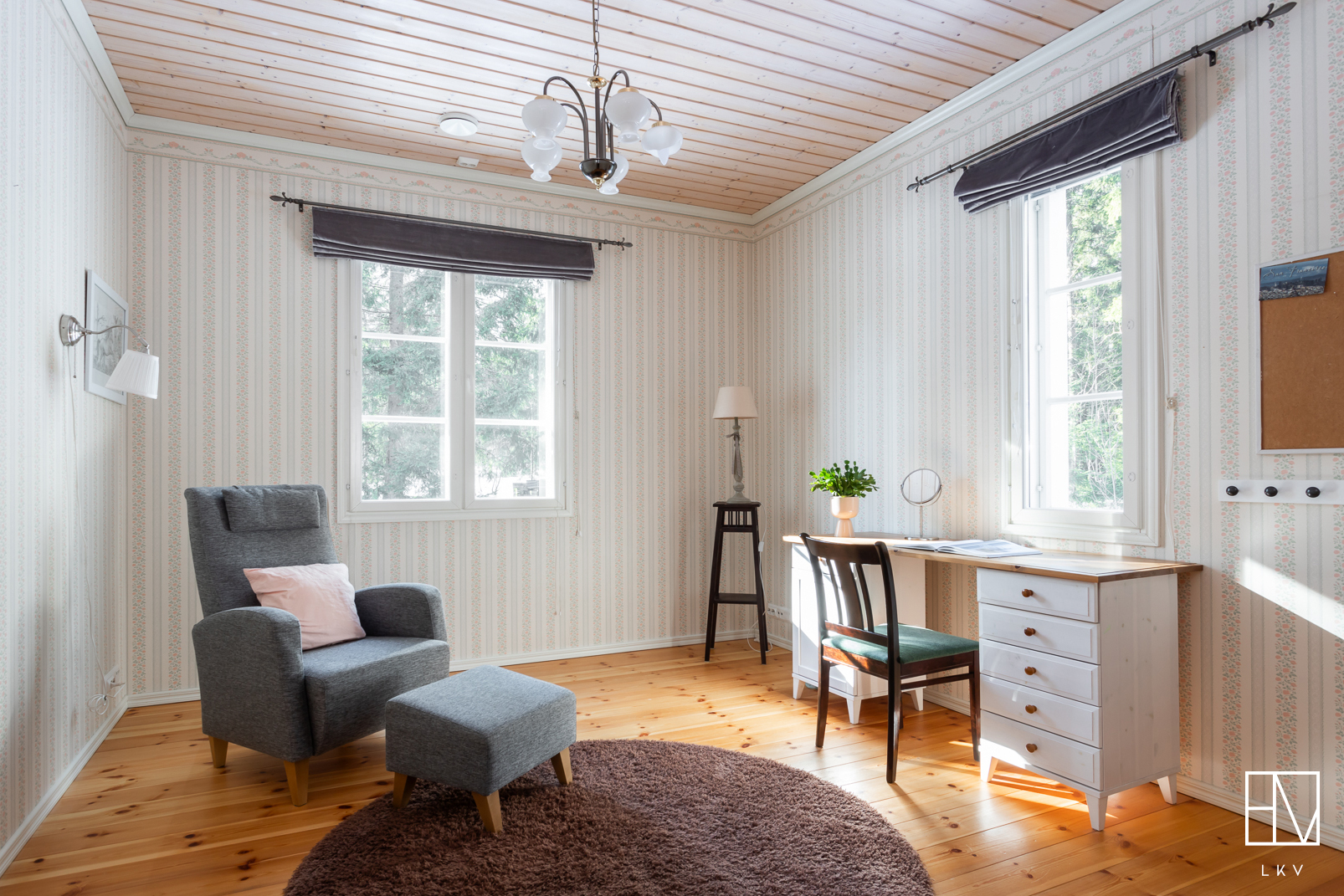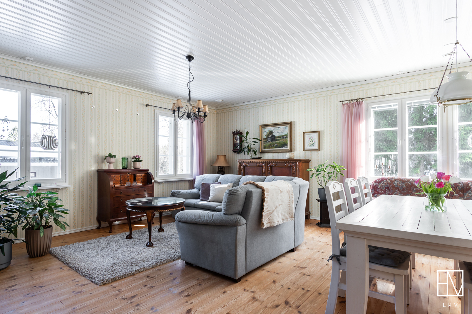 Heti sisään astuttaessa huomio kiinnittyy kodin näyttävään huonekorkeuteen ja avaraan tunnelmaan. Tilava eteinen tekee arjesta sujuvaa ja antaa heti laadukkaan ensivaikutelman. Kodin sisätilat ovat tyylikkäät ja huolella toteutetut, mikä luo viihtyisän ja harmonisen kokonaisuuden. Kaikki huoneet ovat tilavia ja yhden makuuhuoneista voisikin hyvin jakaa kahdeksi huoneeksi.