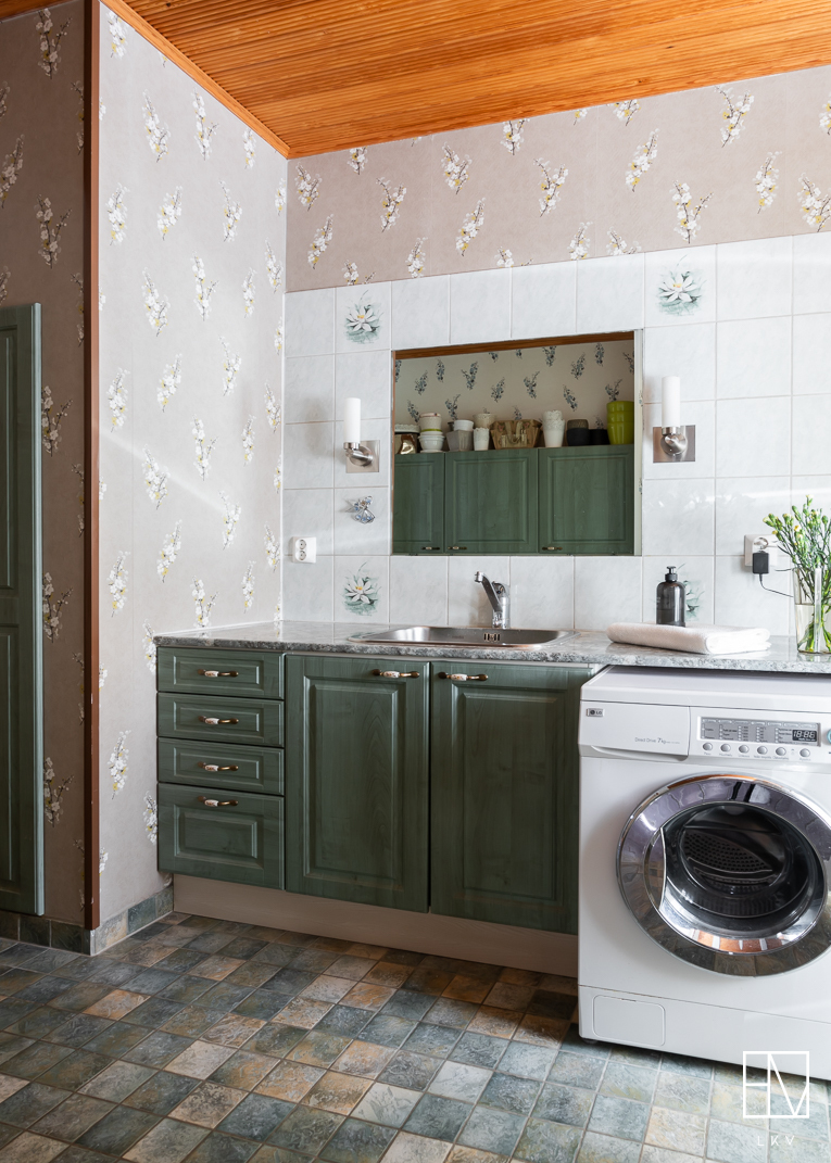 Varusteet: pesukoneliitäntä, pesuallas, lattialämmitys