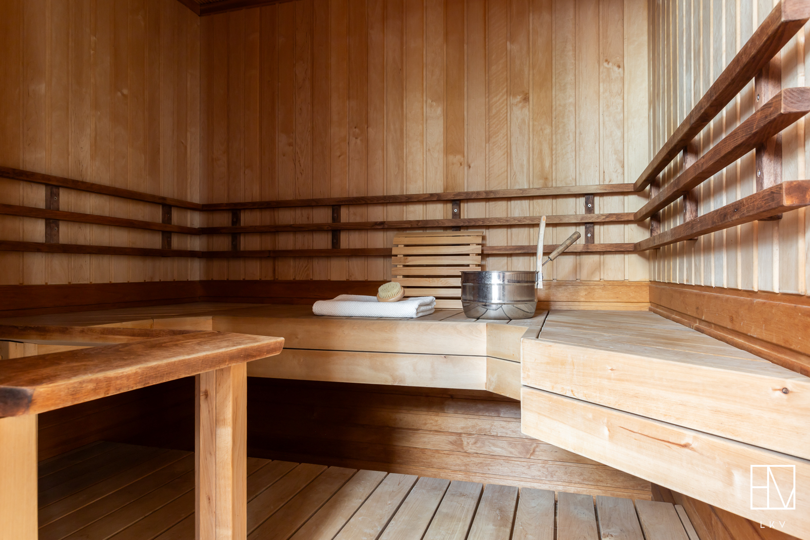 Sähkökiuas, puukiuasTalon saunassa sähkökiuas ja ulkosaunassa puukiuas.