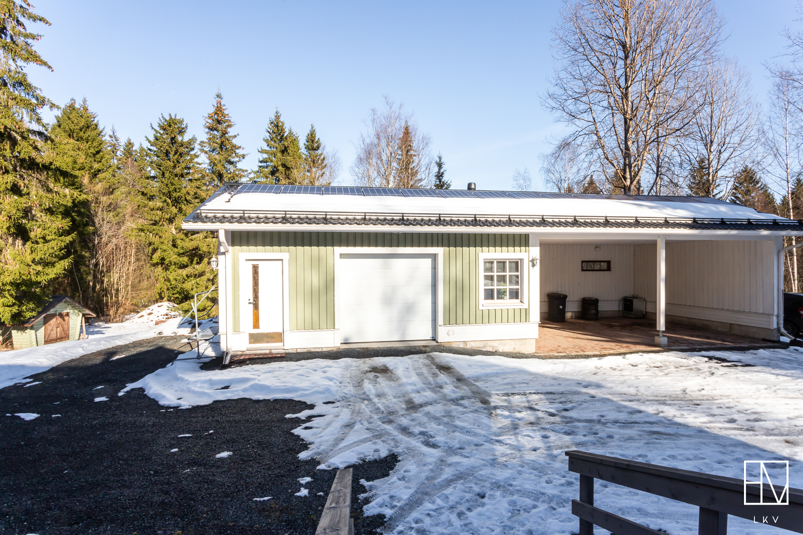 Maalämpö huolehtii lämmityksestä ja lisäksi löytyy myös ilmalämpöpumppu sekä vuonna 2023 asennetut aurinkopaneelit.