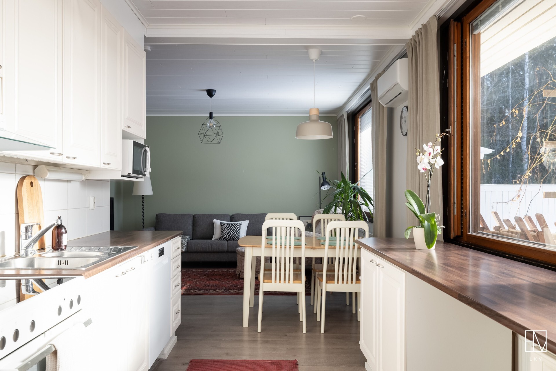 • Näkymää keittiöstä olohuoneen suuntaan