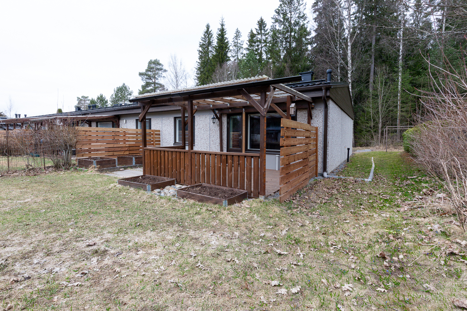 Kodissa on viihtyisä terassi ja oma piha-alue, jossa voit nauttia kesäpäivistä, grillailusta tai lasten leikeistä rauhallisessa ympäristössä. Ilmalämpöpumppu tuo asumismukavuutta ympäri vuoden.