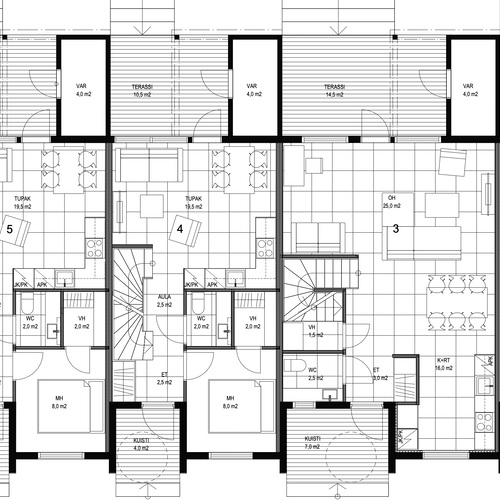 Modernit Puustelli-keittiöt on varustettu nykyaikaisilla ratkaisuilla ja laadukkailla kodinkoneilla. Kylpyhuoneiden materiaalit on valittu huolella, ja kokonaisuus huokuu tyylikkyyttä ja kestävyyttä.