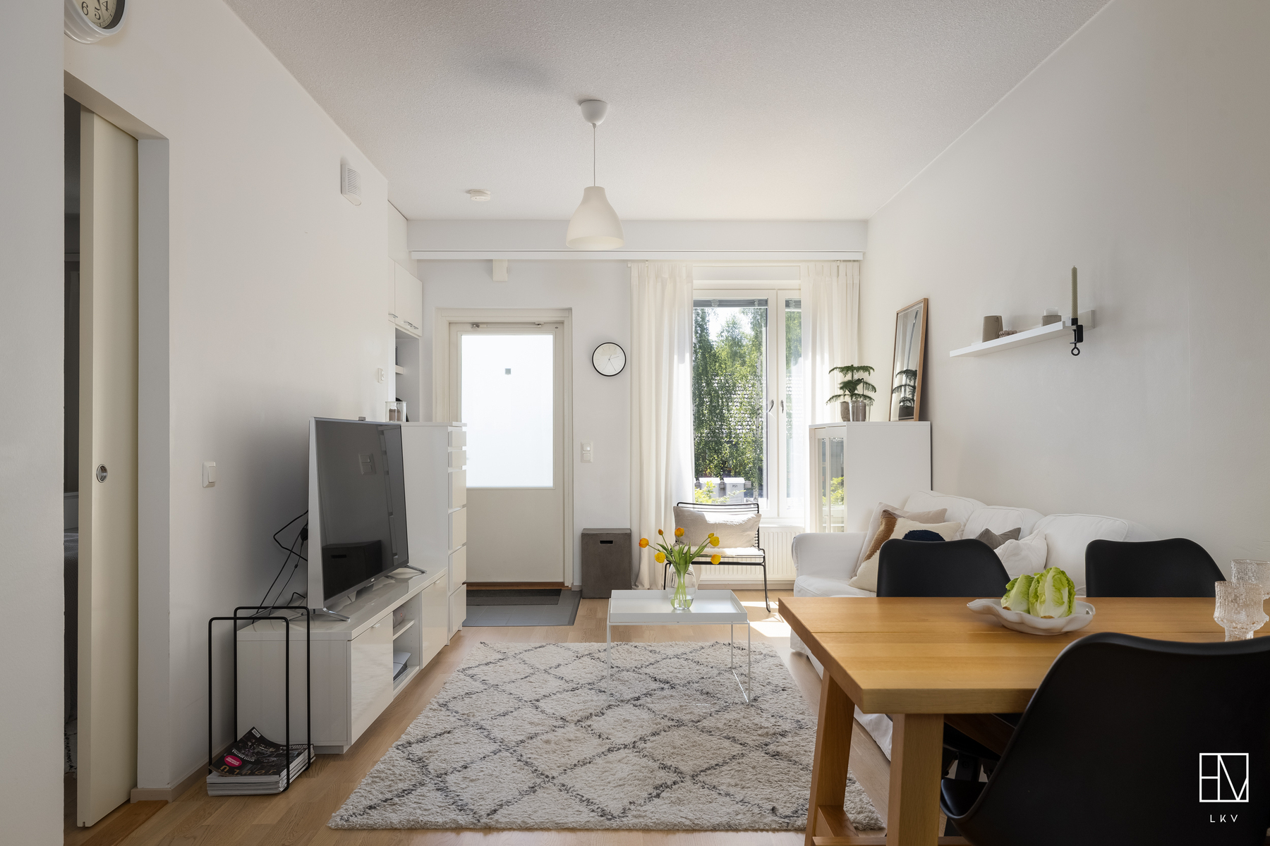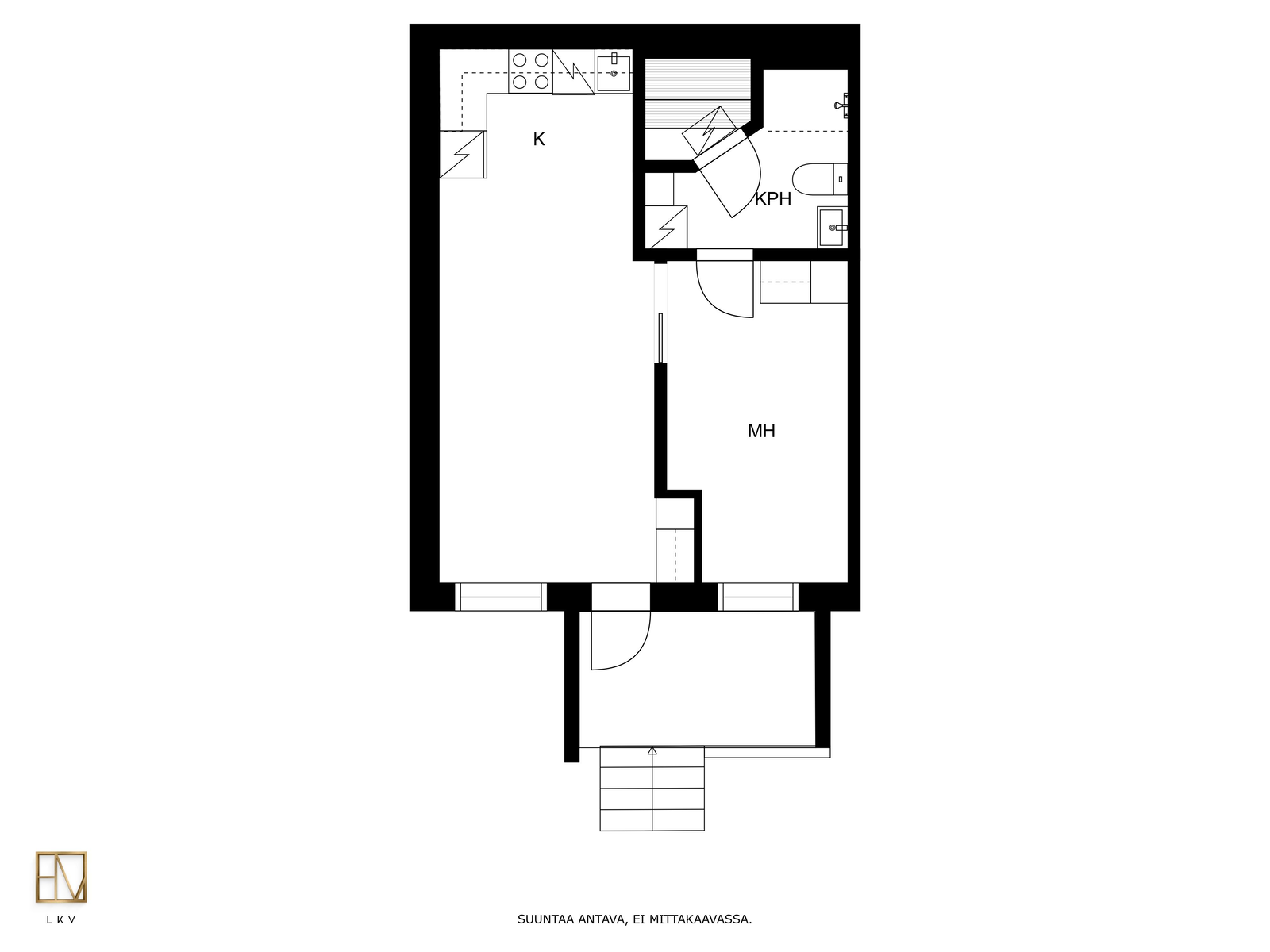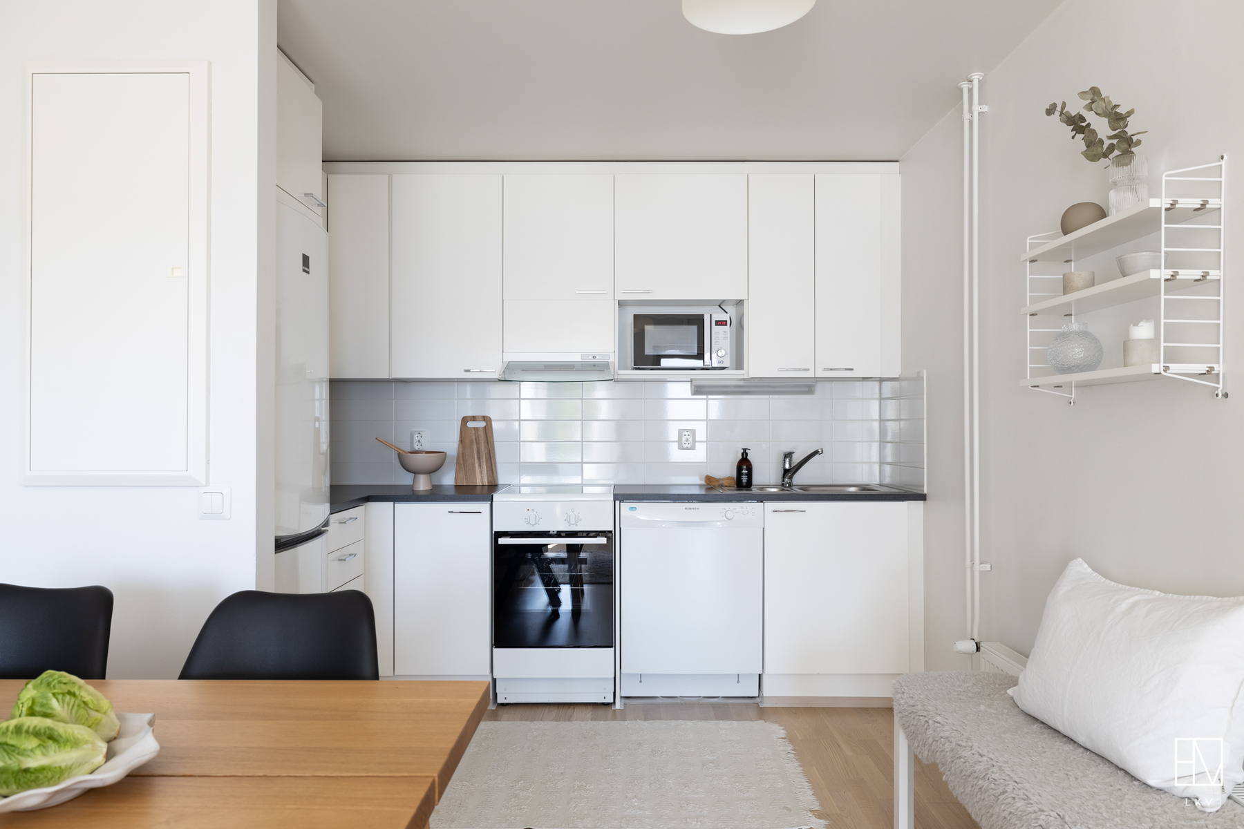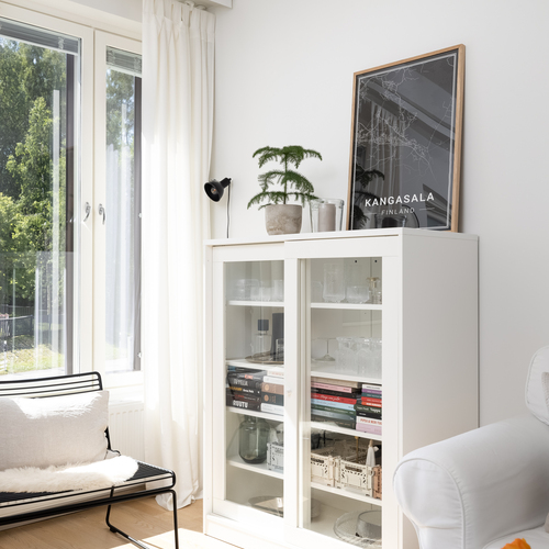Tämän kodin pohjaratkaisu on toteutettu todella hyvin ja ilman turhia hukkaneliöitä. Keittiö ja olohuone luovat nykyaikaisesti yhtenäisen tilan. Keittiössä on hyvin kaappi- ja laskutilaa sekä paikka ruokapöydälle. Makuuhuone on varsin hyvän kokoinen ja sinne saa tarvittaessa mahtumaan työpisteen. Kylpyhuoneessa on paikka pesutornille ja oma sauna tarjoaa sitä kuuluisaa arjen luksusta.