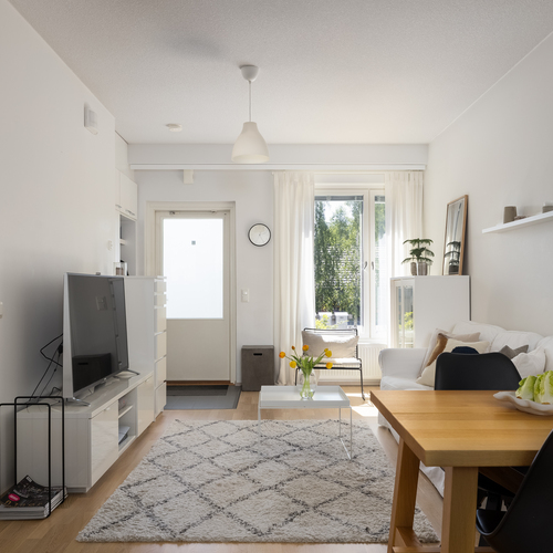 Tämä huoneisto sopii kodiksi niin nuorelle ensiasunnon ostajalle kuin rauhallista ja muuttovalmista kotia etsivälle seniorille. Huoneiston ulko-oven edessä on pieni viihtyisä katettu terassipiha, joten asuminen on hyvin rivitalossa asumisen kaltaista.