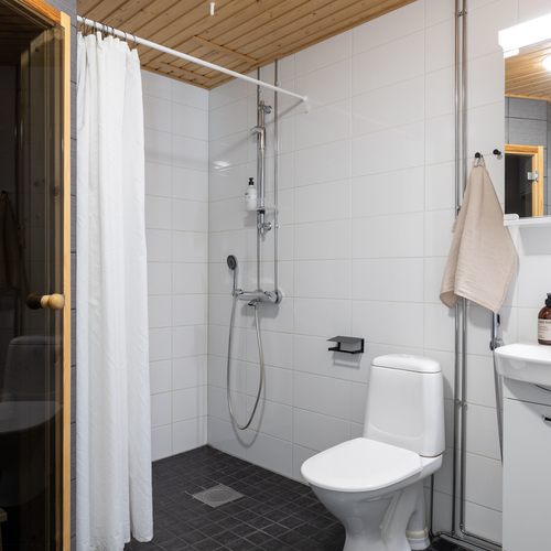 Varusteet: pesukoneliitäntä, lattialämmitys, wc-istuin, suihku