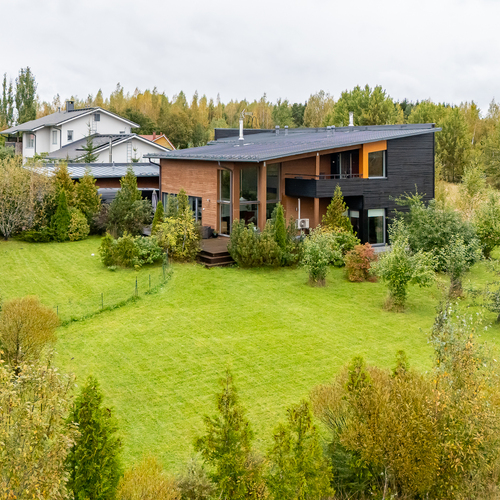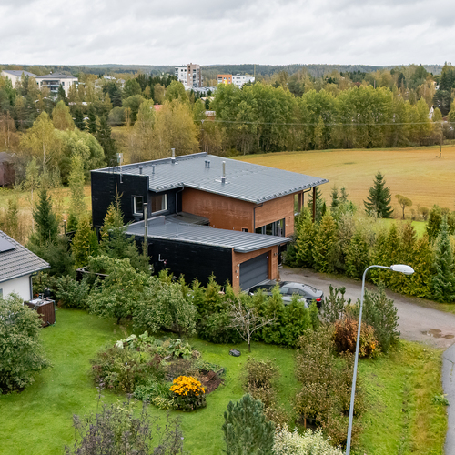 Tervetuloa tutustumaan tähän arkkitehdin taidolla suunnittelemaan, vuonna 2009 valmistuneeseen kaksitasoiseen omakotitaloon Hämeenkyrössä! Tämä tumma, moderni pulpettikattoinen koti hurmaa jo ensisilmäyksellä. Tyylikäs arkkitehtuuri, huikeat sisätilat ja luonnonläheinen ympäristö yhdistyvät toimivaksi ja viihtyisäksi kokonaisuudeksi.