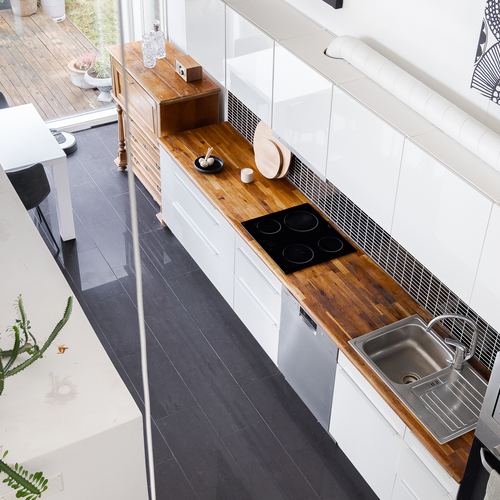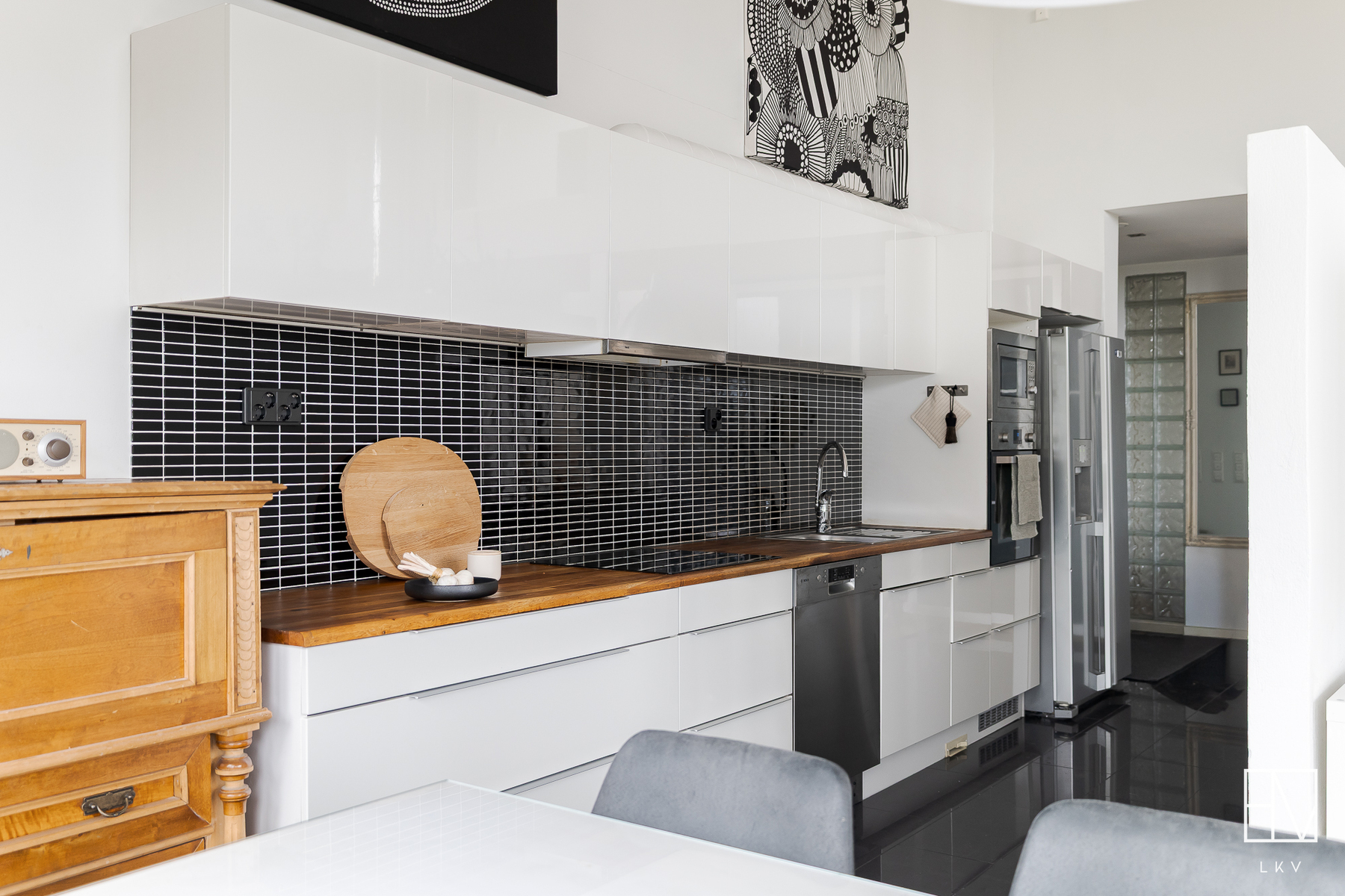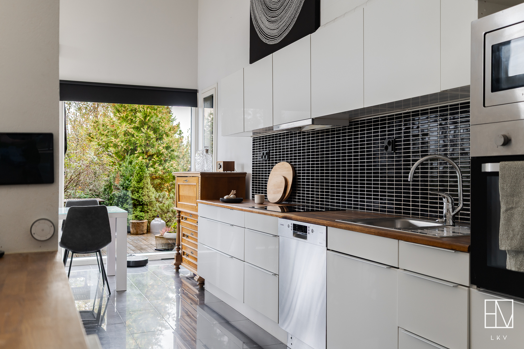 VARUSTUS: kaapistot, jääkaappi/pakastin jääpalatoiminnolla, induktioliesi, liesituuletin, astianpesukone, erillisuuni, kiinteät valaisimet.
