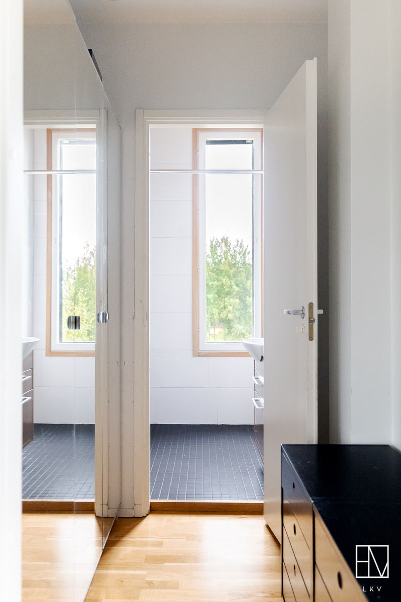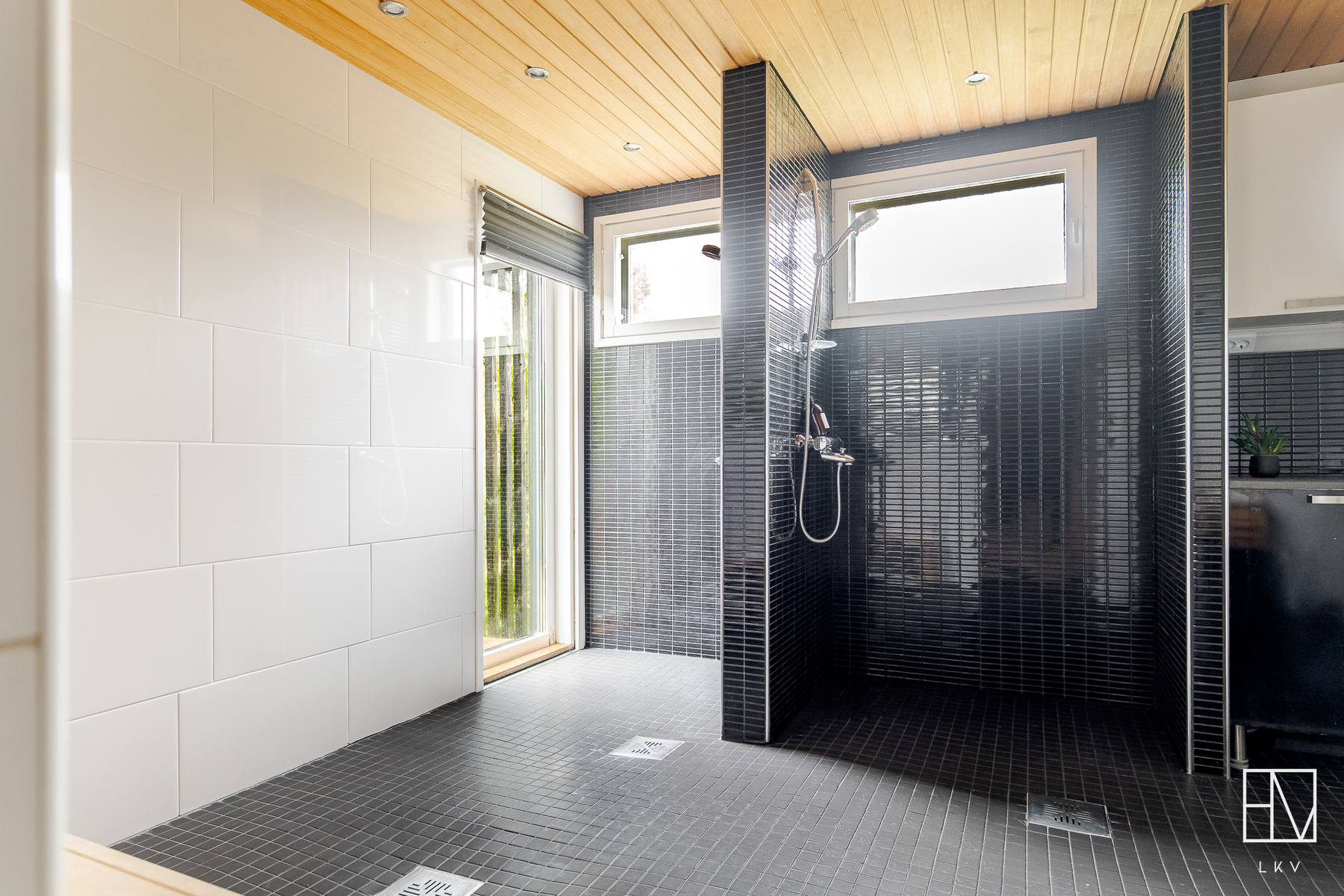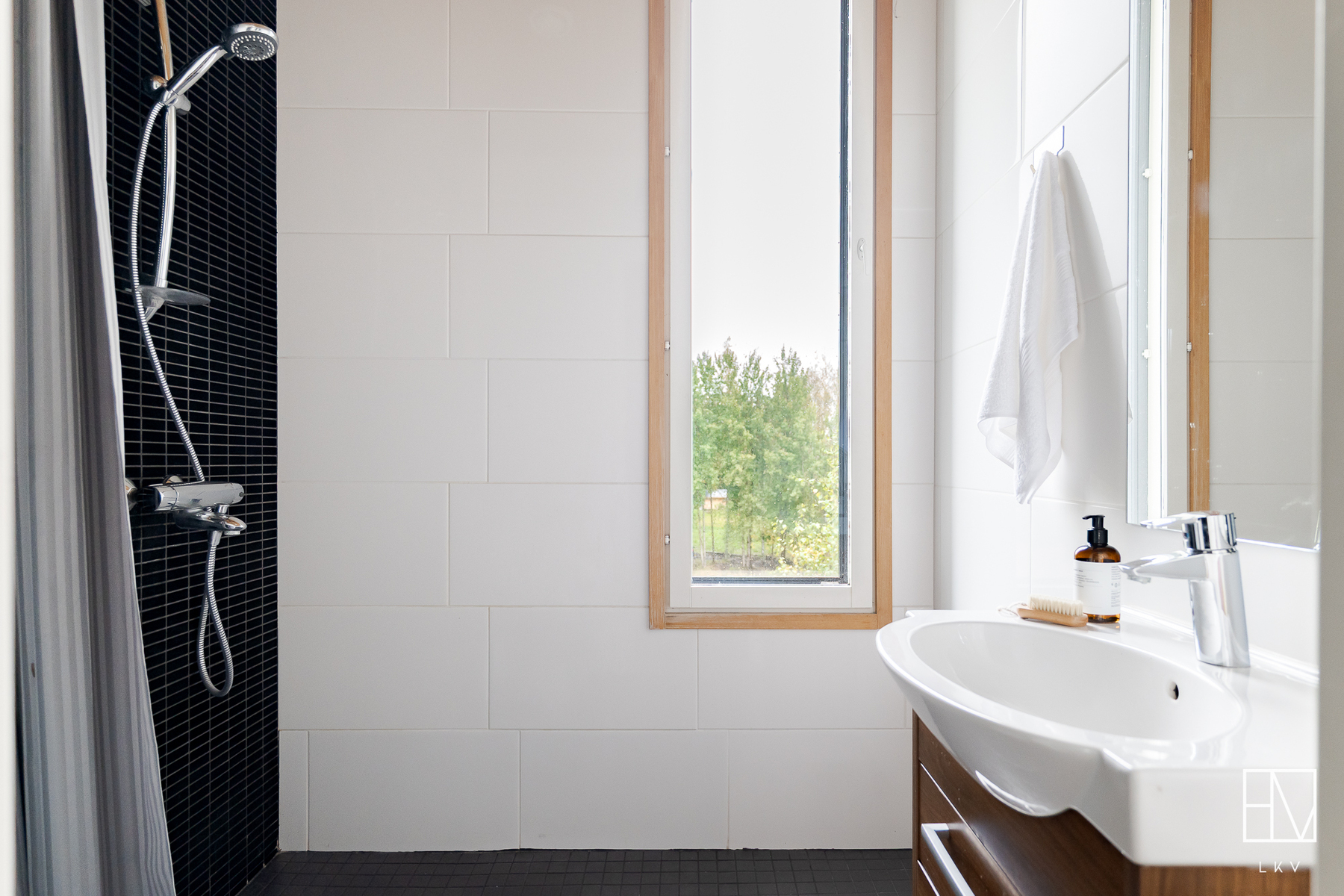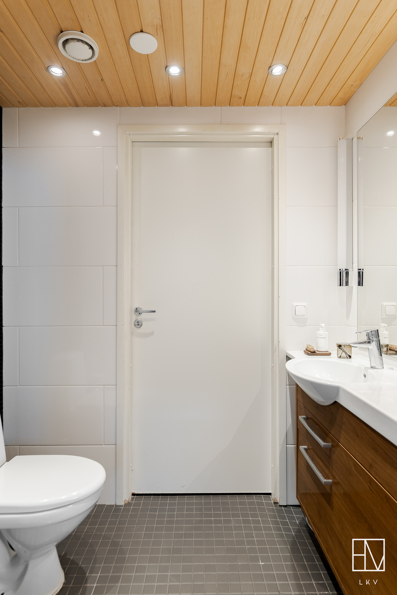 VARUSTUS: 2 x suihku, pesukoneliitäntä, kaapistot, paikka pesutornille. Käynti ulos terassille, jossa on palju.