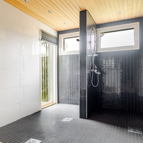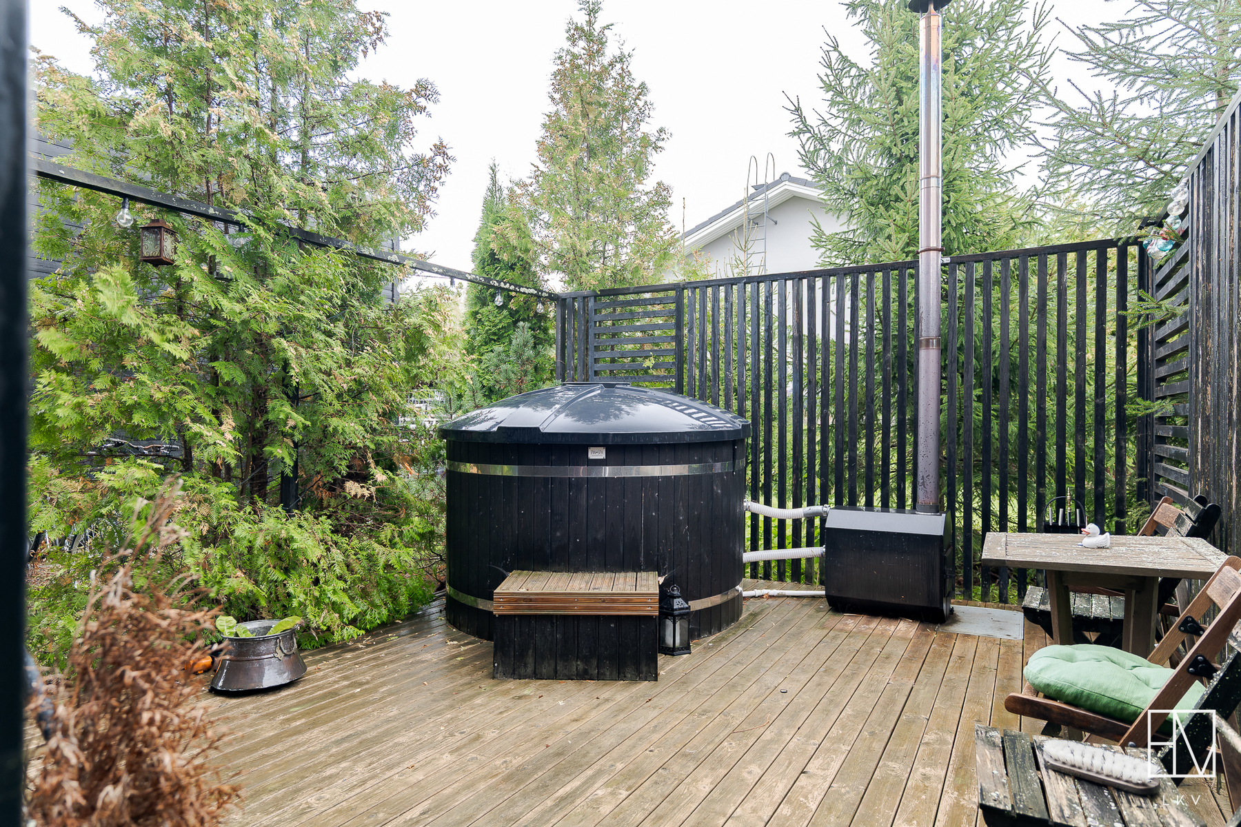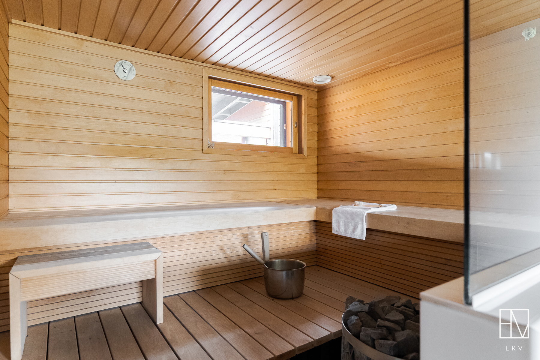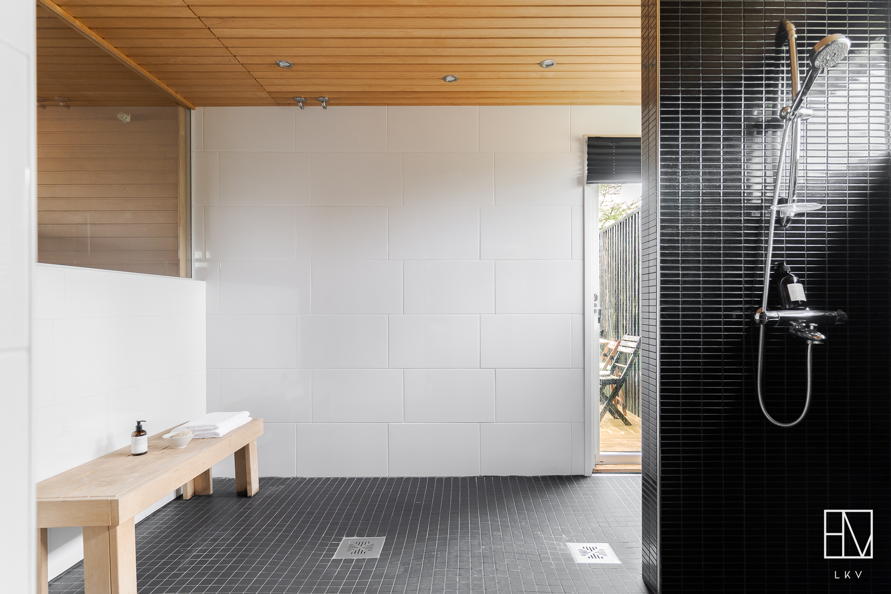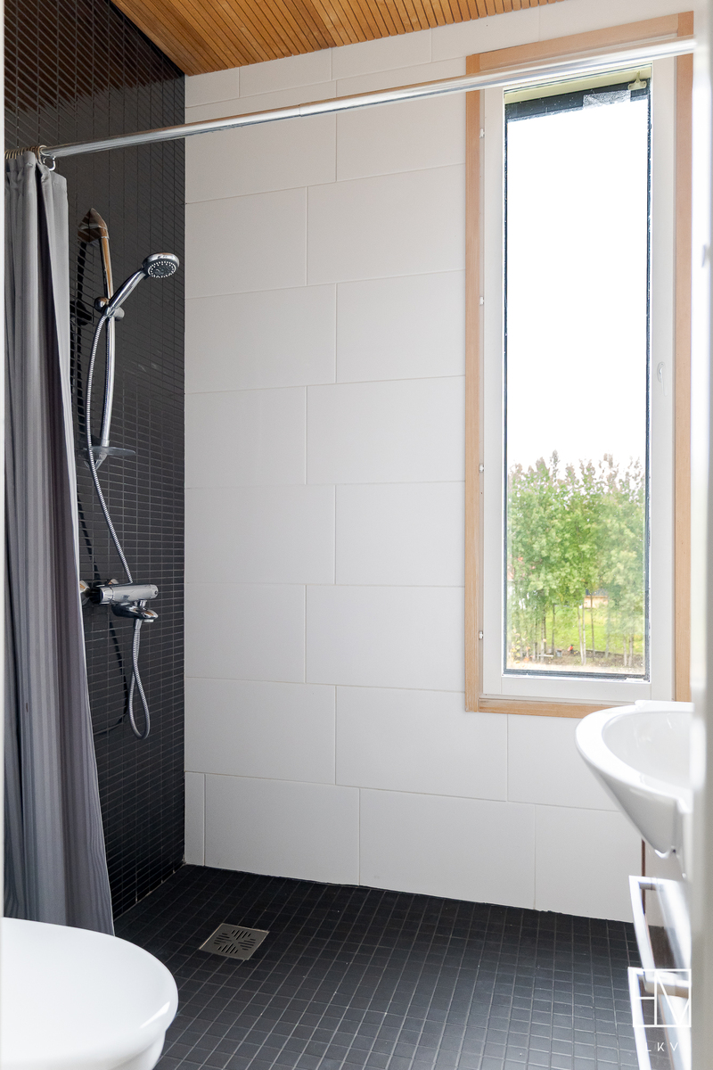 VARUSTUS: 2 x suihku, pesukoneliitäntä, kaapistot, paikka pesutornille. Käynti ulos terassille, jossa on palju.