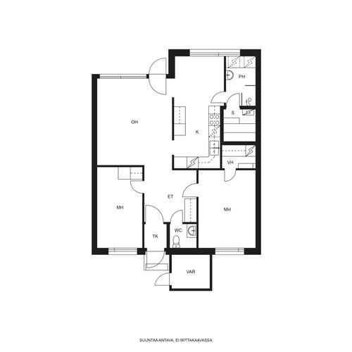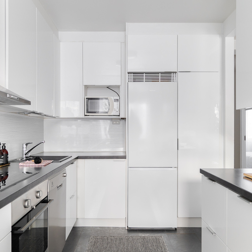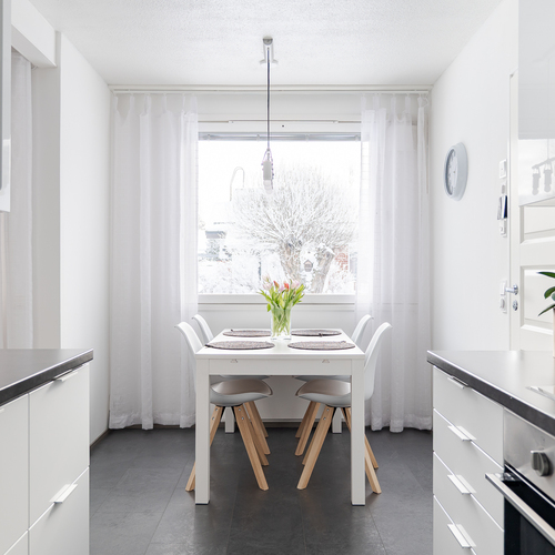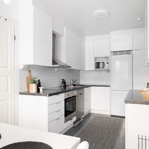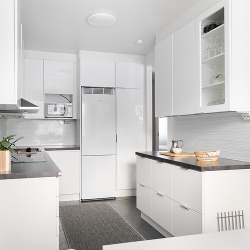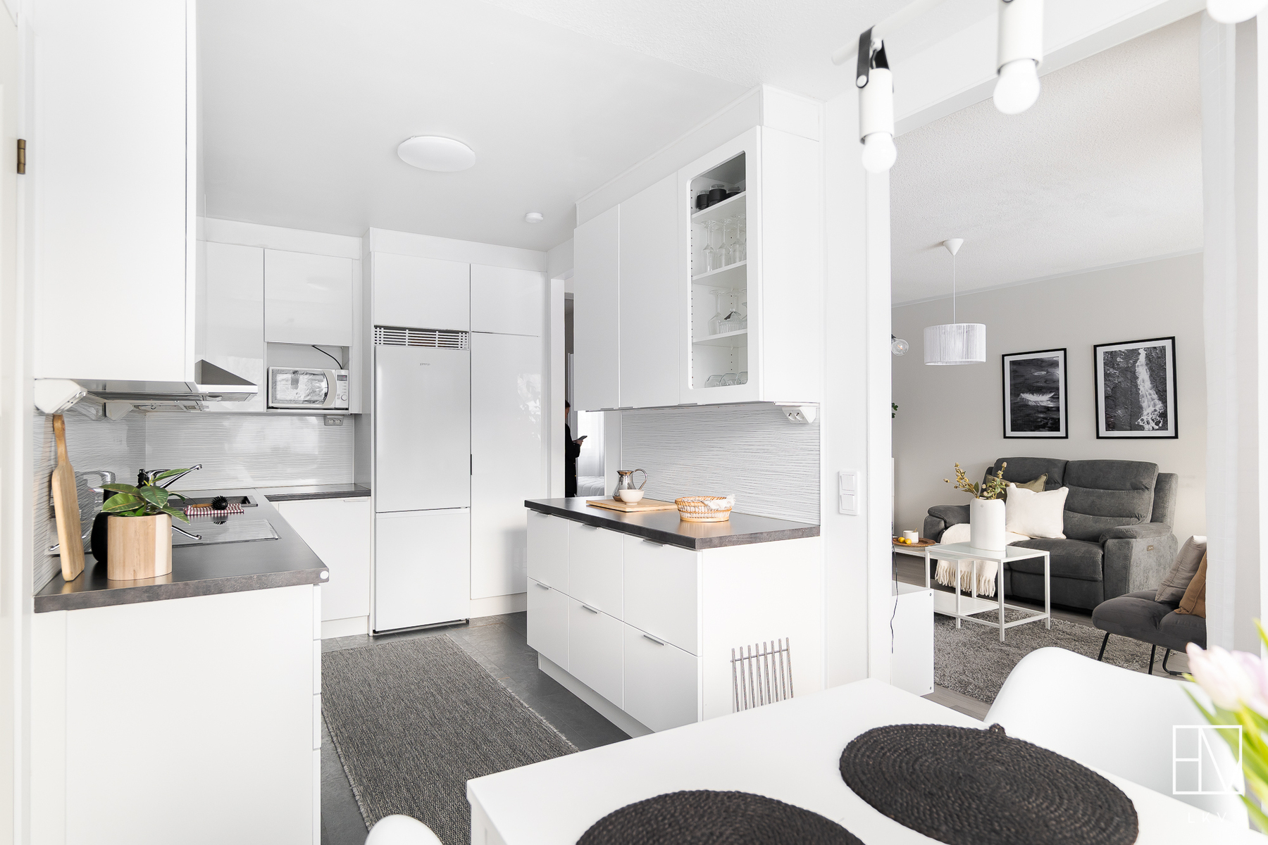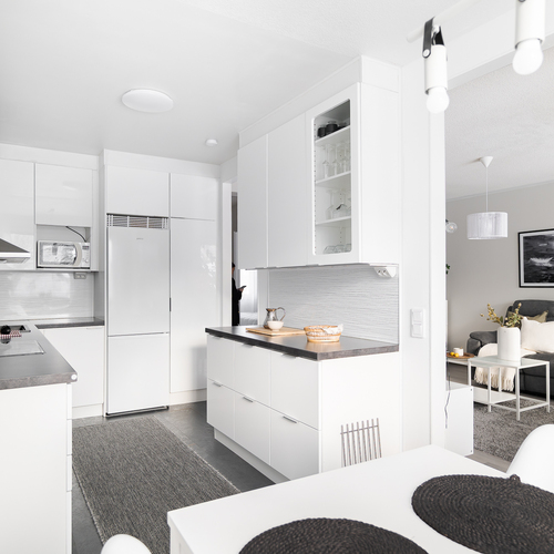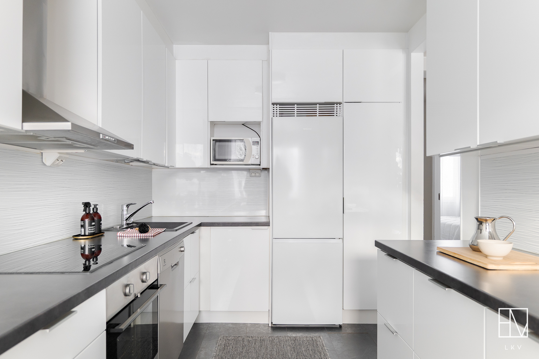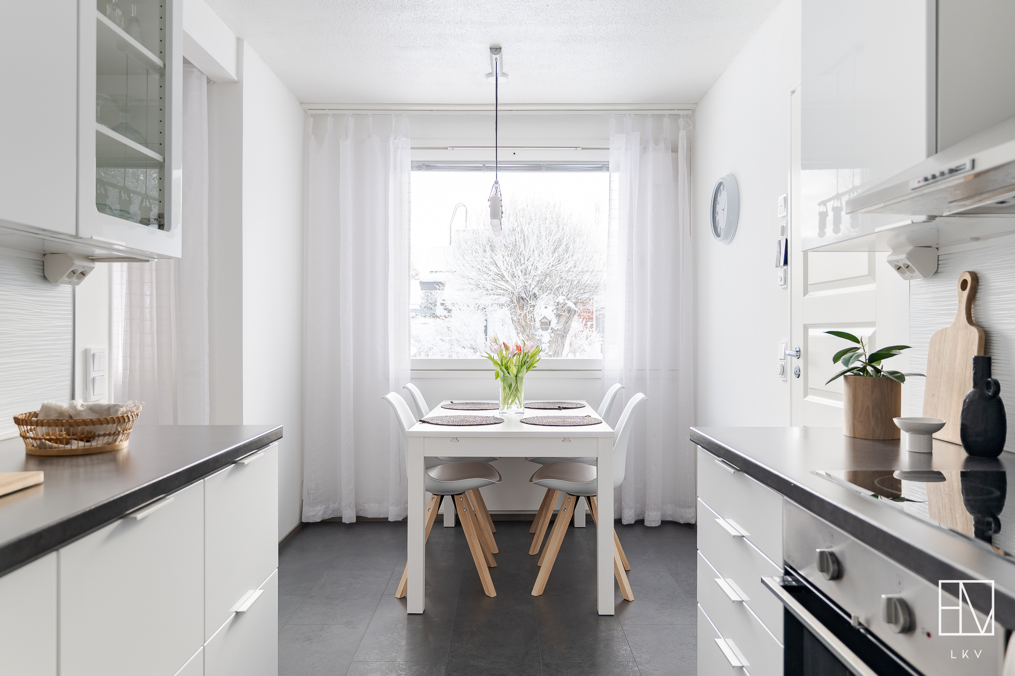 VARUSTUS: jääkaappi/pakastin, astianpesukone, induktioliesi, liesituuletin, erillisuuni, paikka mikroaaltouunille.