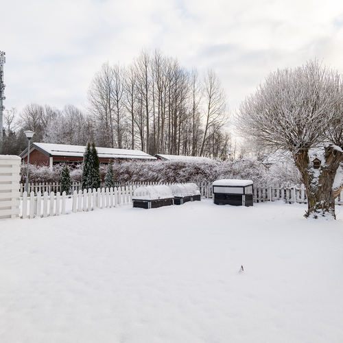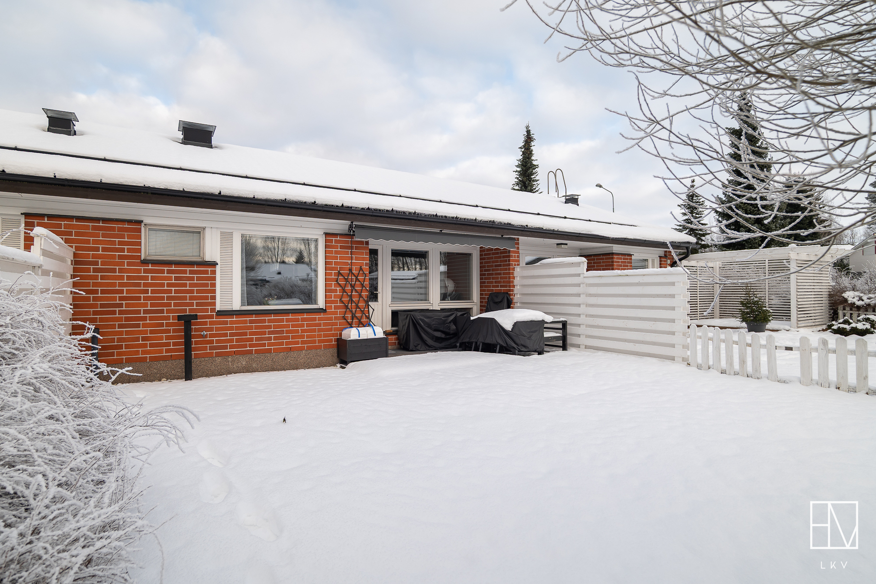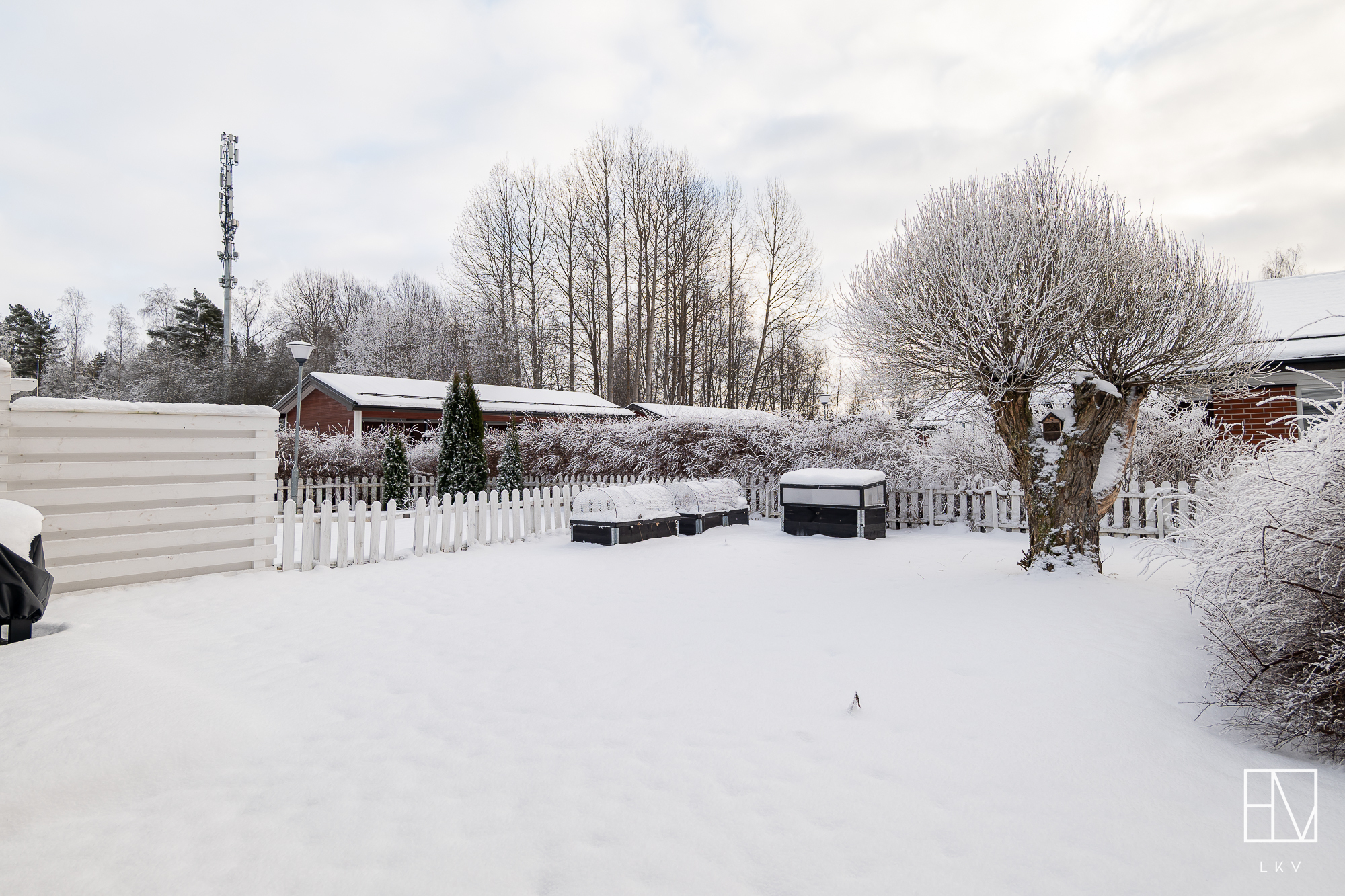 Aurinkoinen takapiha on todellinen helmi, sieltä löytyy kauniit istutukset, valmiit kasvatuslavat mansikalle ja pensasmustikalle sekä erillinen kasvilava esimerkiksi kurkun tai salaatin kasvatukseen tekevät pihasta viihtyisän ja käytännöllisen. Etelään suuntautuva piha ja markiisi mahdollistavat ulkona oleskelun myös kuumina kesäpäivinä.