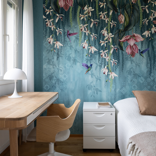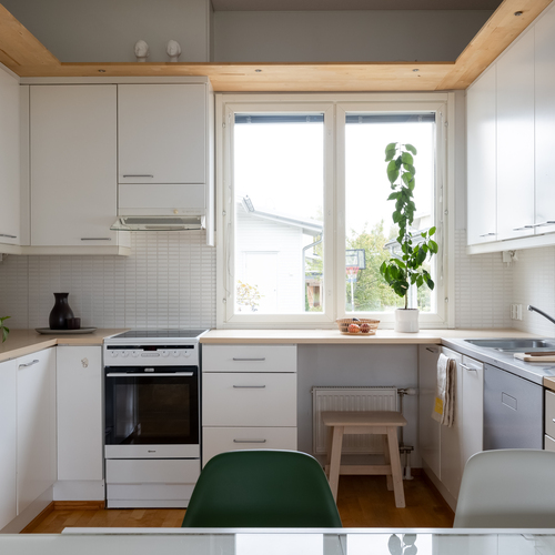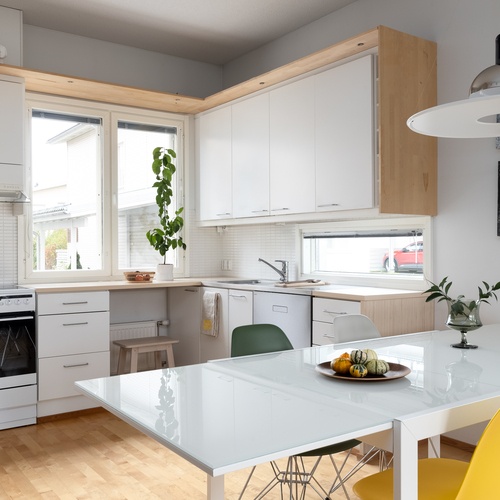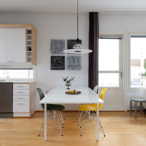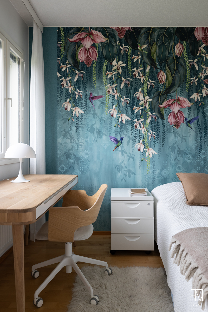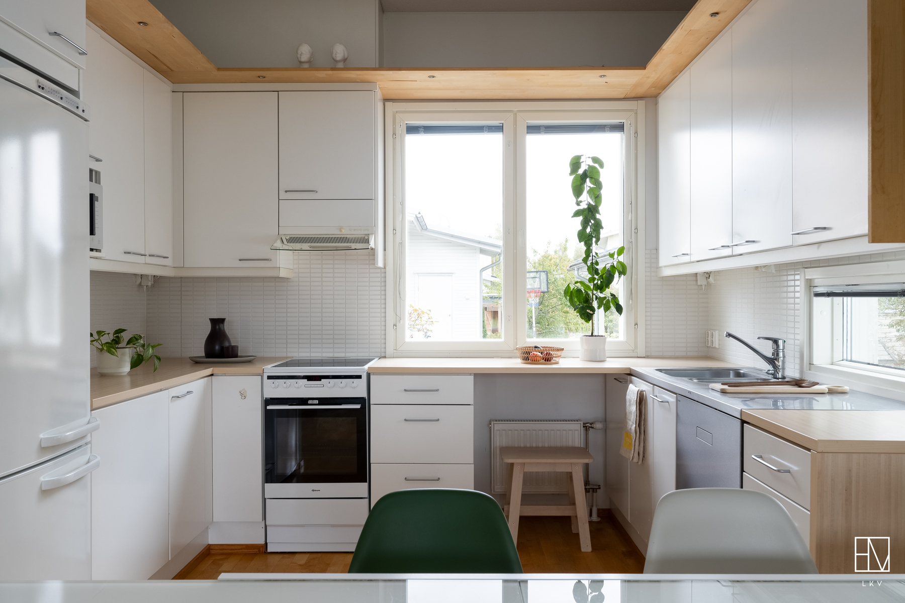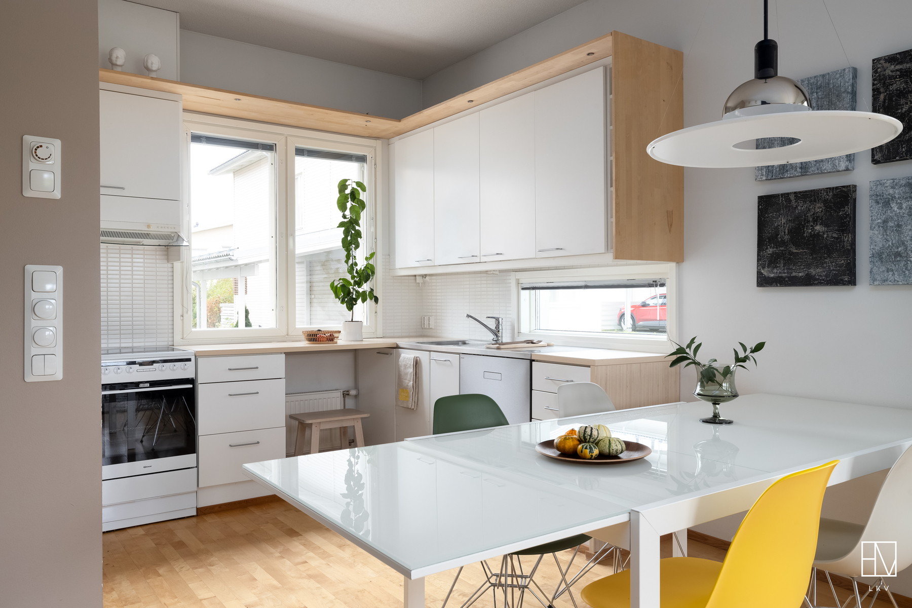 Seinämateriaali: Maalatut seinät, yläkerran makuuhuoneissa osalla seinistä tapetti