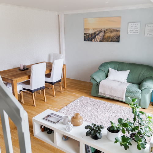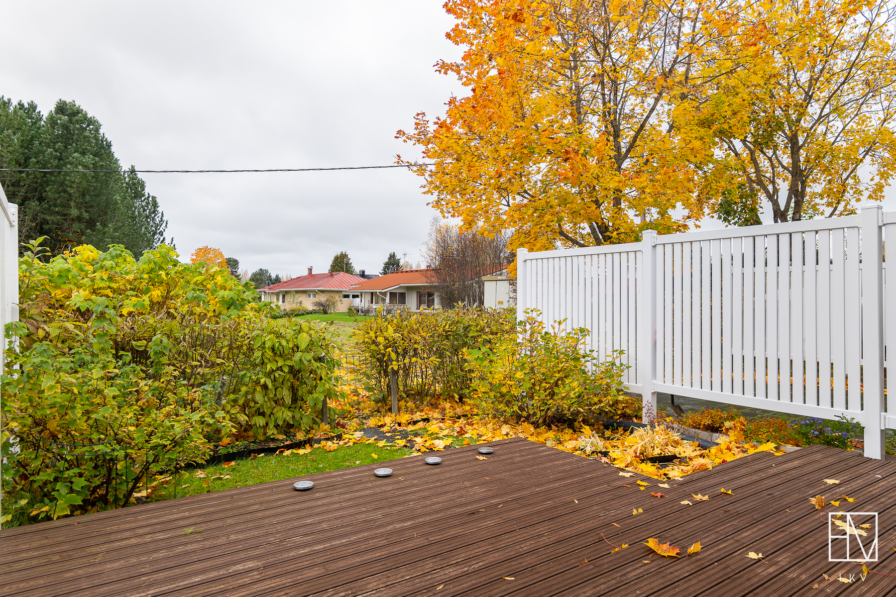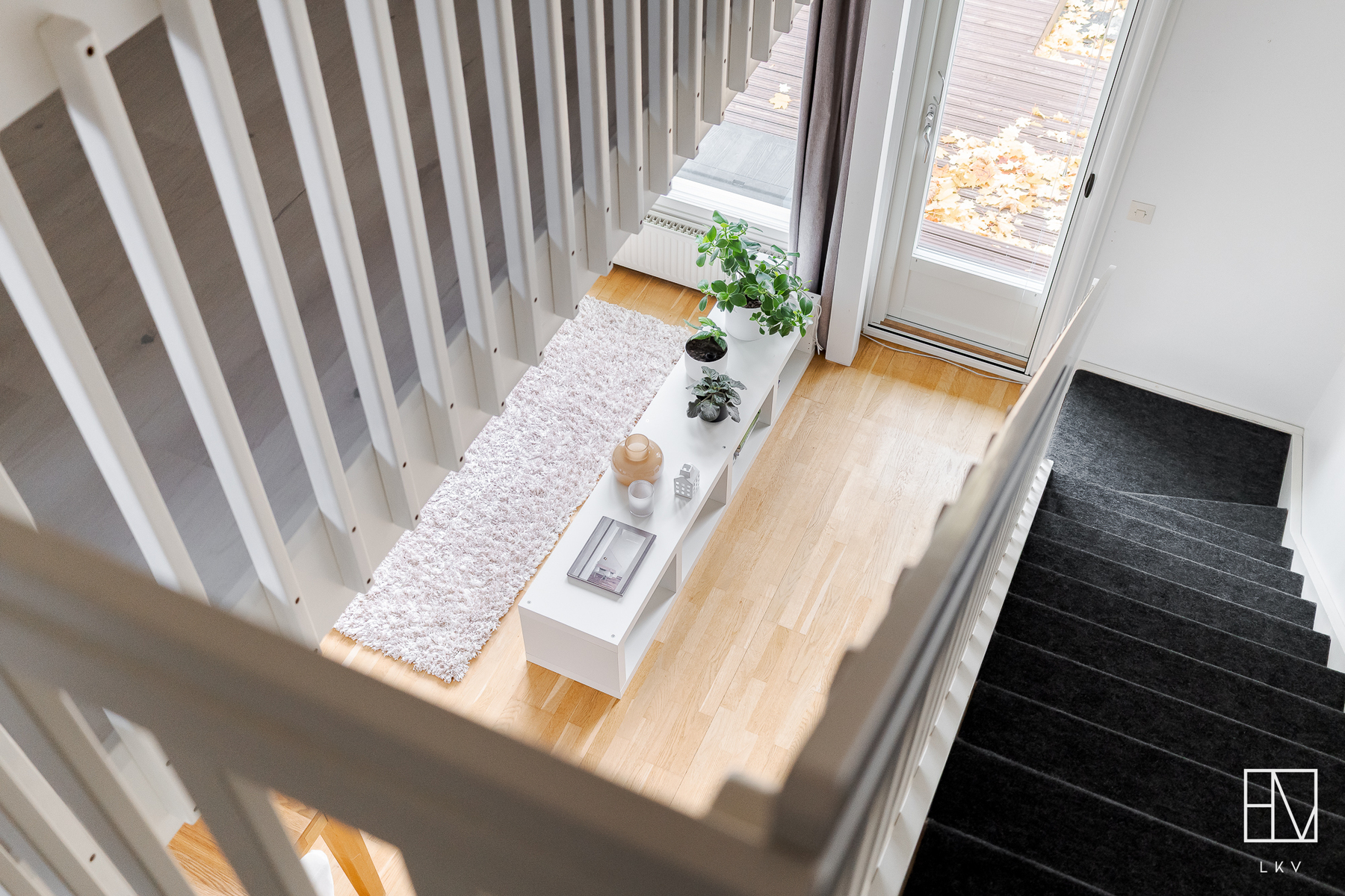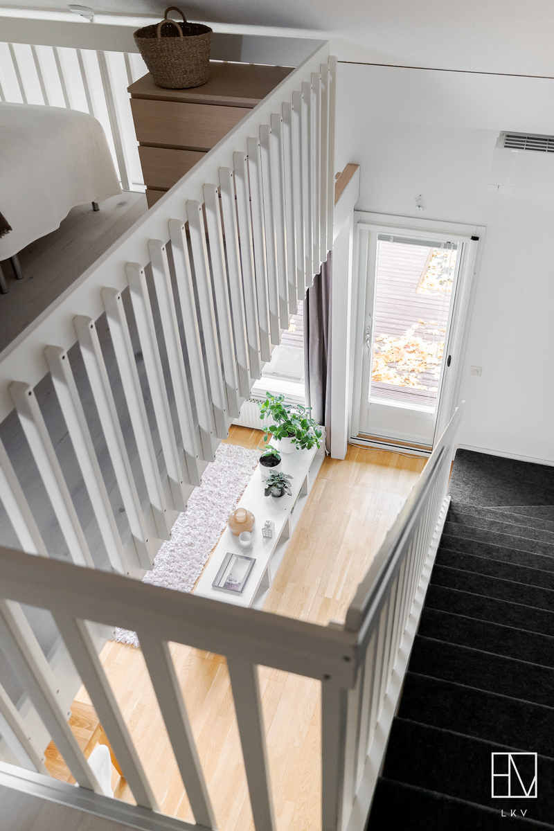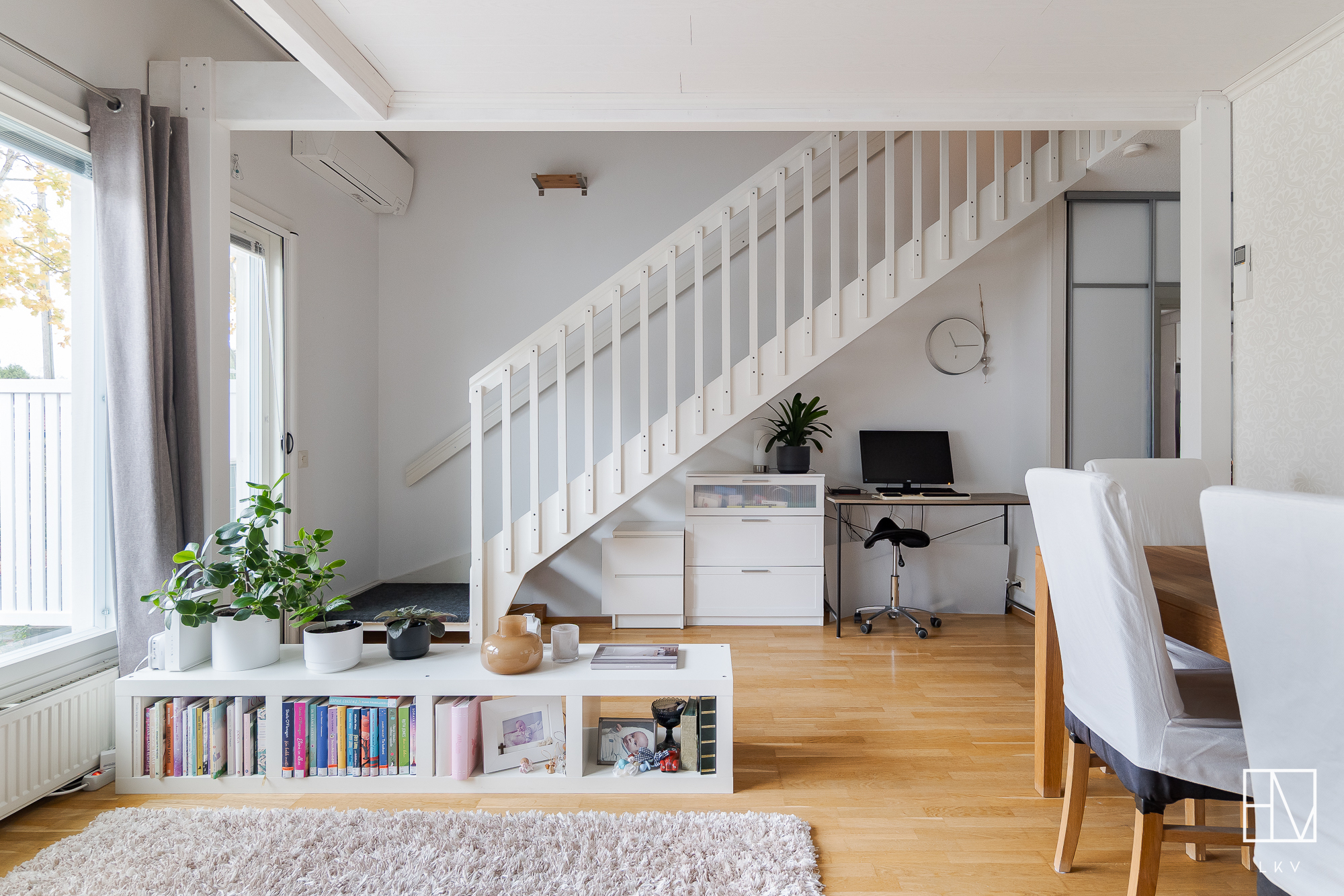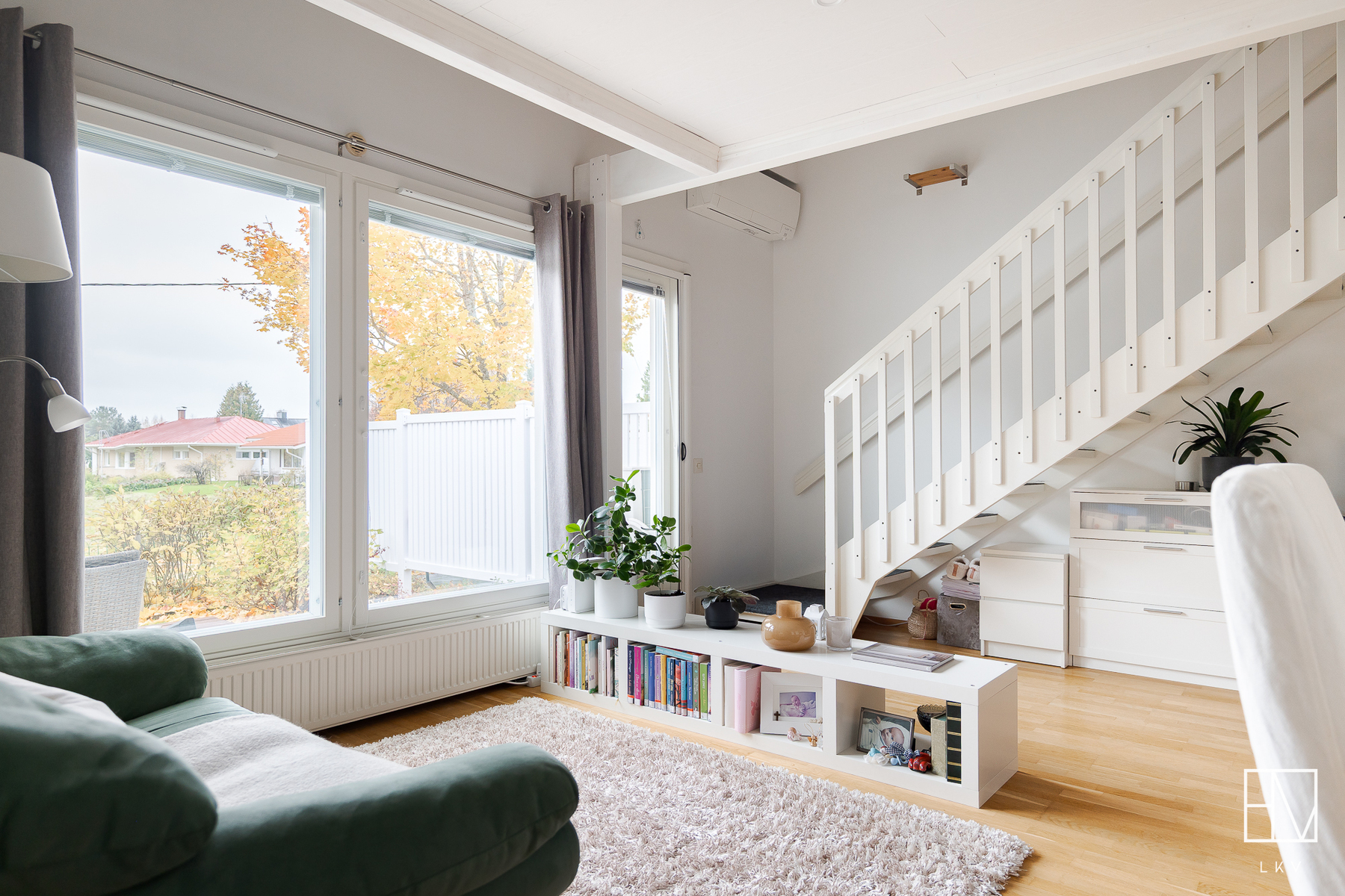 Alakerrasta löydät erillisen keittiön, tilavan olohuoneen sekä erillisen WC:n. Olohuoneesta avautuu käynti aurinkoiselle ja suojaisalle takapihalle – täydellinen paikka rentoutumiseen ja kesäpäivistä nauttimiseen. Olohuoneessa on ihanan ilmava tunnelma, josta nousee kaunis portaikko toiseen kerrokseen.