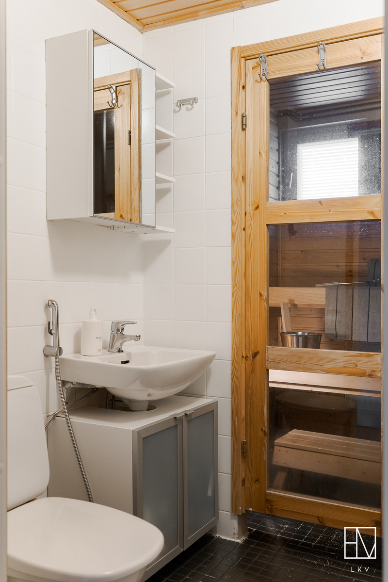 VARUSTUS: wc-istuin, allaskaappi, peilikaappi, bidee-suihku.