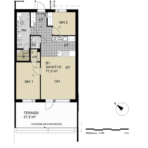Tämä asunto on yhtiön ainoa paritalokolmio.