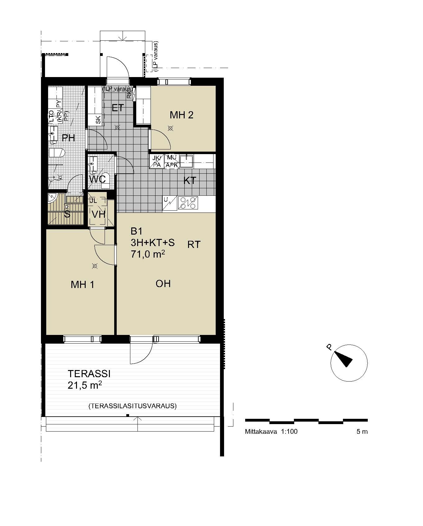 Asunnon oma, aurinkoiseen lounaaseen suuntautuva iso 21,50 m² terassi tuo asuntoon runsaasti hyödynnettävää lisätilaa. Terassilla lasitusvaraus. Terassilta käynti omalle asuntopihalle.