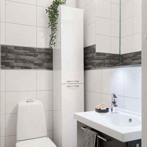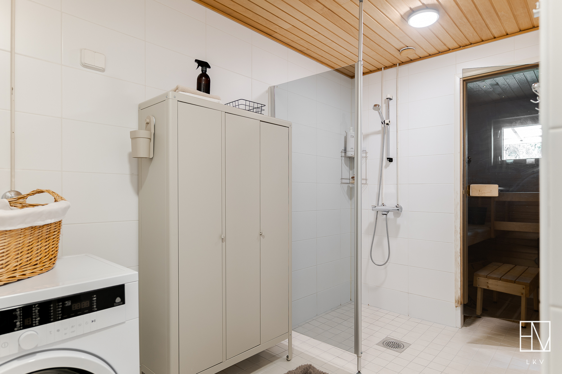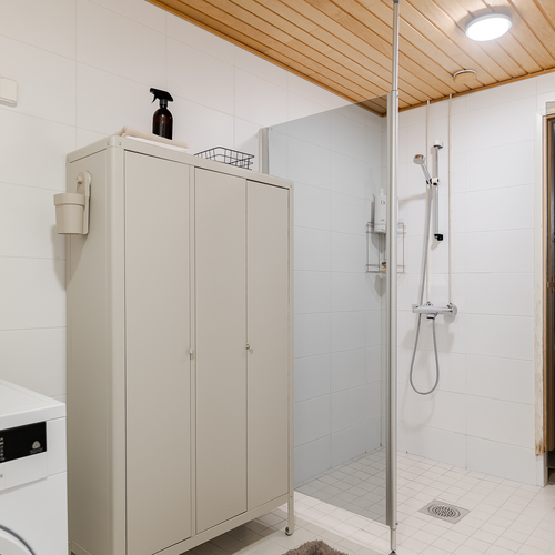 Varusteet: suihkuseinä, pesukoneliitäntä, suihku, kiinteät valaisimet