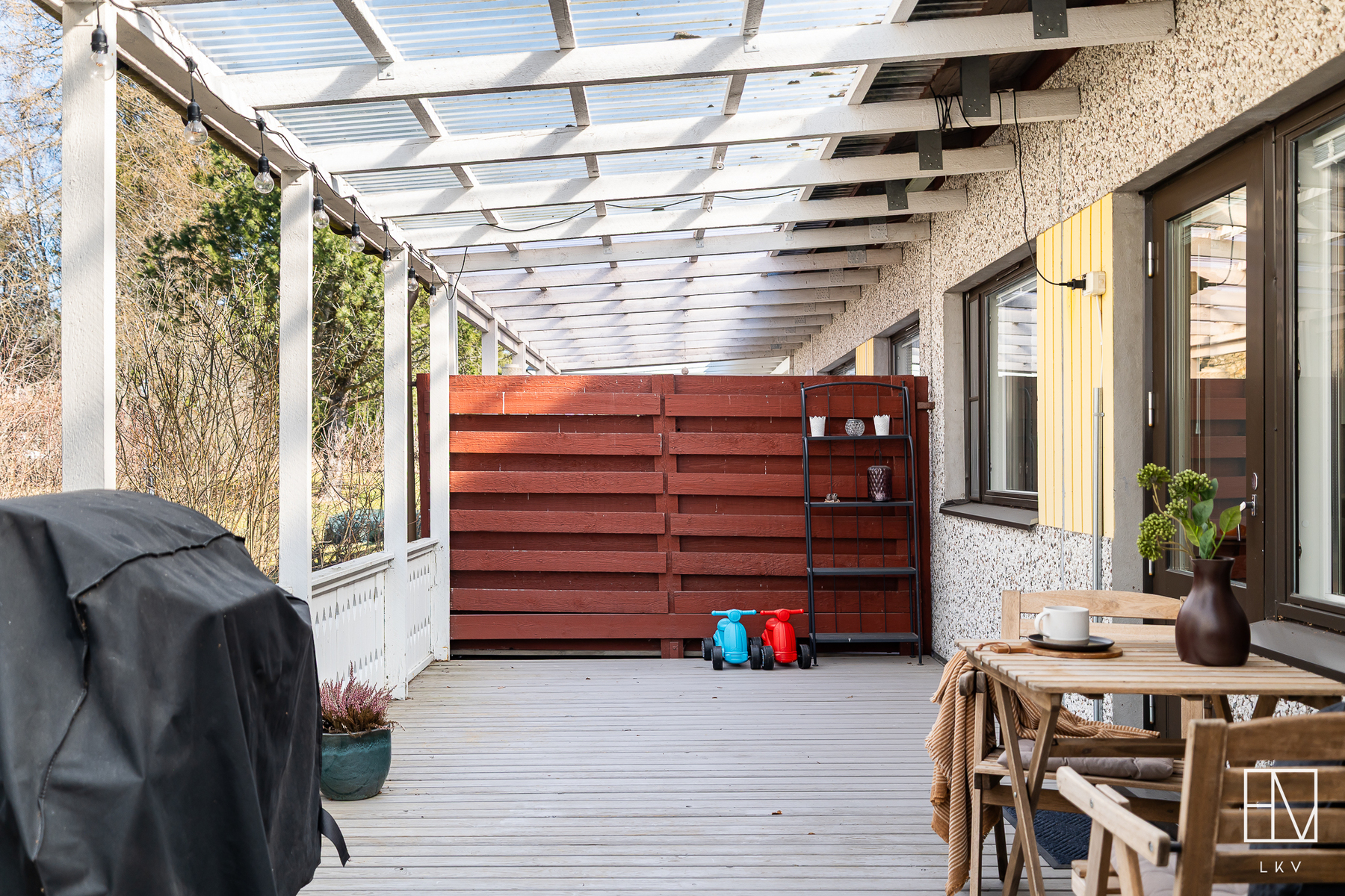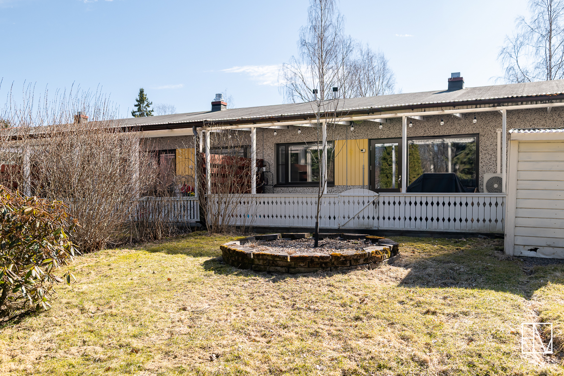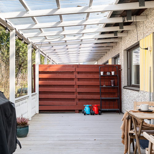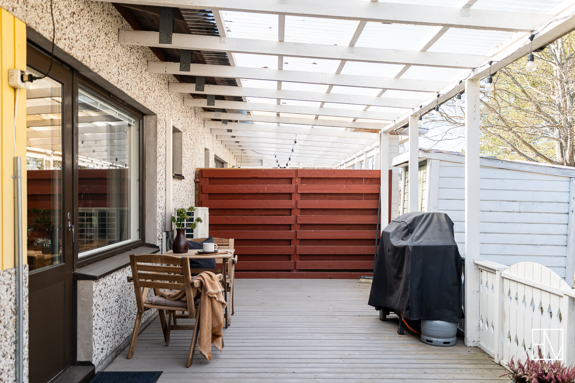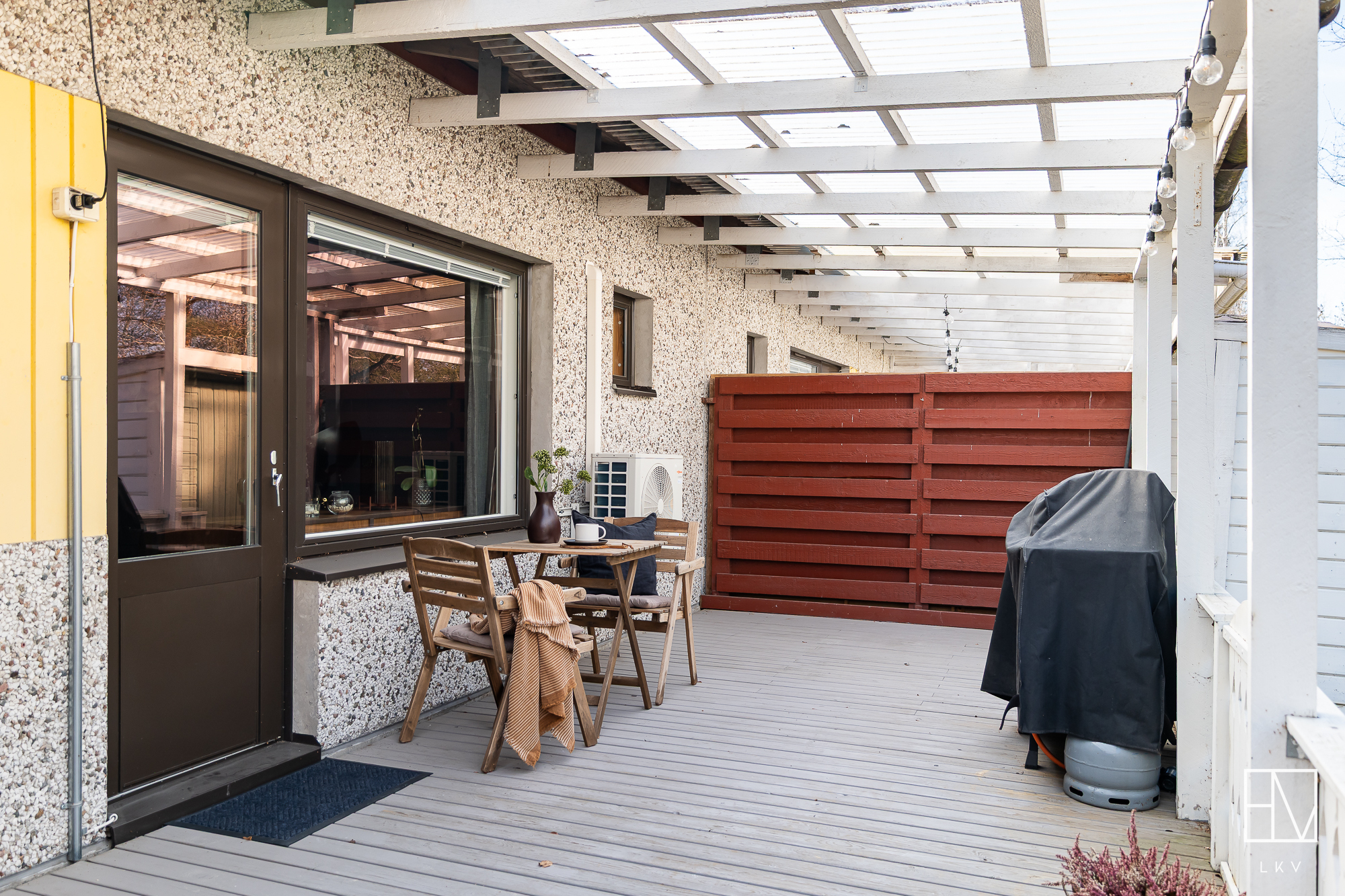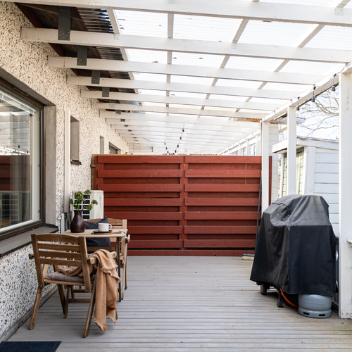 terassi, takapihalla ja etupihalla kylmävarasto