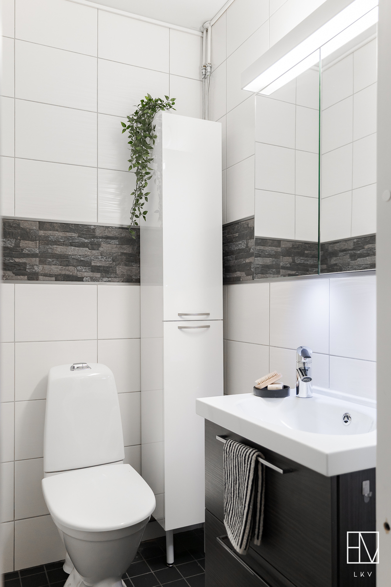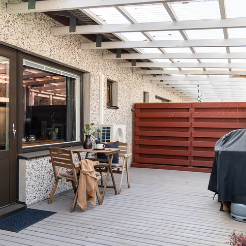 Sisälle astuessasi saavut eteiseen, jossa on säilytystilaa ulkovaatteille. Eteisen molemmin puolin sijaitsevat kodin makuuhuoneet, joista löytyy säilytystilaa niin kaapein, että vaatehuoneen ansiosta. Lattioita koristavat siistit laminaatit ja seiniin on valittu kauniit maalien sävyt. Kodin erillinen wc on remontoitu tyylikkäästi vuonna 2018 ja kylpyhuoneosasto vuonna 2014. Oma sauna tarjoaa mukavat löylyt arjen lomassa ja takapihan terassille pääset viilentymään löylyjen päätteeksi.