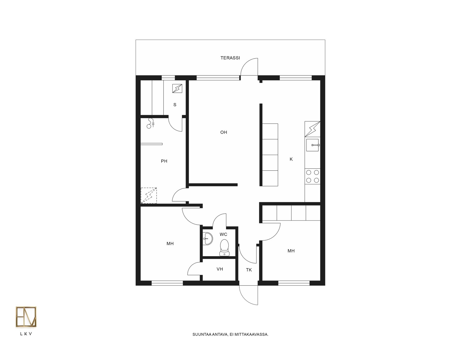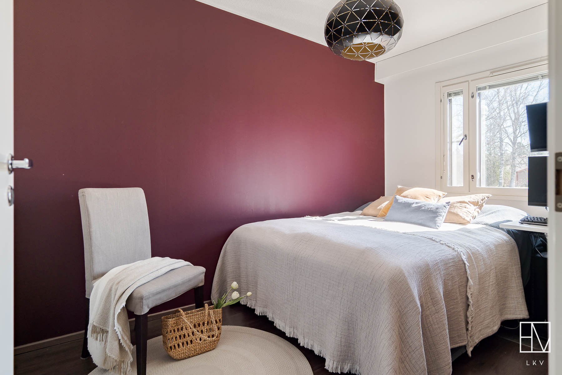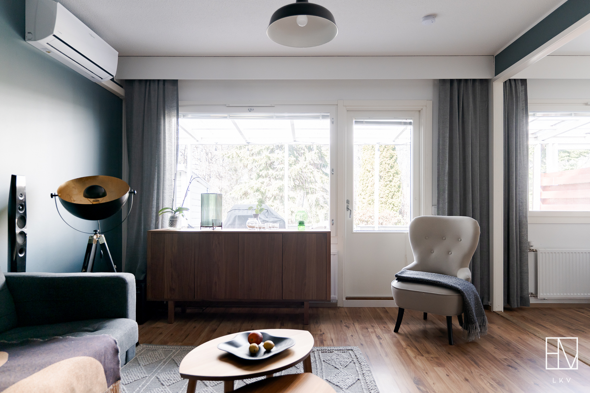 Varusteet: kaapistot, sälekaihtimet/rullaverhot, verhotangot, naulakko, kiinteät valaisimet, ilmalämpöpumppu