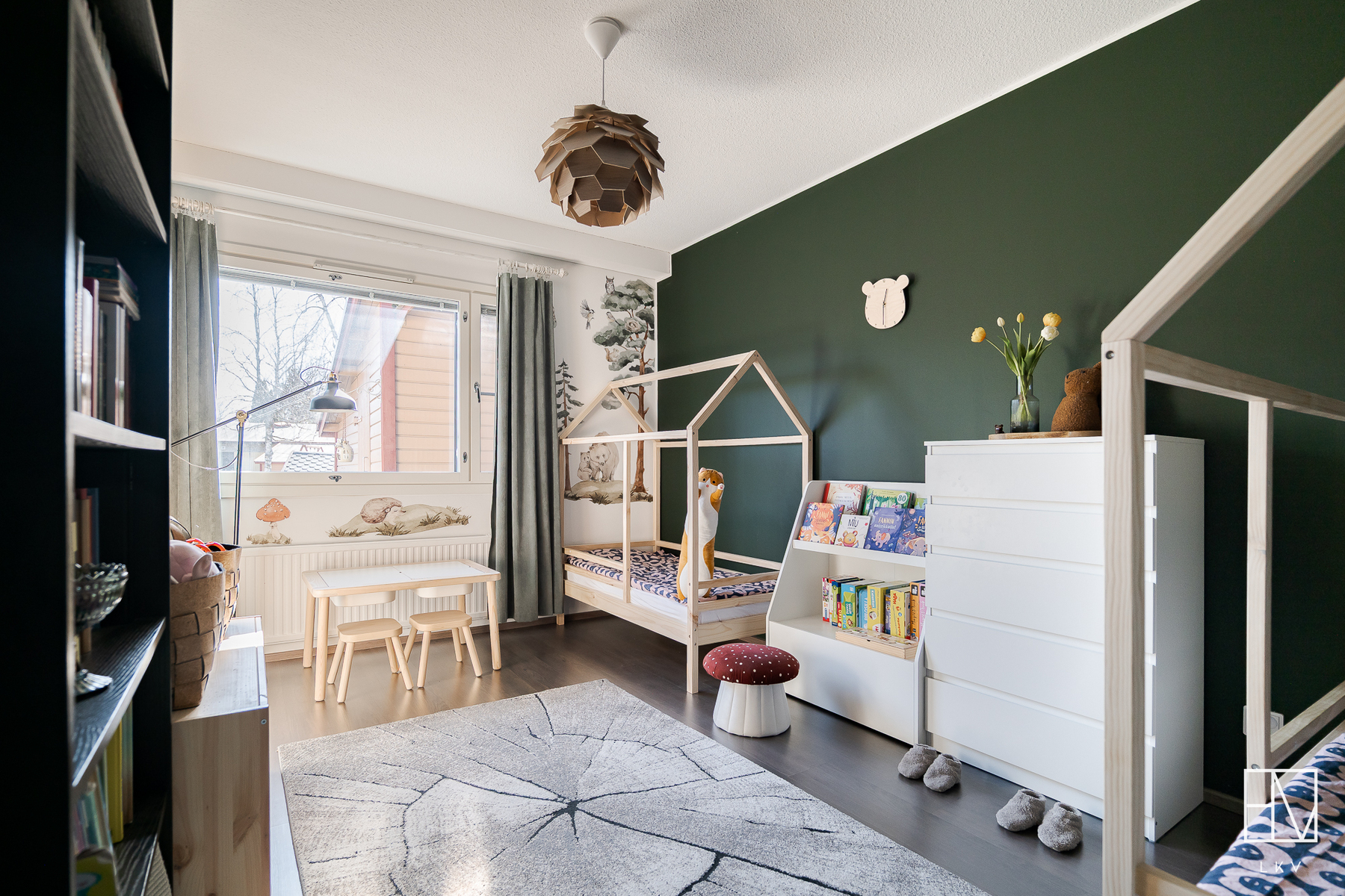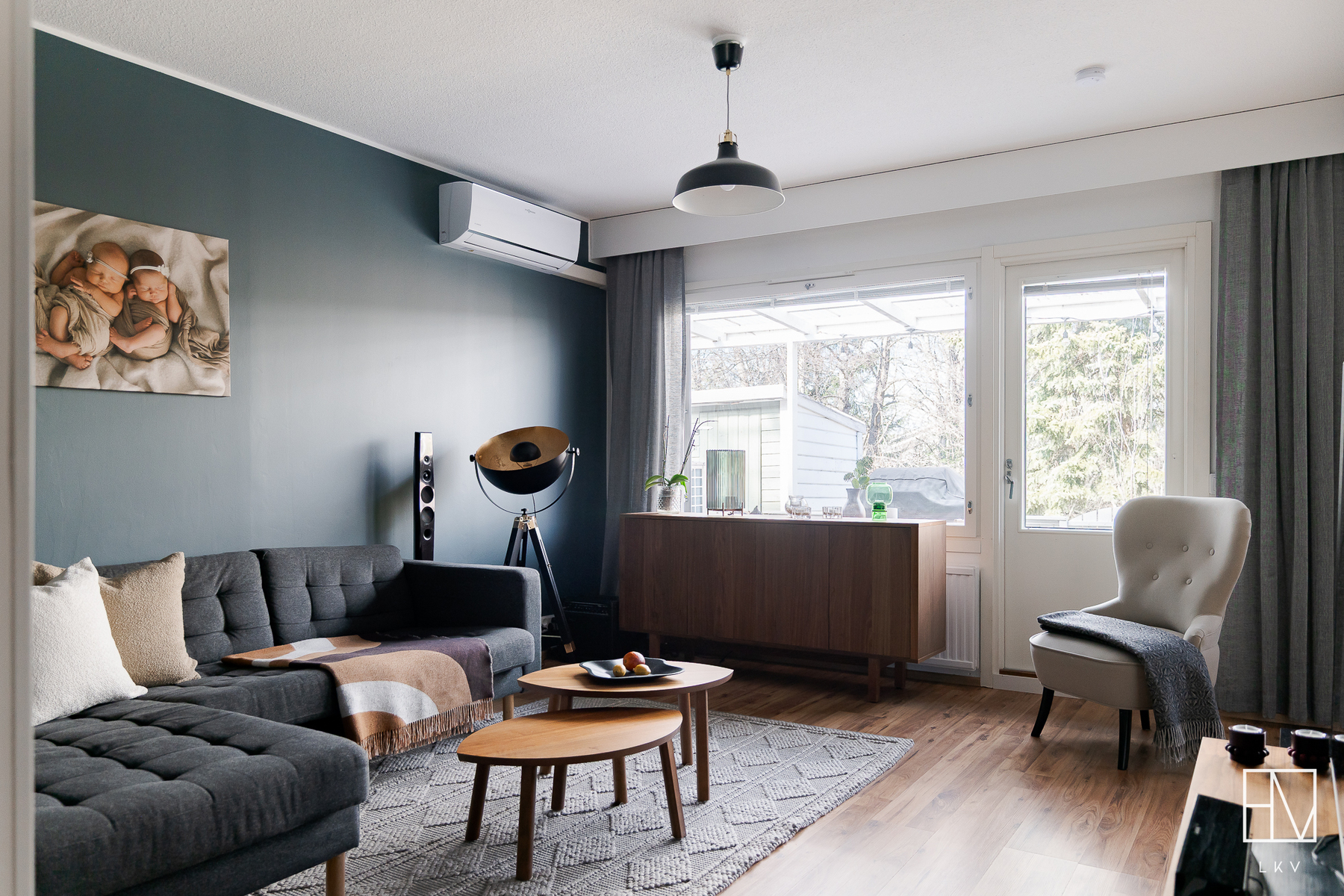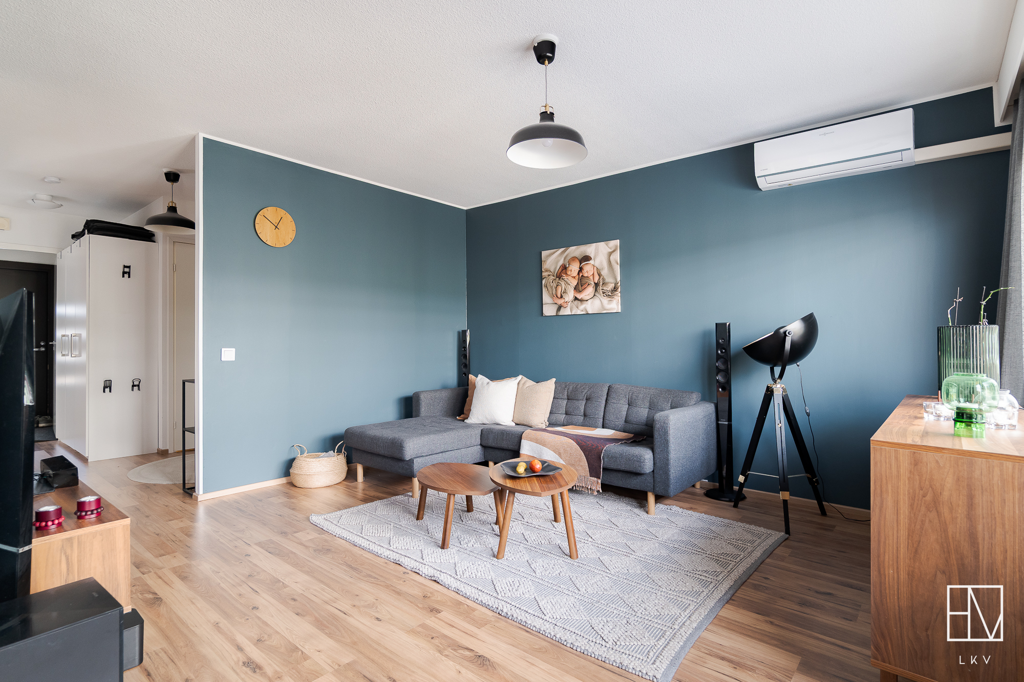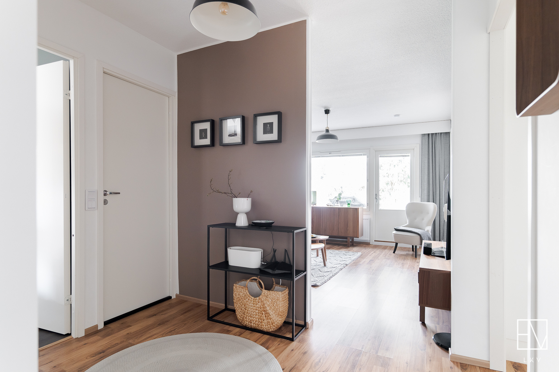 Varusteet: kaapistot, sälekaihtimet/rullaverhot, verhotangot, naulakko, kiinteät valaisimet, ilmalämpöpumppu