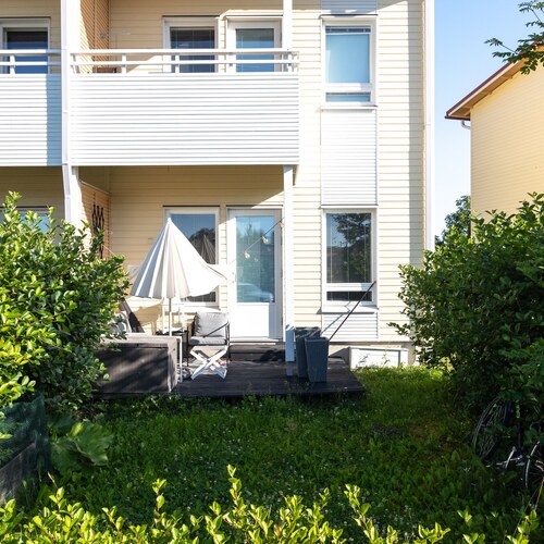 Tässä viihtyisässä kaksitasoisessa kodissa on kaikkiaan 71,50 m² pinta-alaa. Alakerrassa on tilava olohuone, josta kulku takapihan terassille. Lisäksi upea 2021 remontoitu keittiö, jossa mukavasti tilaa ruokailuryhmälle.