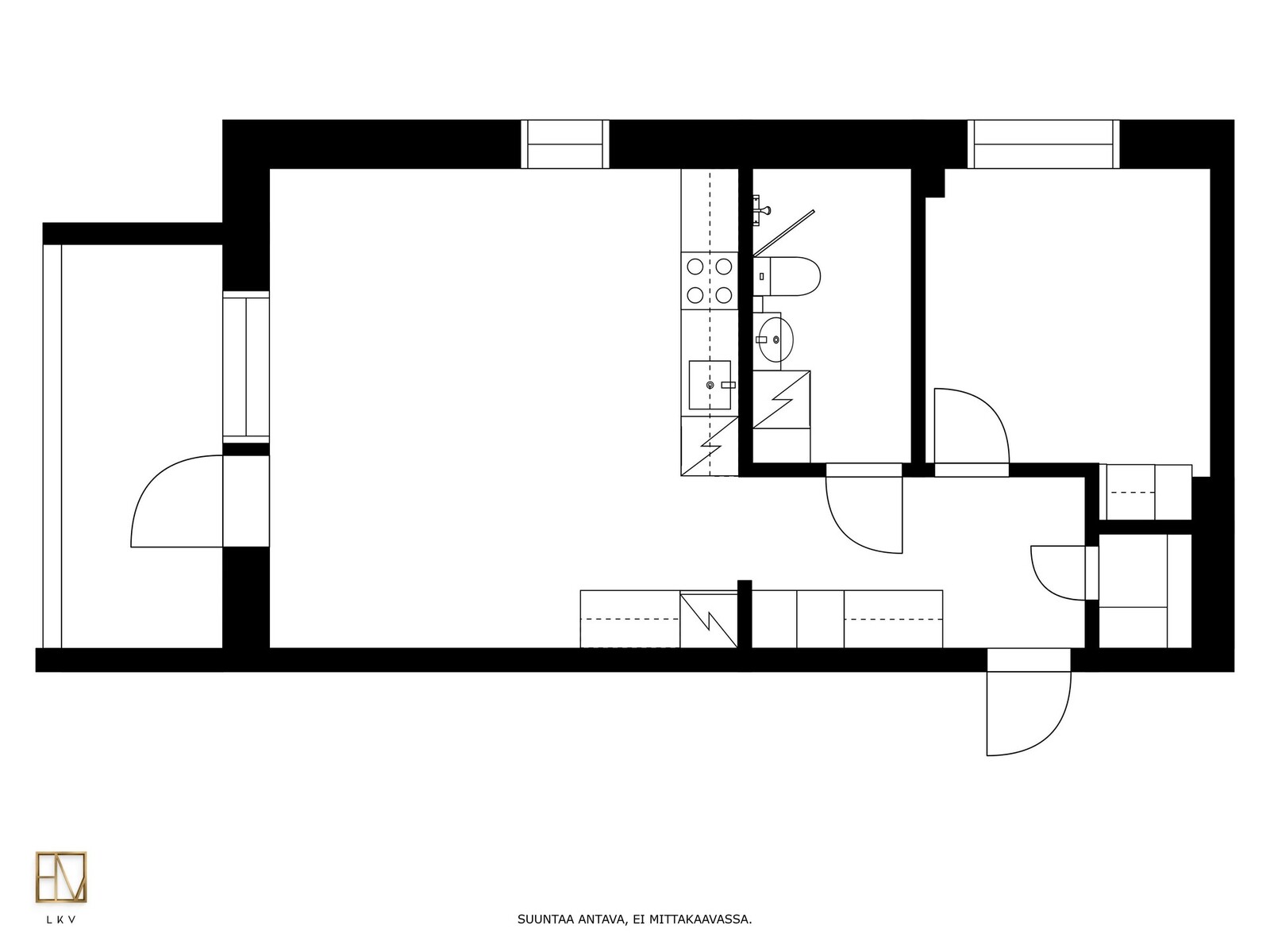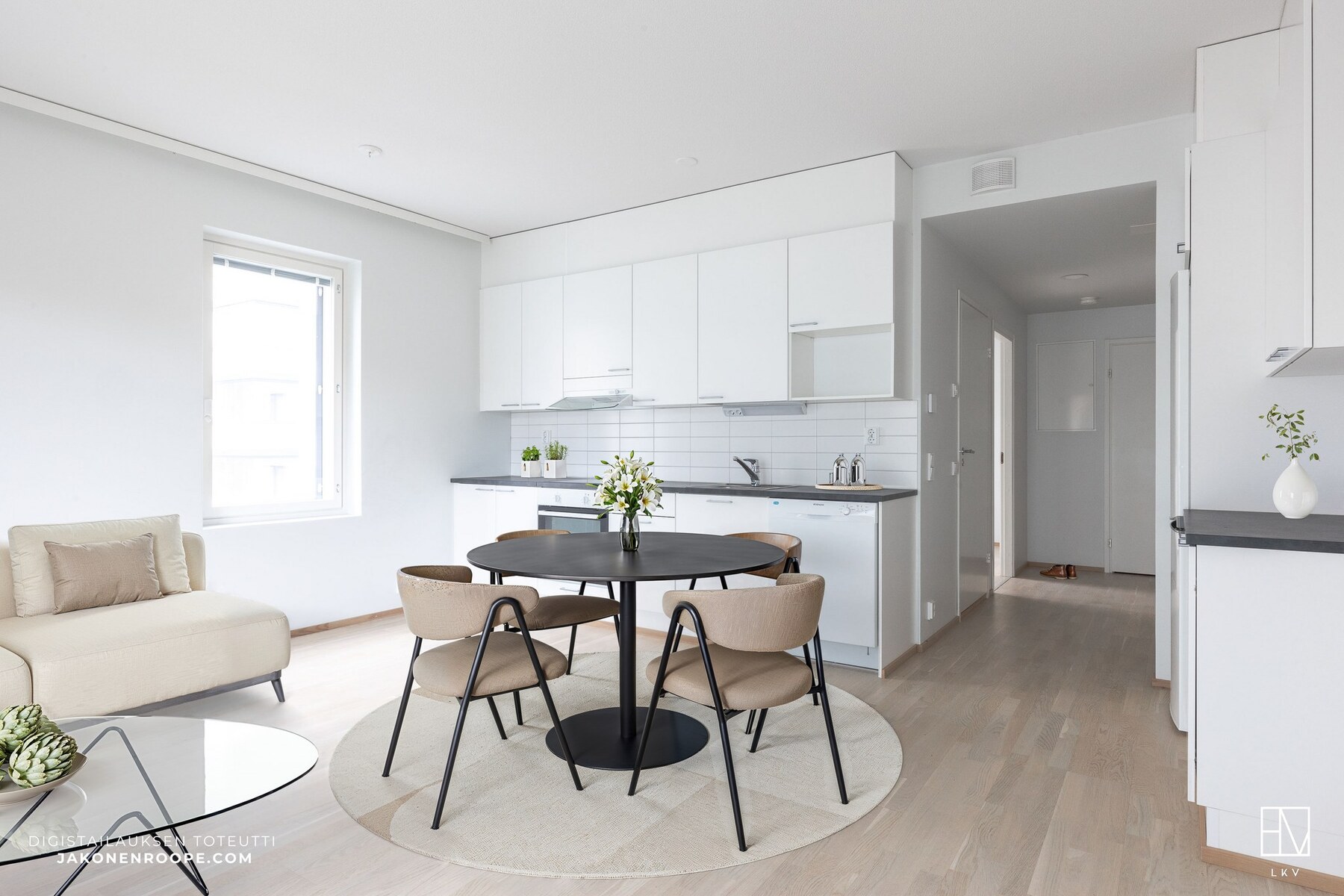 Kolmannen kerroksen 48,50 m² asunto tarjoaa toimivan pohjaratkaisun ja loistavat puitteet joko yksinasuvalle tai pariskunnalle.