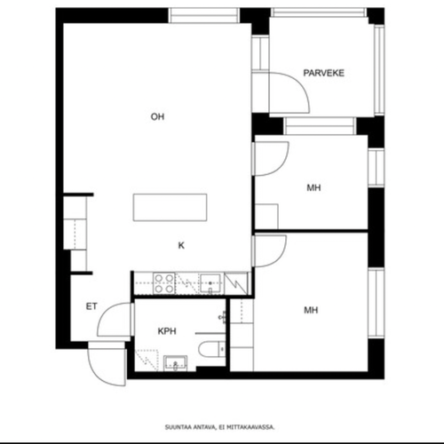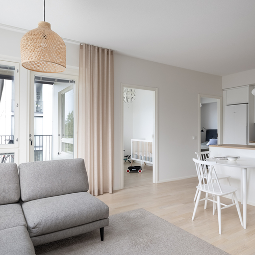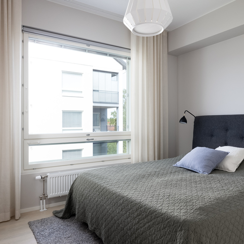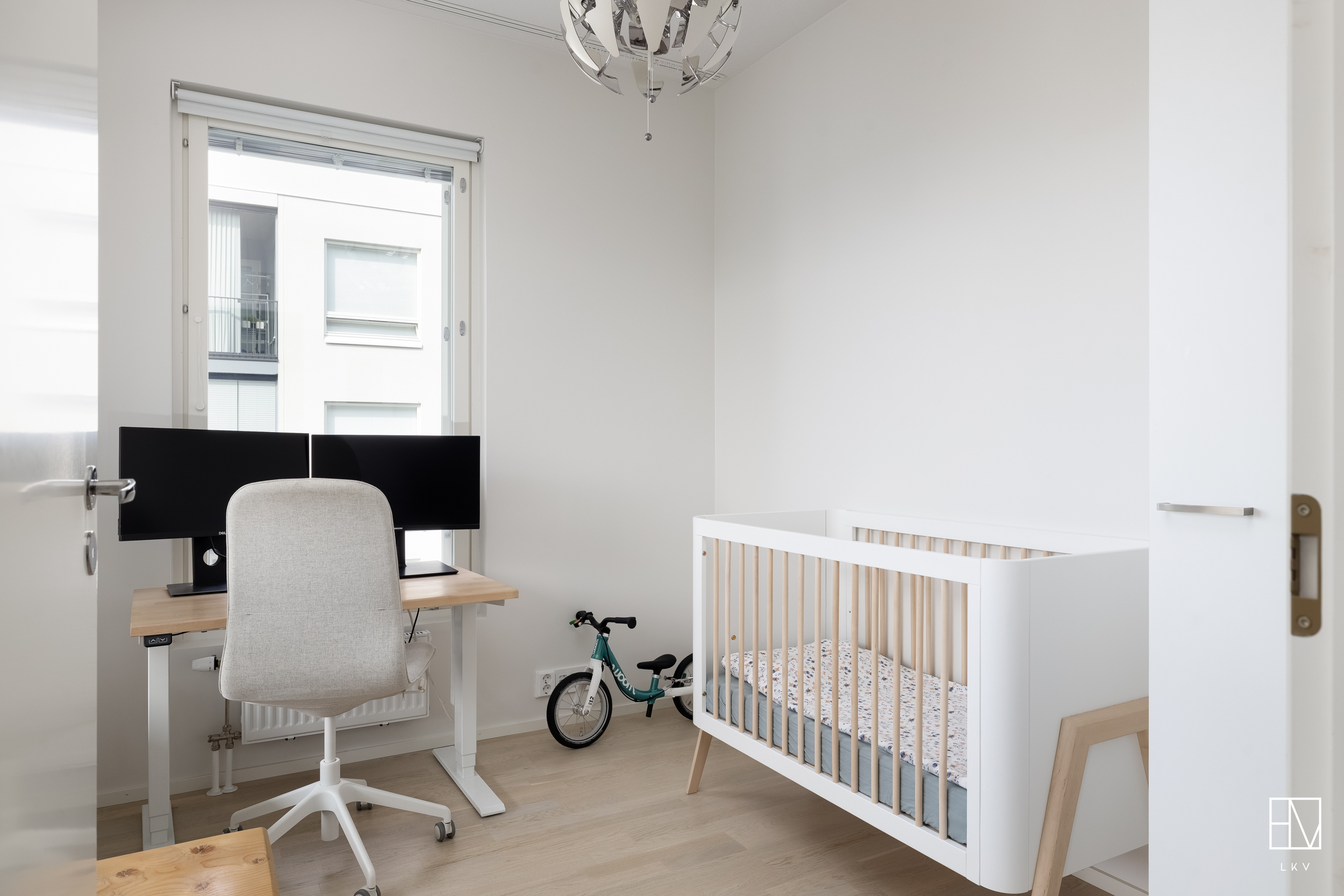 Asunnossa on kaksi makuuhuonetta sekä tilava ja toimiva kylpyhuone. Kokonaisuus on valoisa, nykyaikainen ja muuttovalmis.