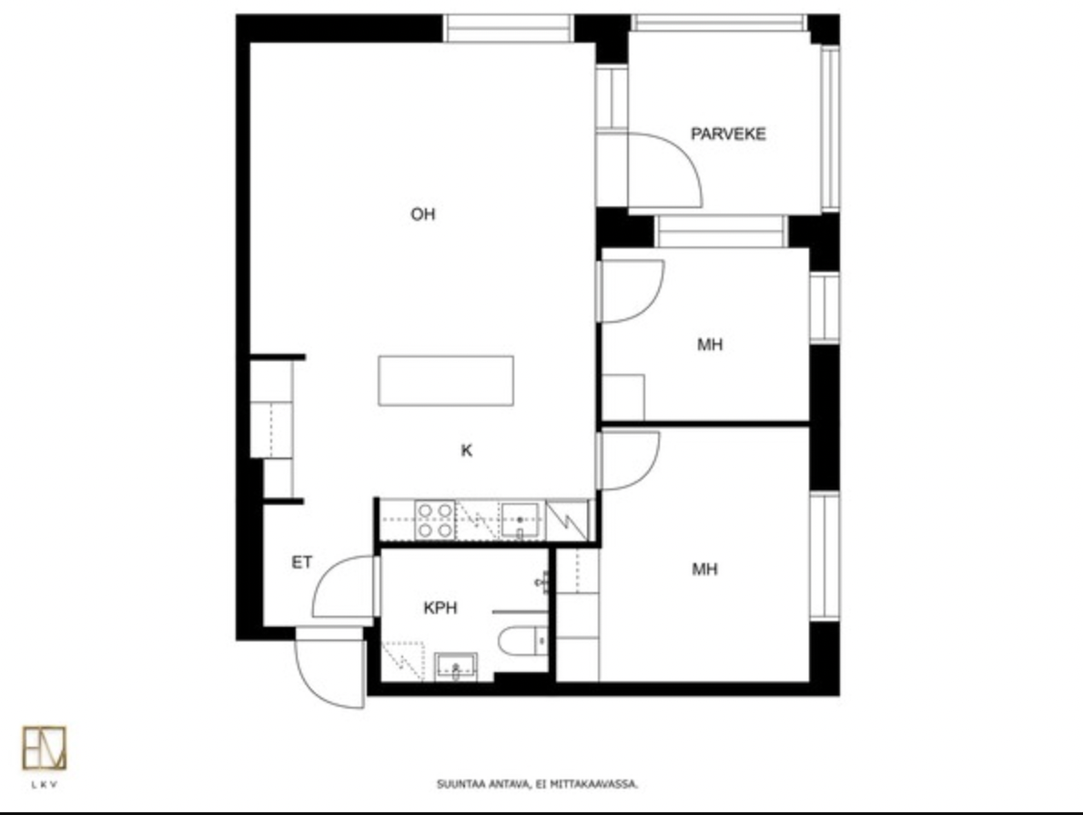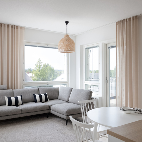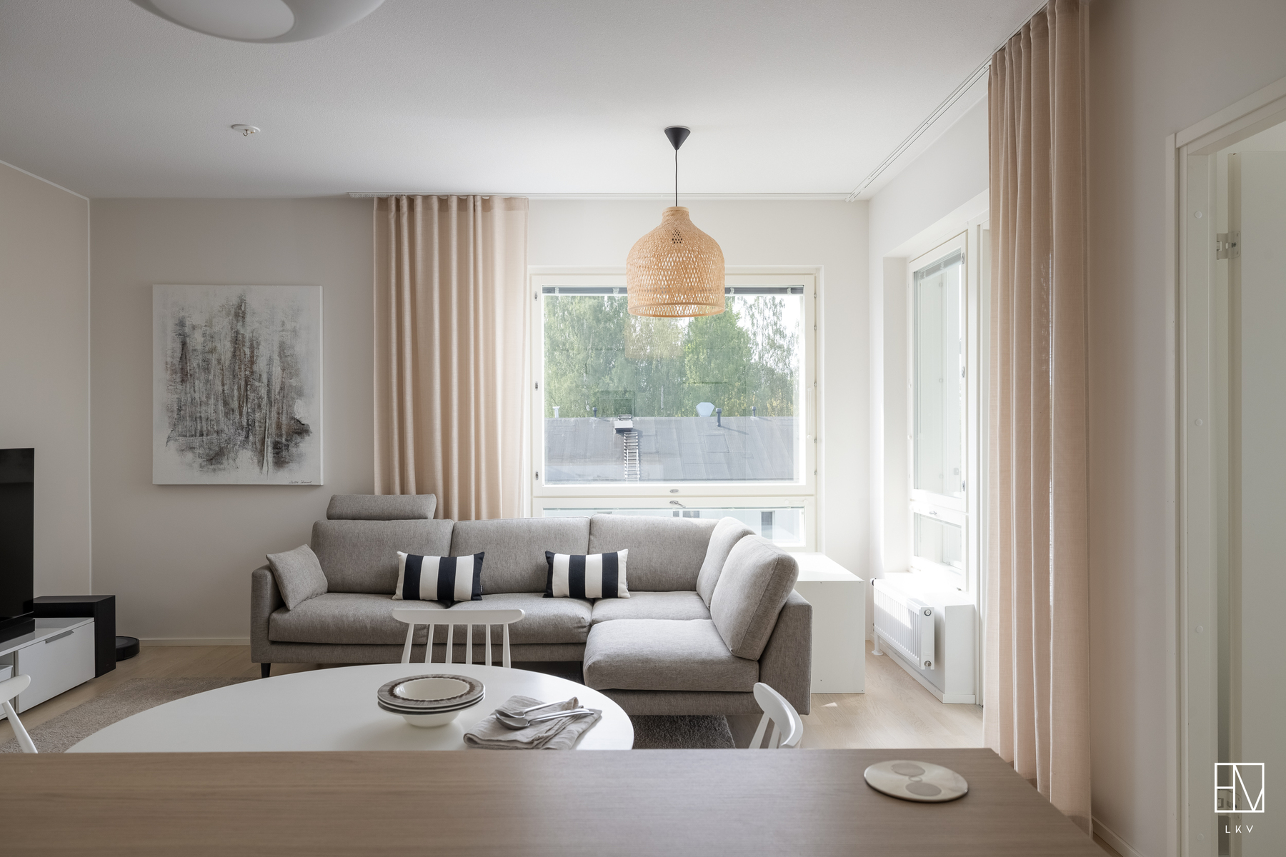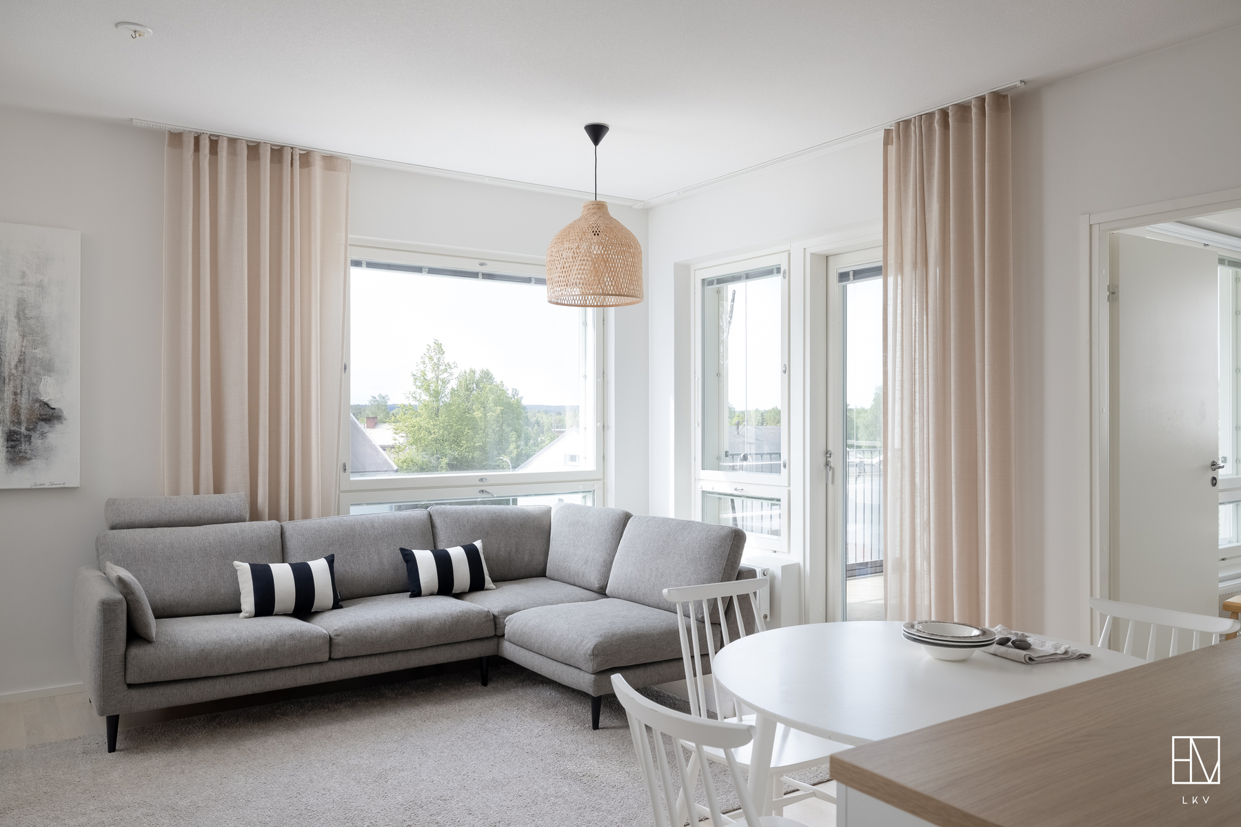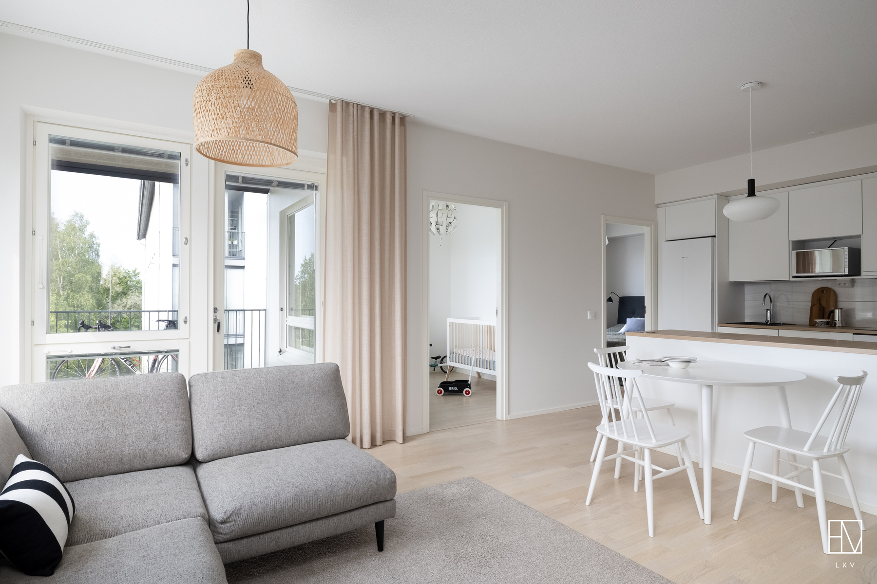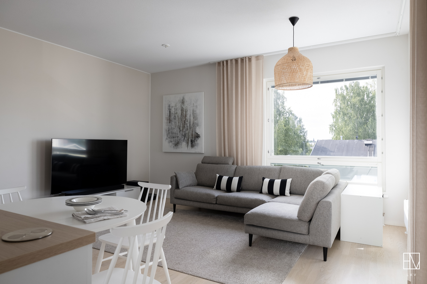 Tervetuloa tutustumaan tämän kolmannen kerroksen hyvin suunniteltuun 58 m²:n kolmioon, joka tarjoaa toimivan pohjaratkaisun niin yksinasuvalle, pariskunnalle kuin pienelle perheellekin. Kodin sydän on avara oleskelutila, jossa moderni keittiö yhdistyy tyylikkään saarekkeen kautta olohuoneeseen. Olohuoneesta on käynti lasitetulle parvekkeelle, joka tarjoaa viihtyisän lisätilan aikaisesta keväästä pitkälle syksyyn.